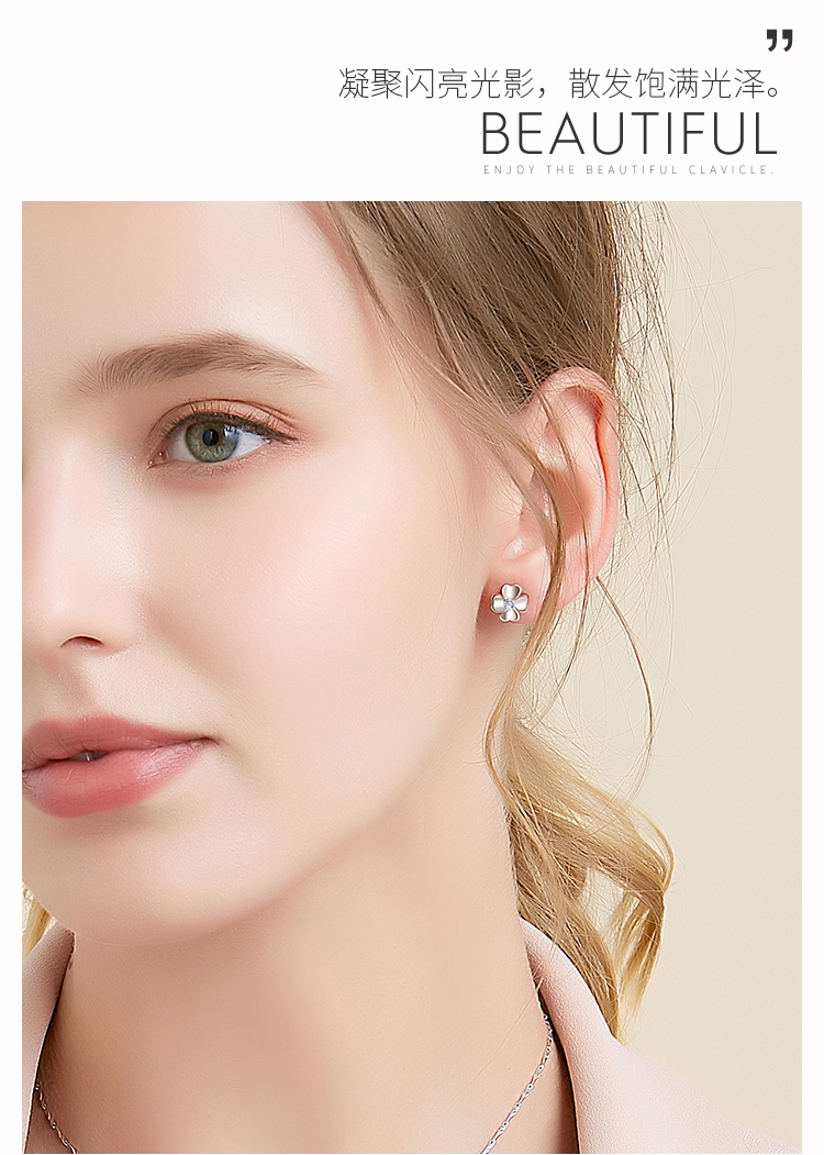 IU925纯银柔花耳钉送女友闺蜜节日生日礼物