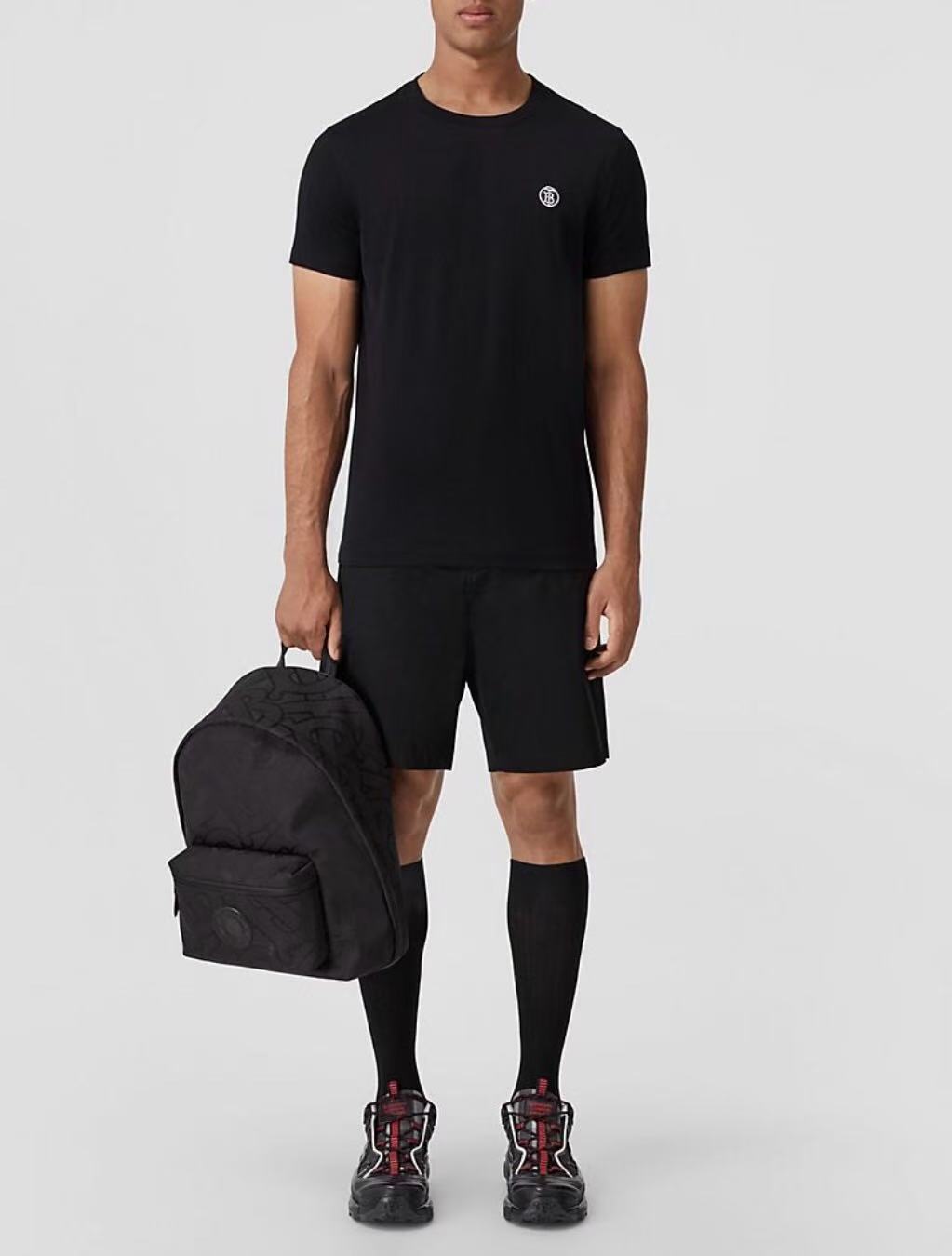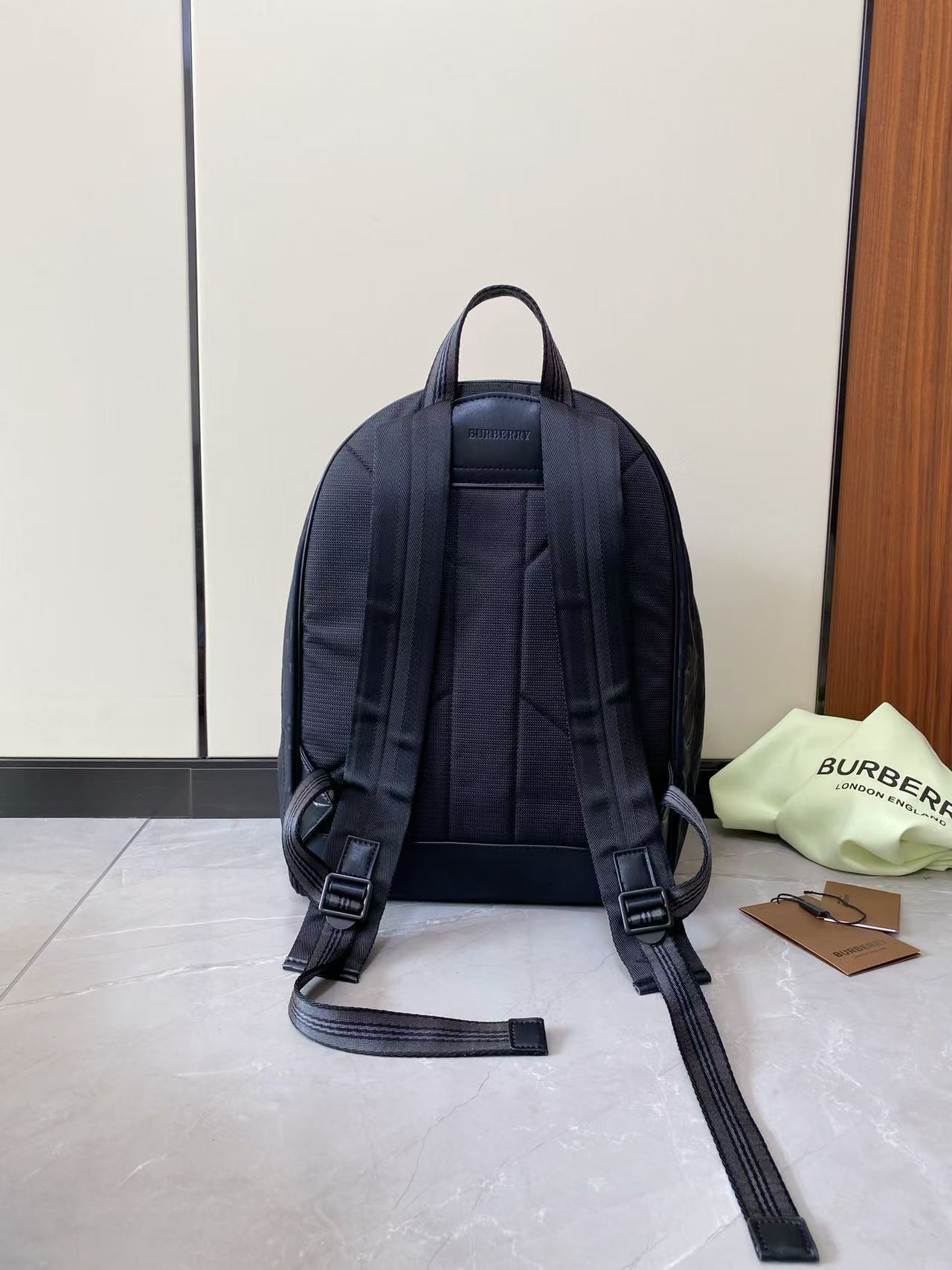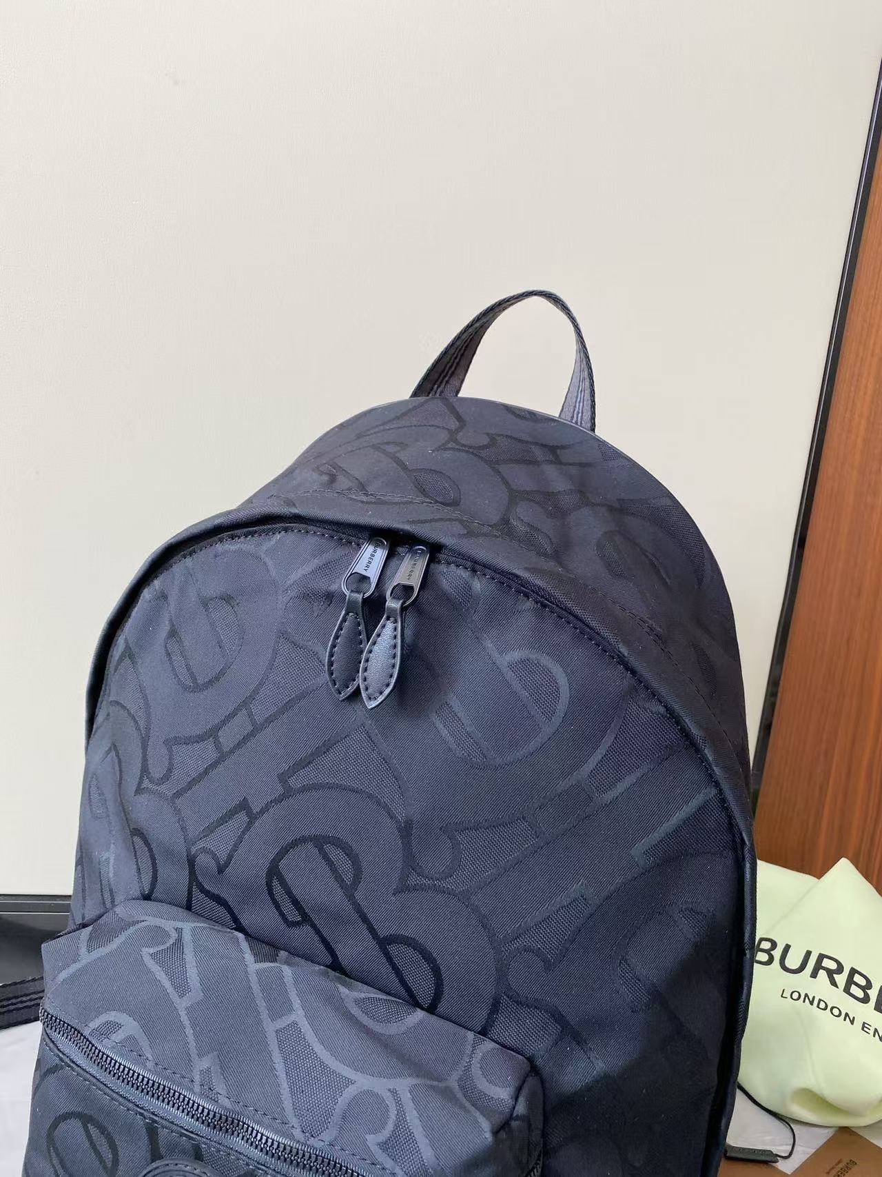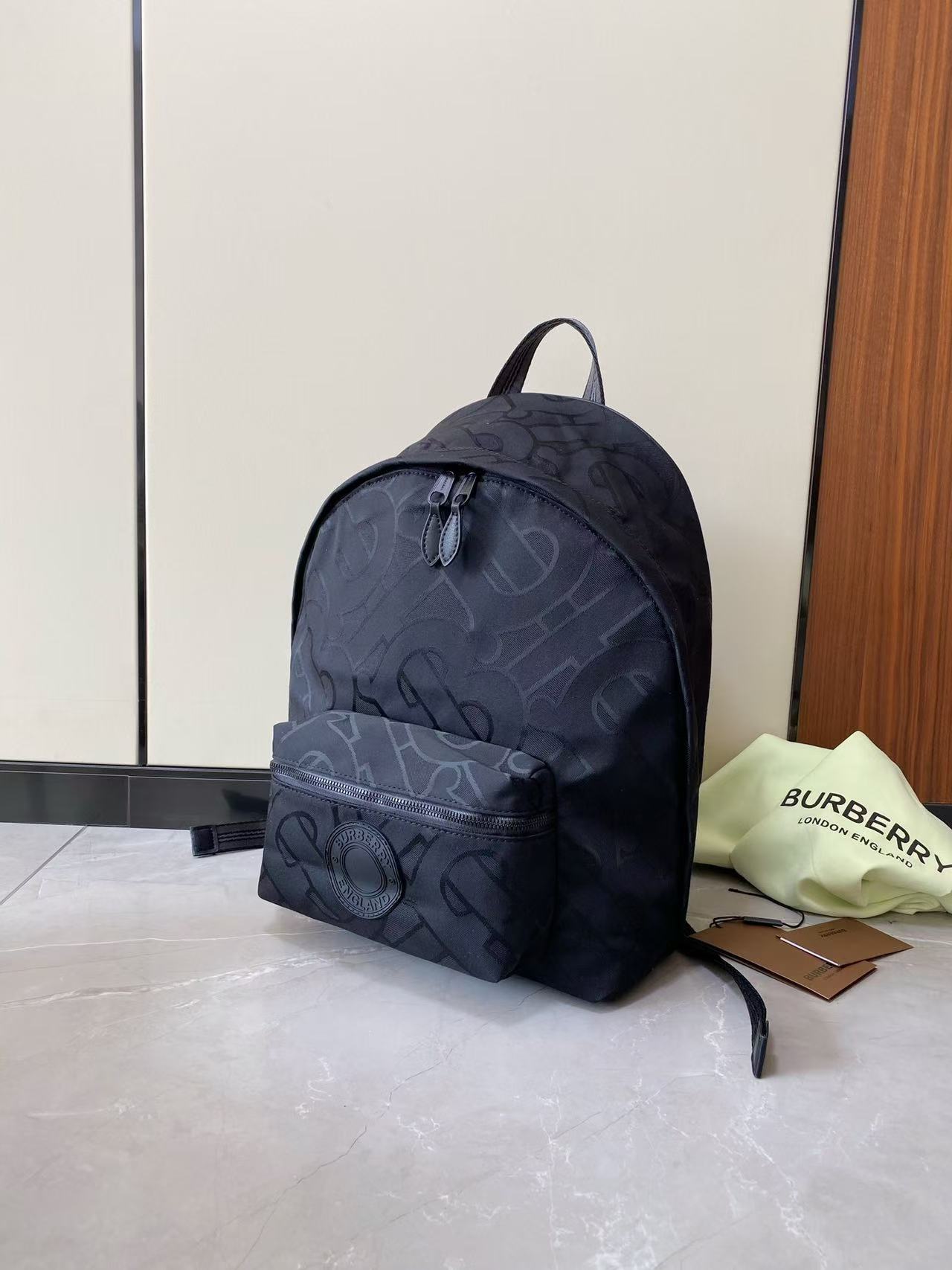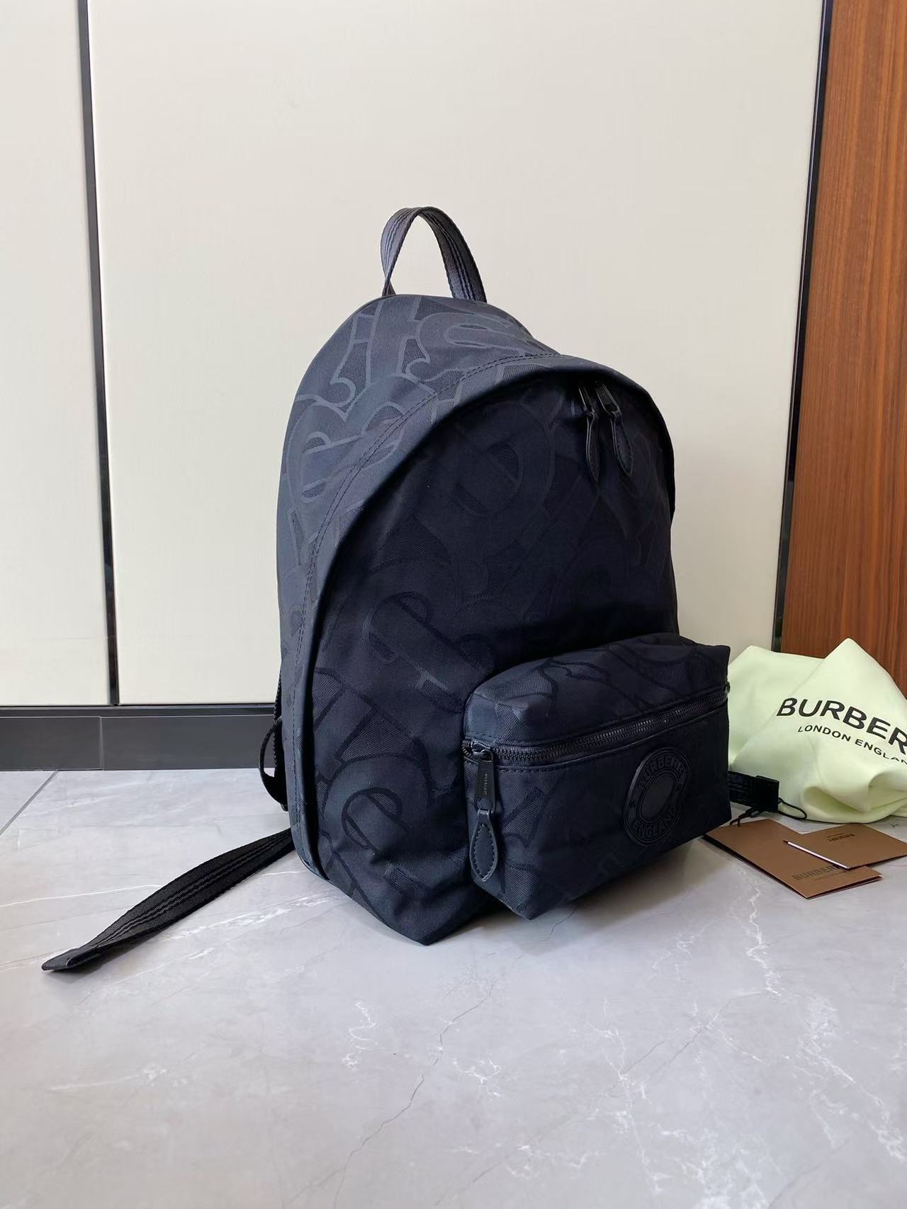新款bur徽标双肩包选用由再生聚酯纤维和棉质纱线制成的面料打造,装饰 Thomas Burberry专属标识图案提花,搭配标志性条纹网纹尼龙细节和品牌徽标。搭配头层牛皮材质,亮泽的金属配件,正面饰有 Burberry立体硅胶徽标饰牌,可调式肩背带。1个拉链外袋;1个拉链内袋,笔记本电脑隔层,拉链开合。