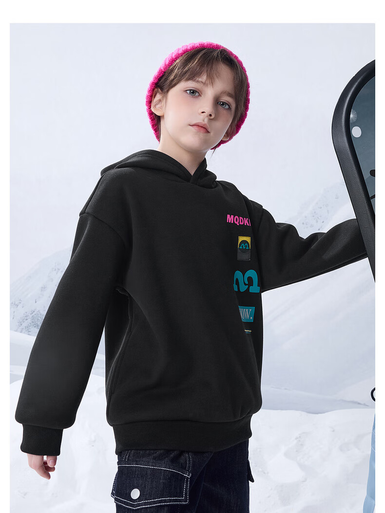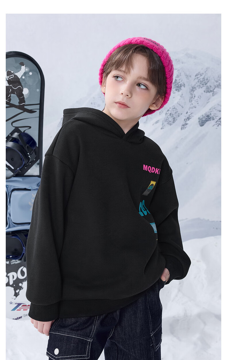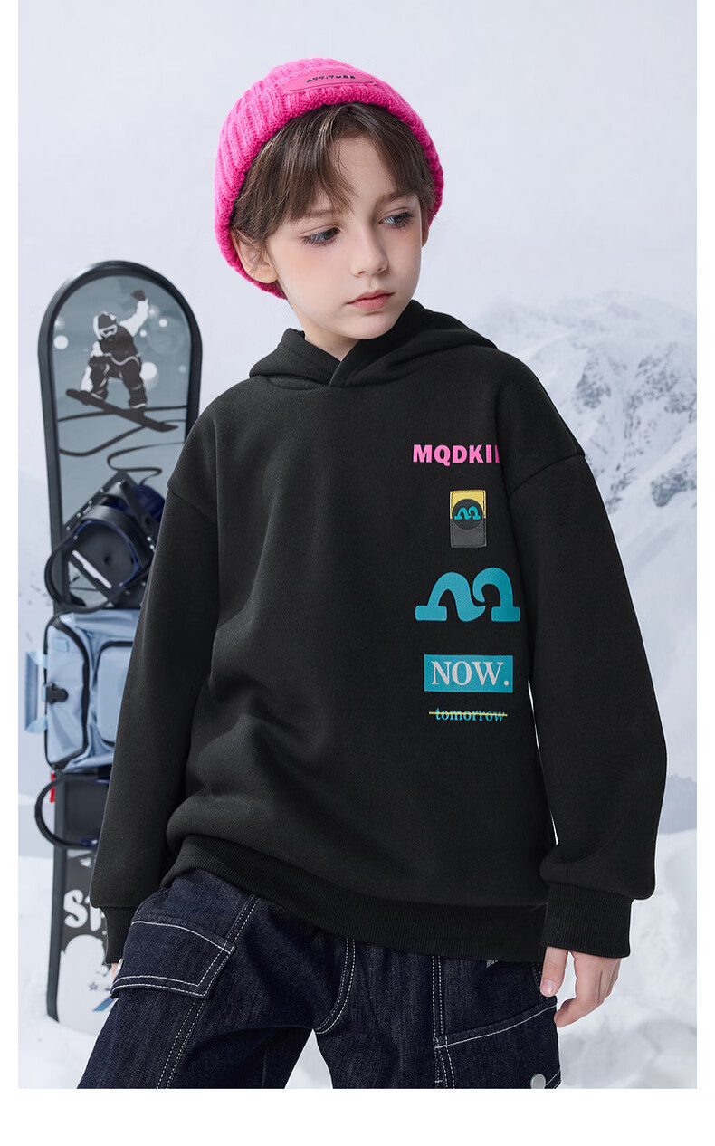 【MQD】冬季男大童学院风卡通加绒休闲连帽卫衣