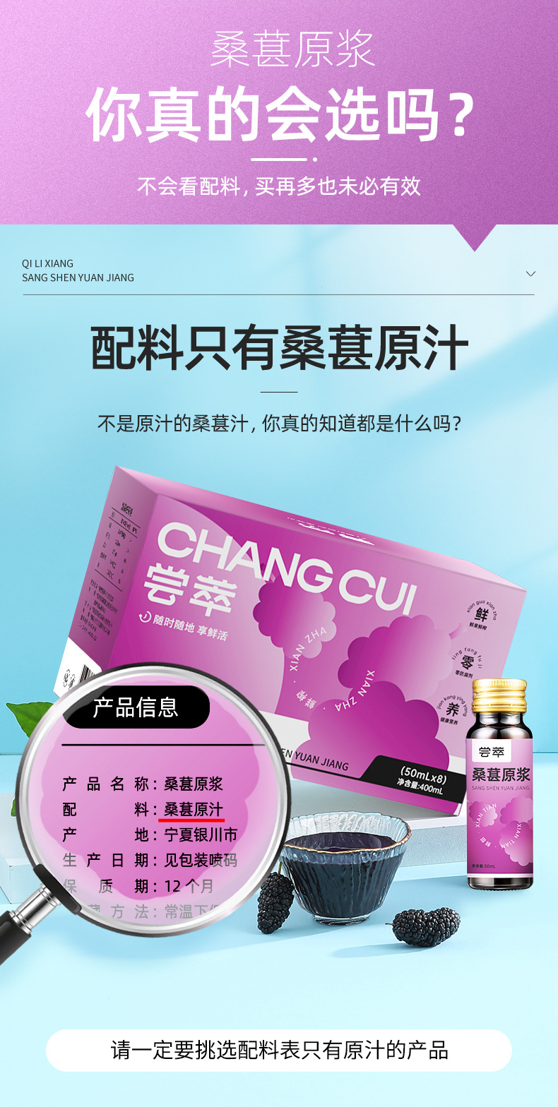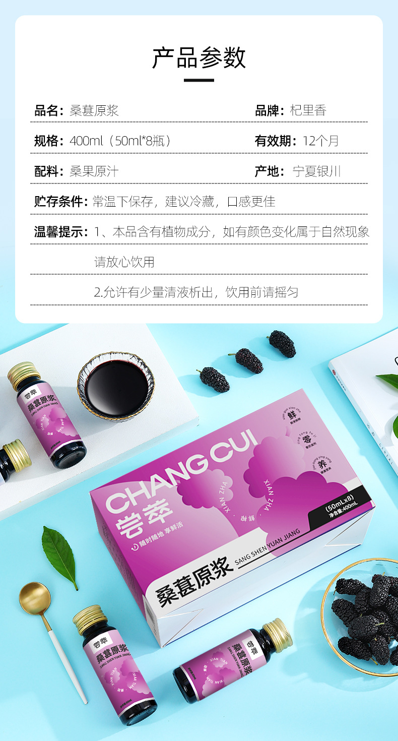 【2盒立减20元】杞里香尝萃系列桑葚原浆 桑葚汁新鲜既食饮品小瓶装400ml盒装