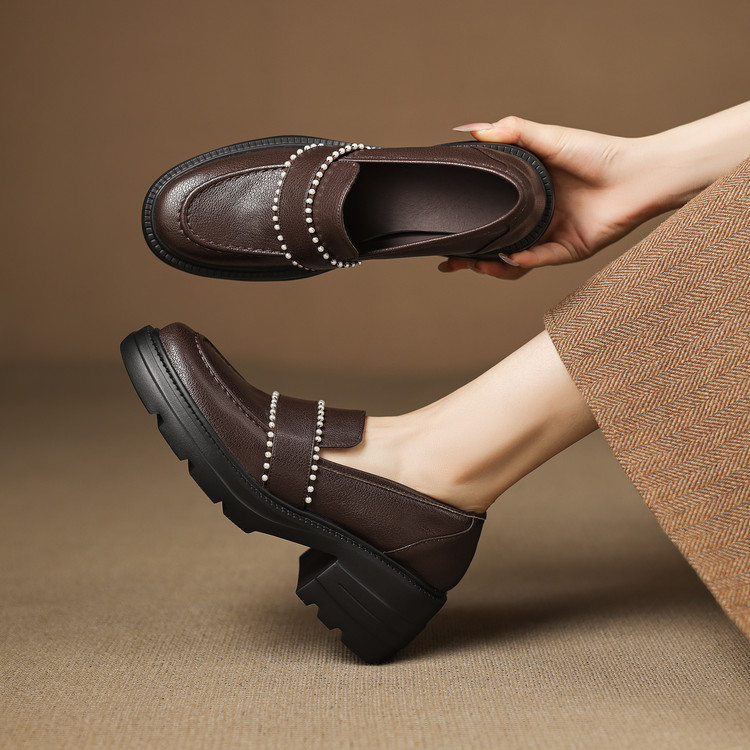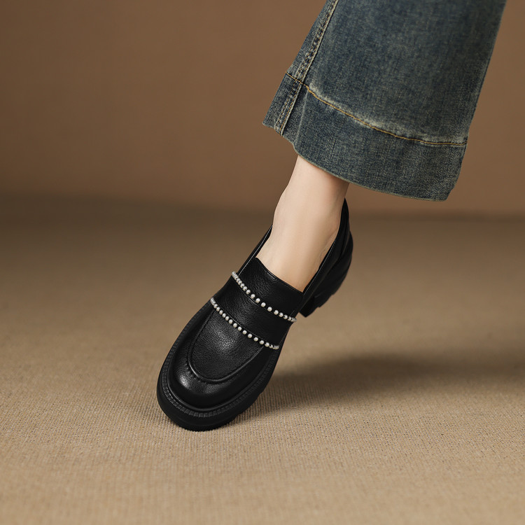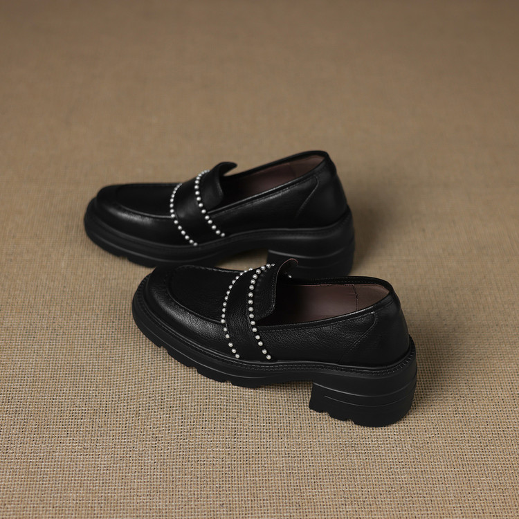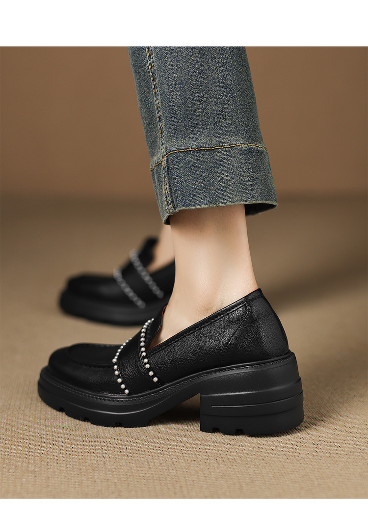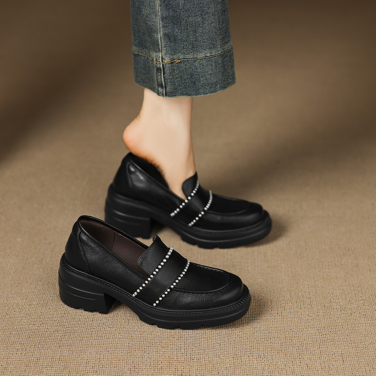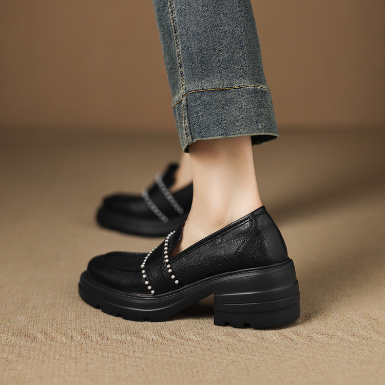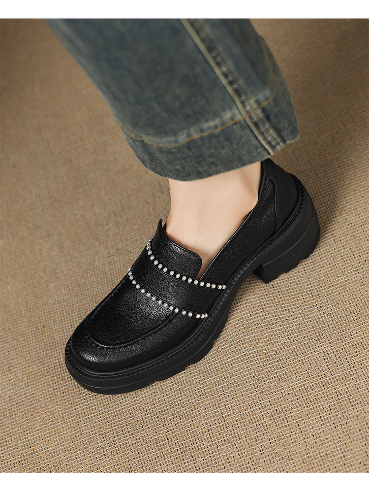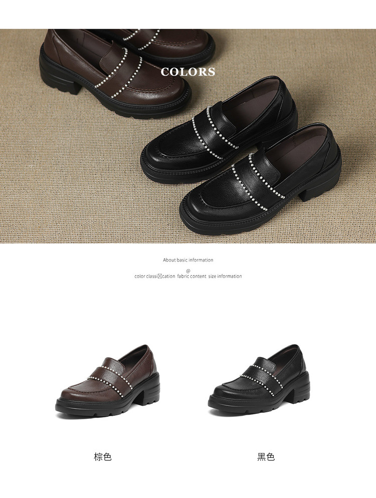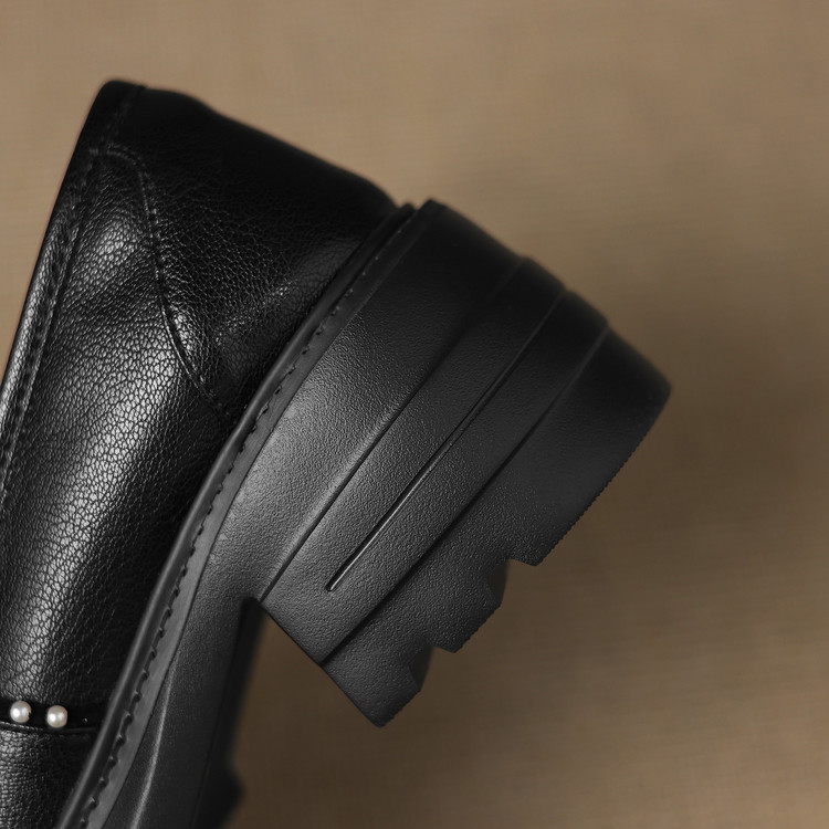 【预售5天】6cm小个子简约圆头珍珠深口粗跟厚底小皮鞋复古百搭单鞋AJ&JL-808