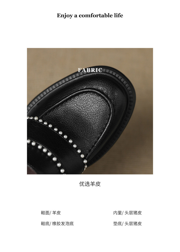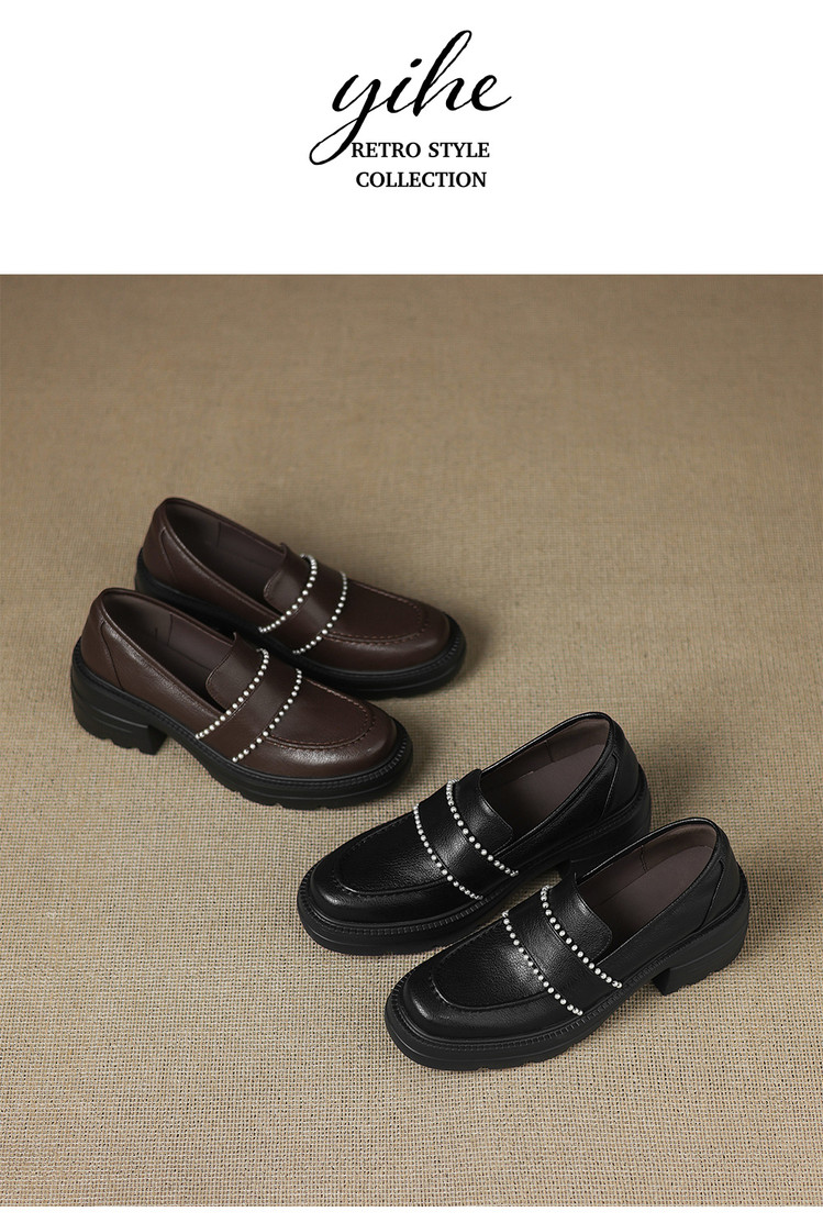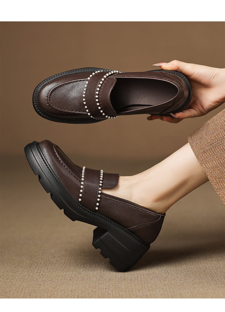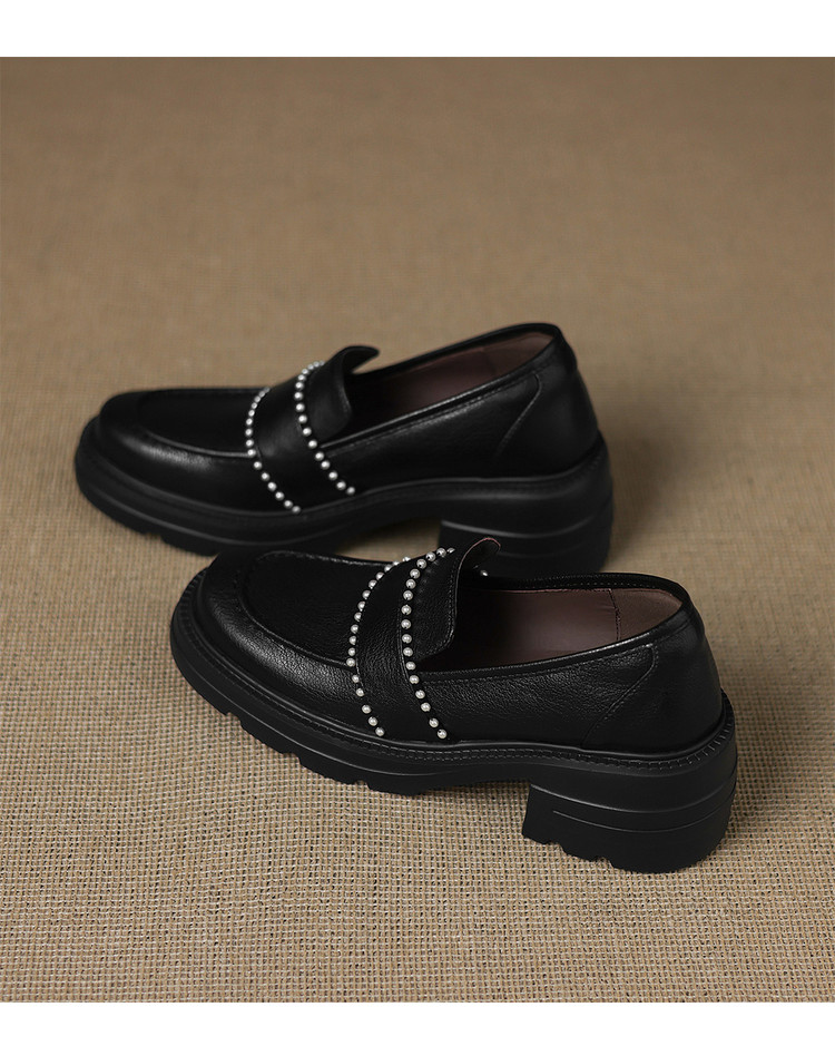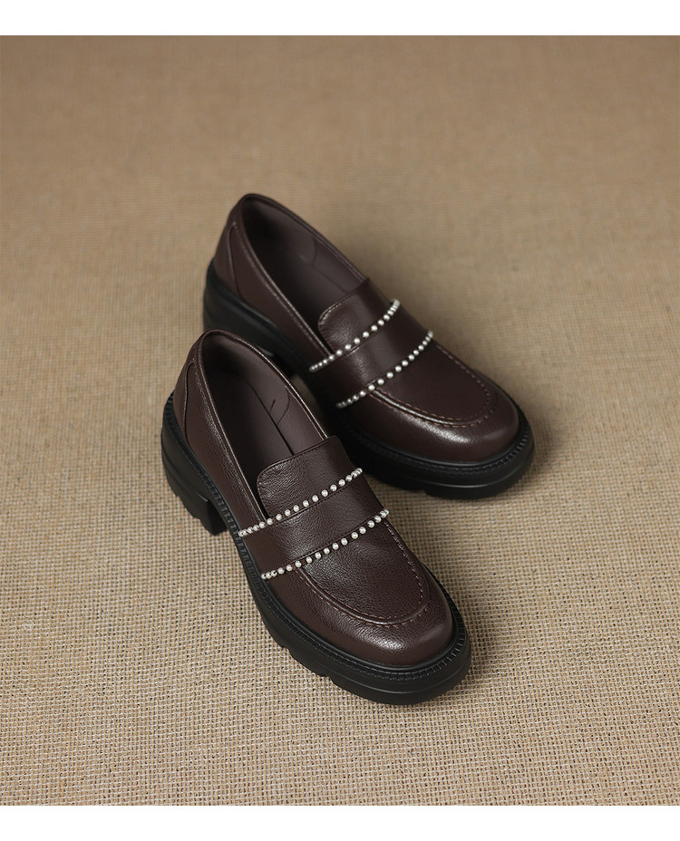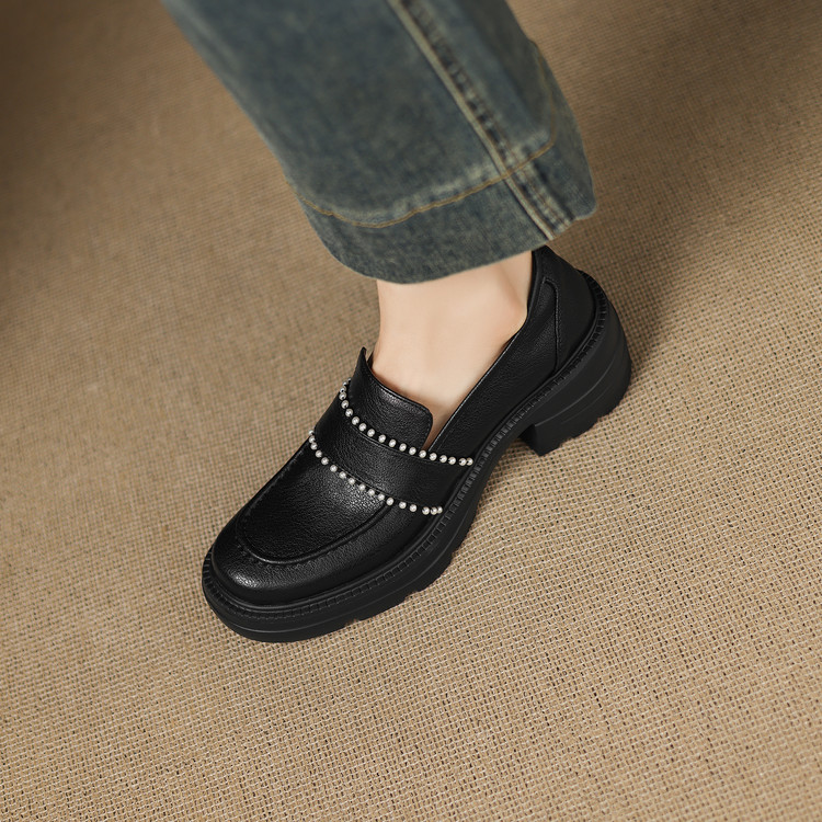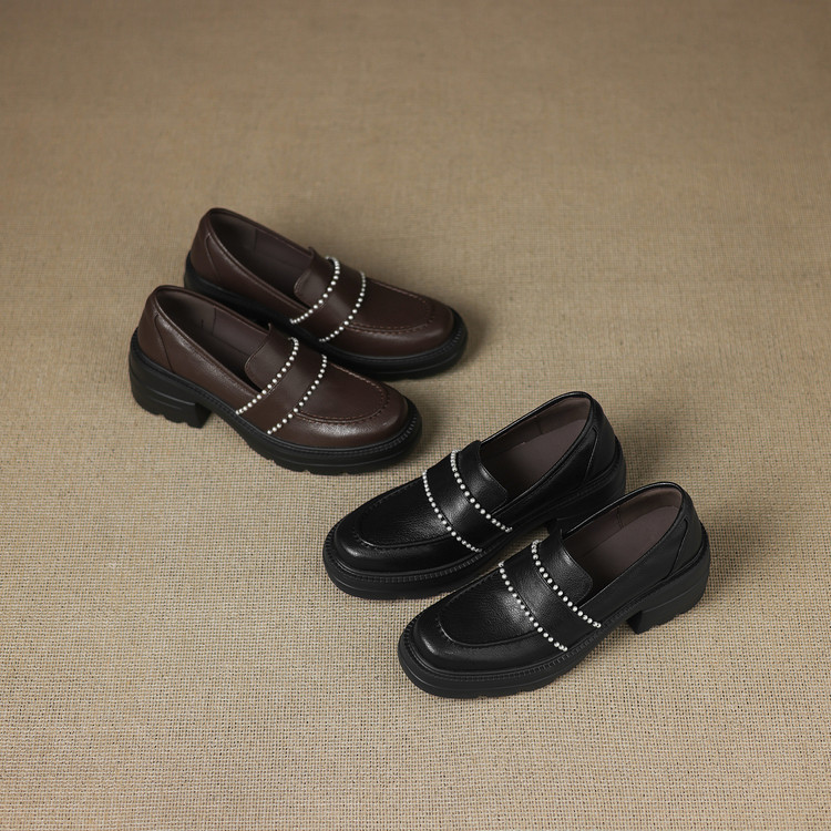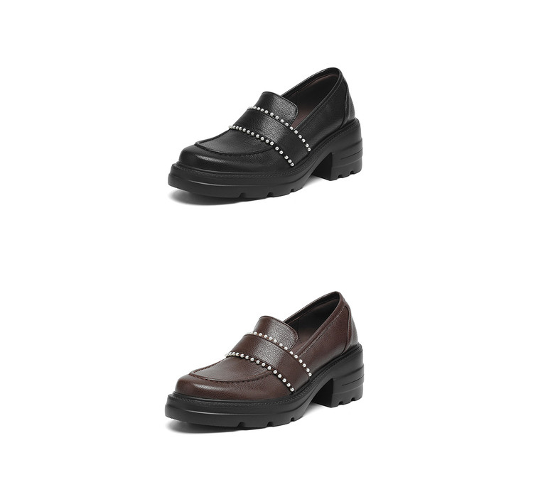 【预售5天】6cm小个子简约圆头珍珠深口粗跟厚底小皮鞋复古百搭单鞋AJ&JL-808
