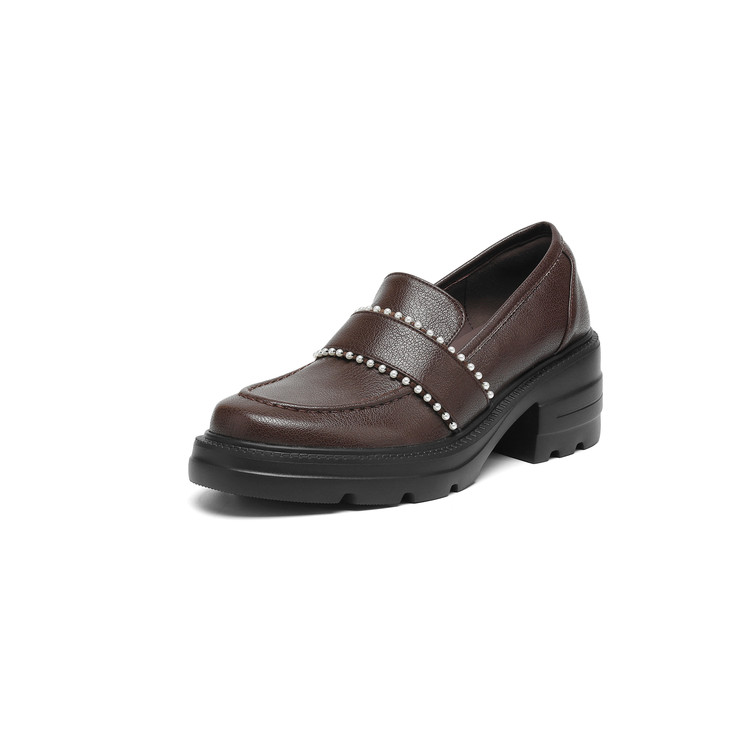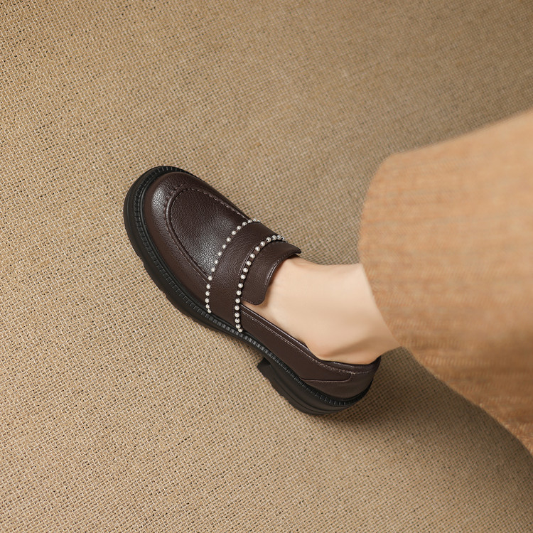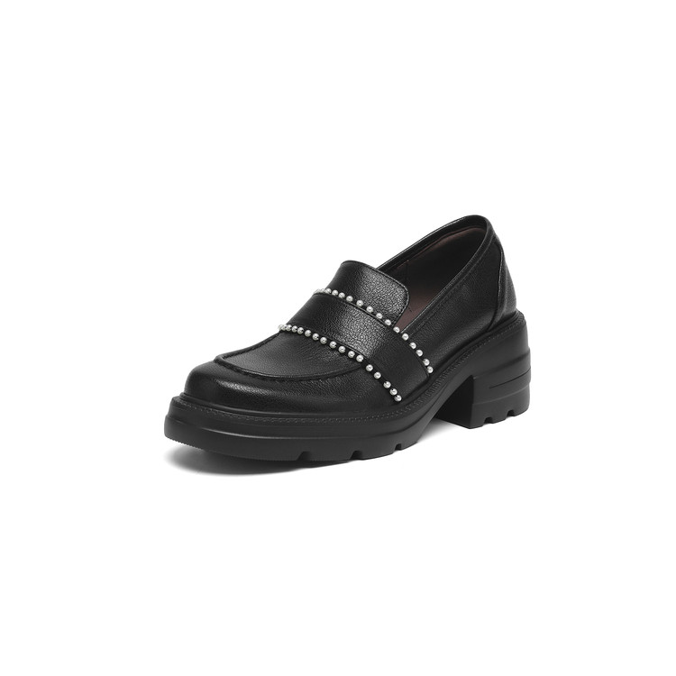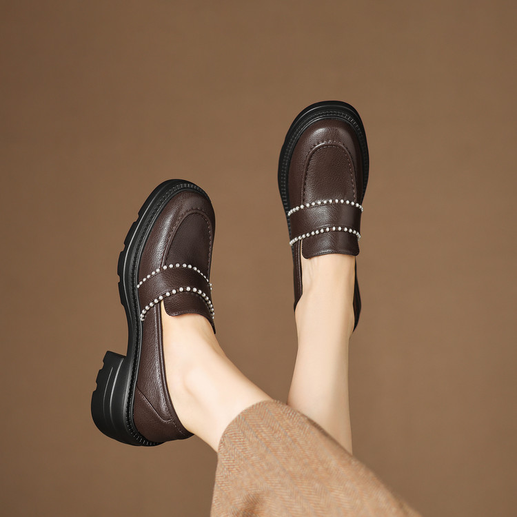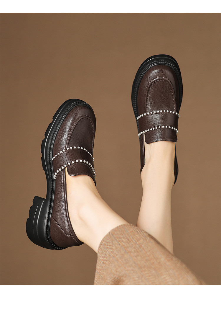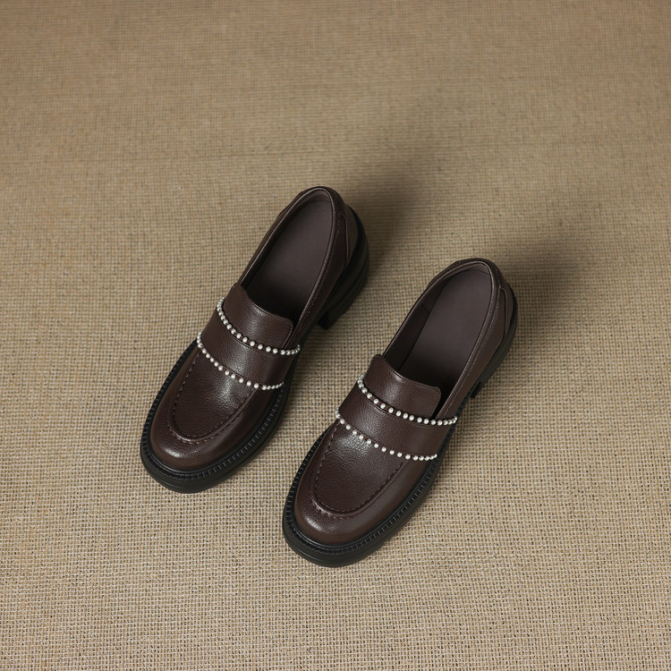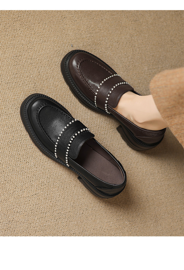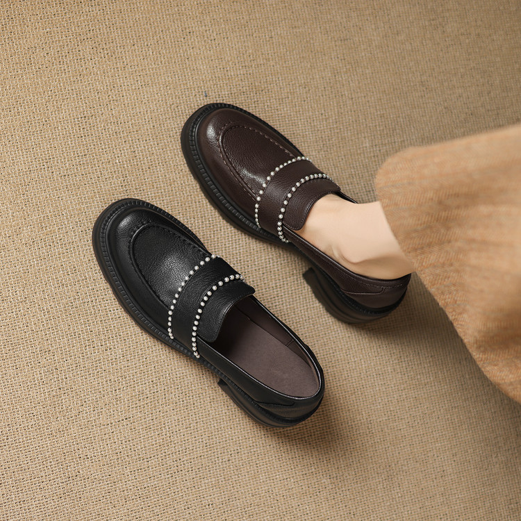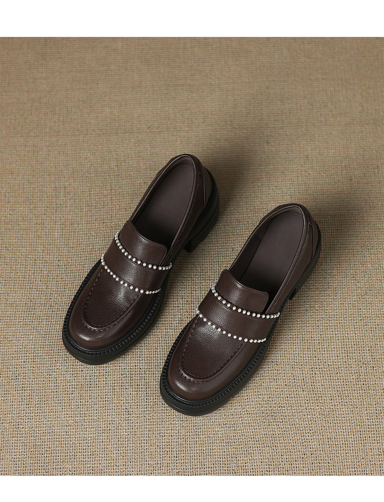 【预售5天】6cm小个子简约圆头珍珠深口粗跟厚底小皮鞋复古百搭单鞋AJ&JL-808
