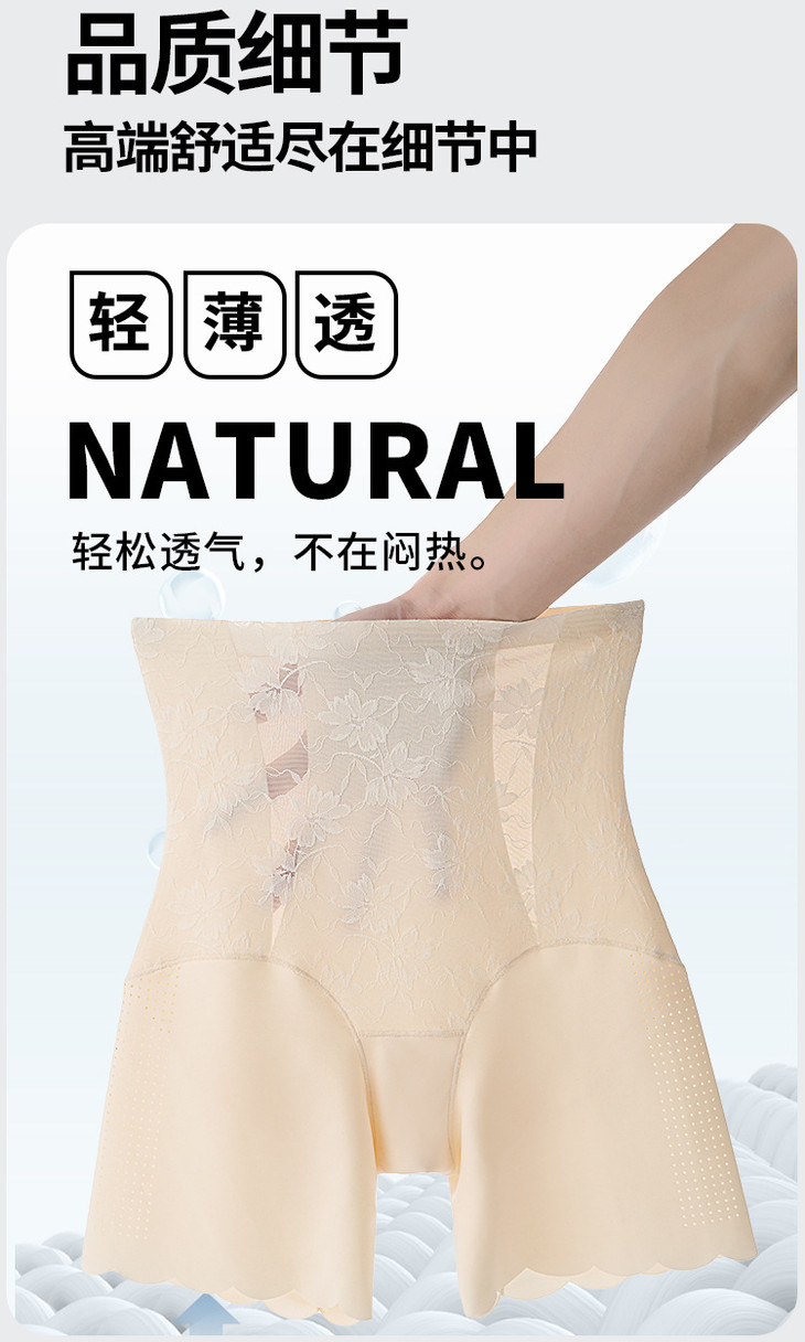高腰无痕提臀收腹蕾丝提花,水芙蓉透气轻塑安全裤XY269