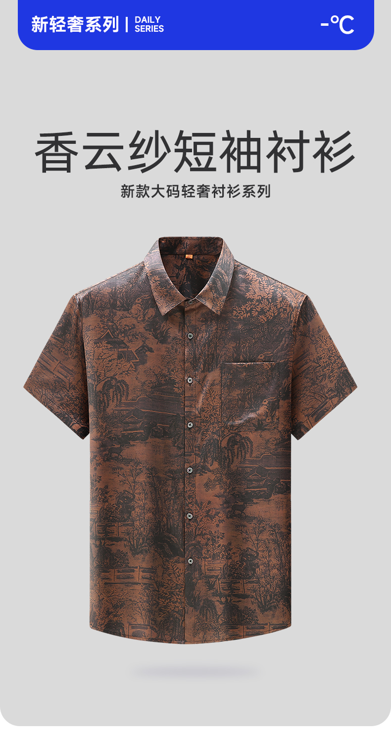 【新款DWP】大依优型大码男装加肥加大香云纱衬衫高端款