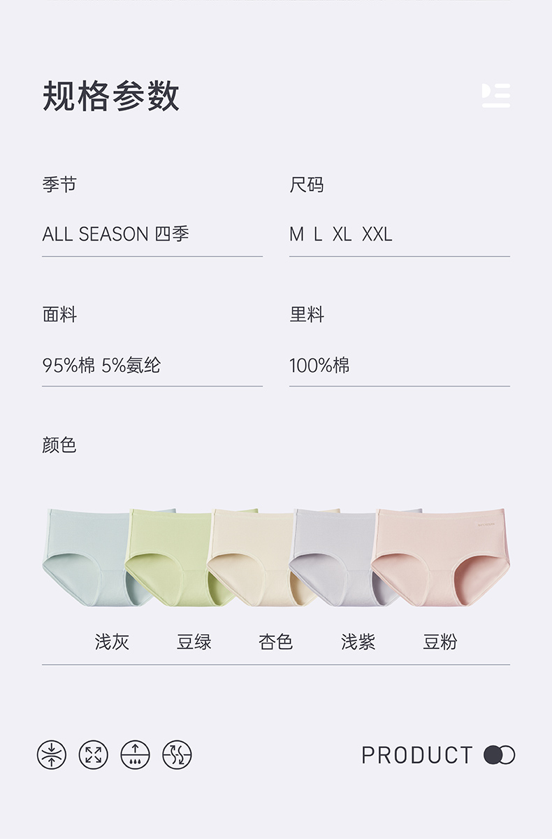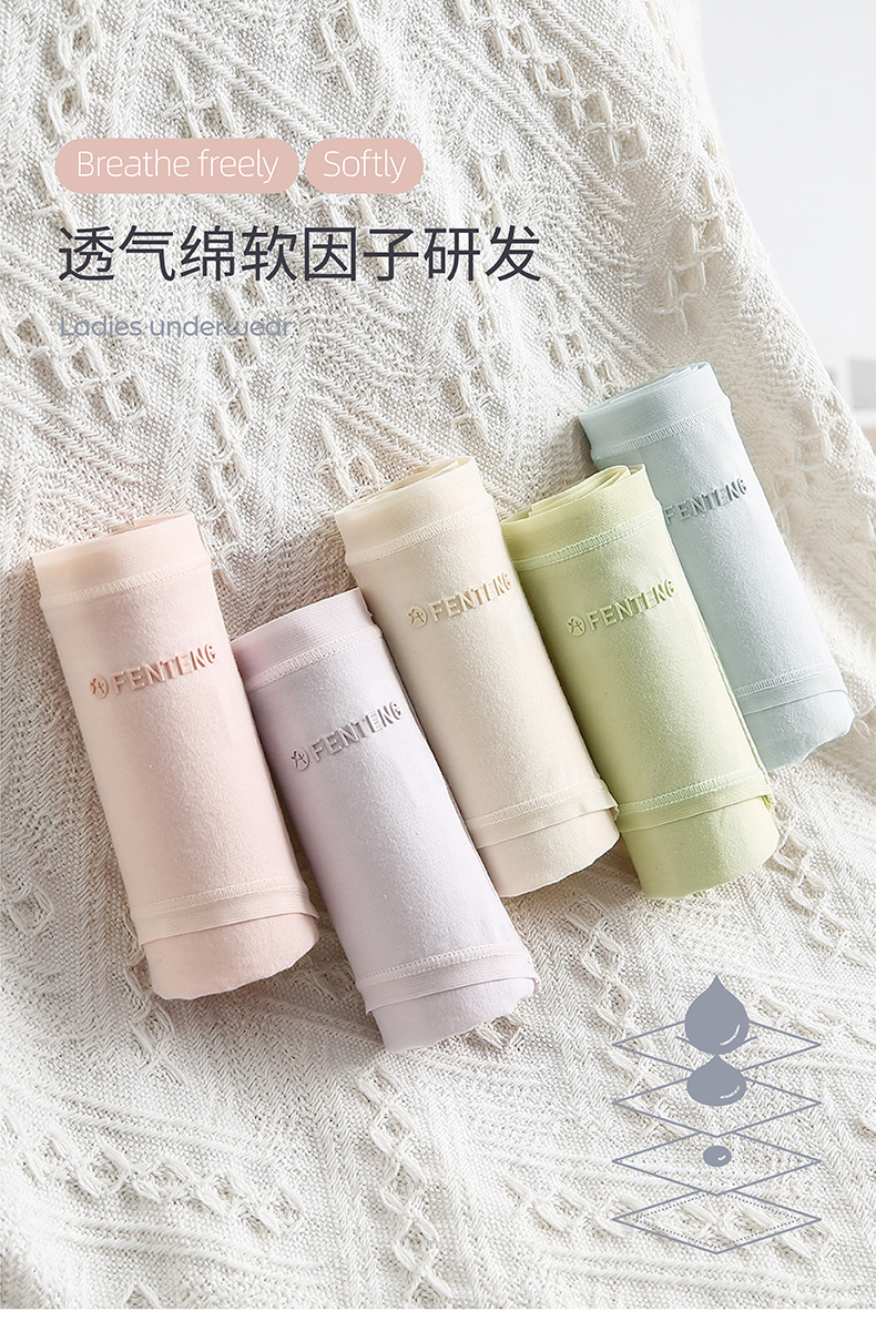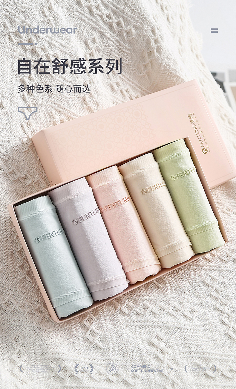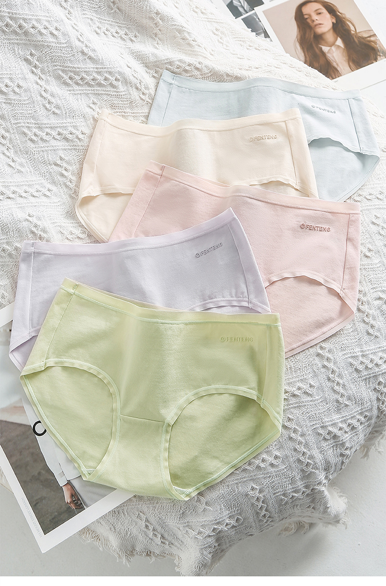 芬腾(5条)内裤女抗菌纯棉裆中腰女士三角裤薄款透气舒适性感大码短裤头