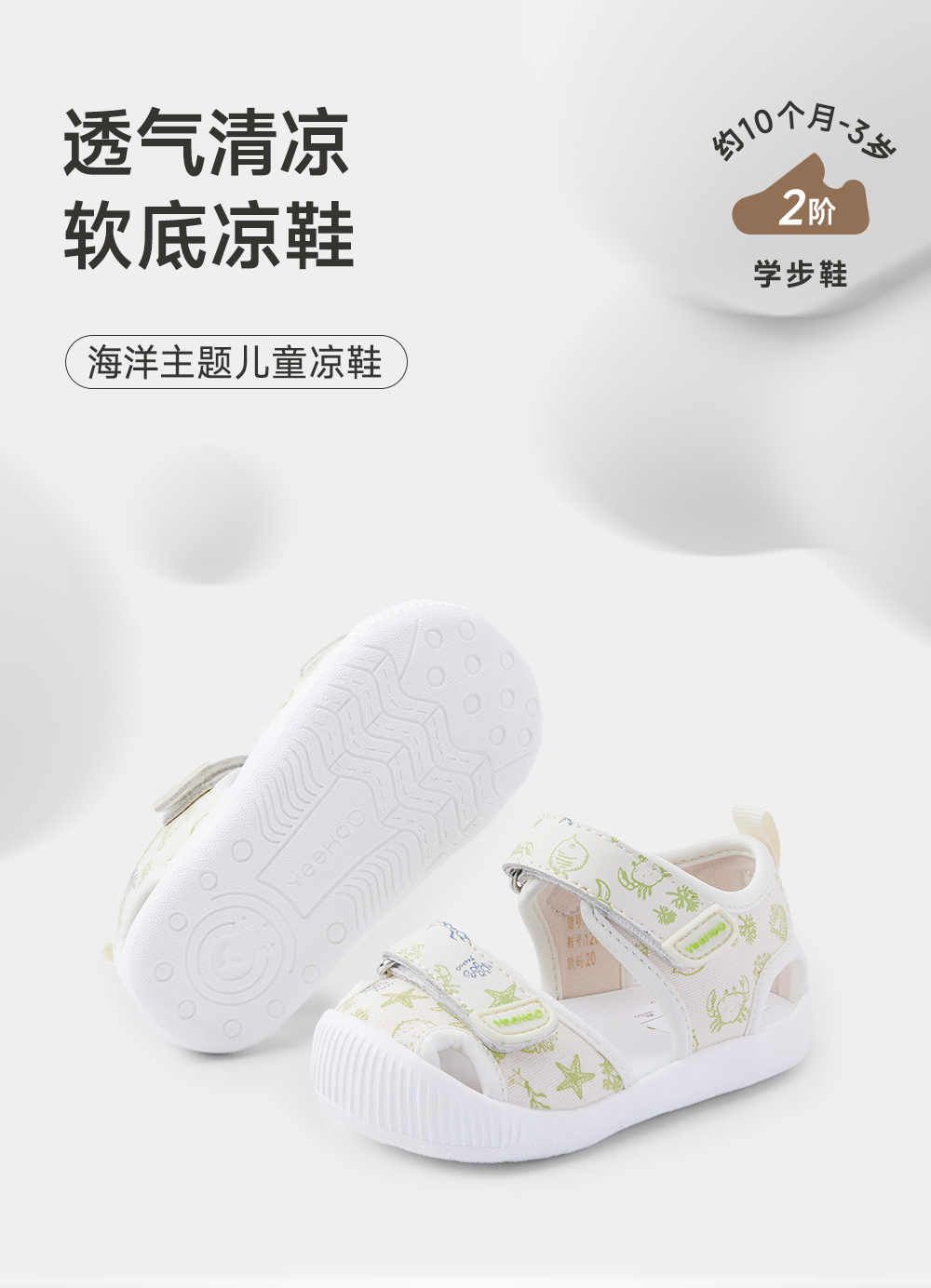 【商场同款】英氏儿童鞋男宝宝夏季透气凉鞋软底魔术贴新款