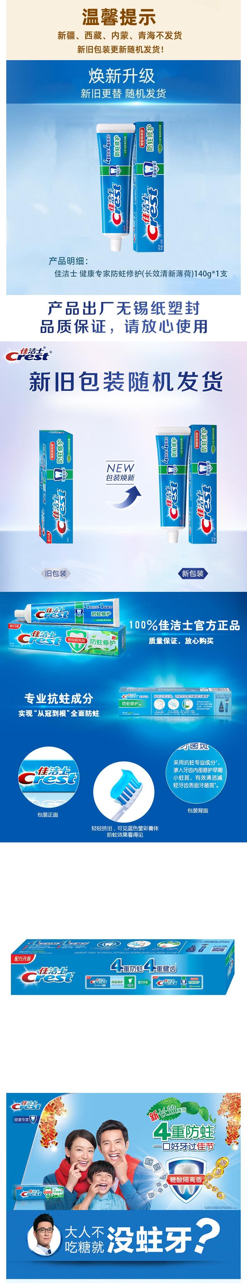 佳洁士 健康专家防蛀修护(长效清新薄荷)140g*1支 pg-cx1bhs