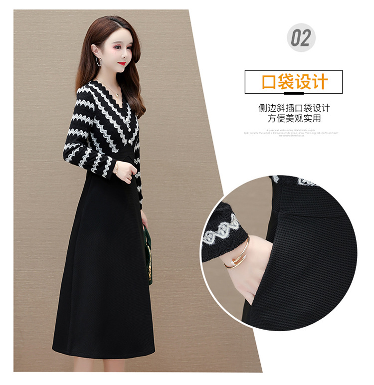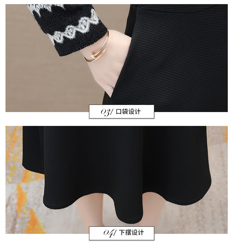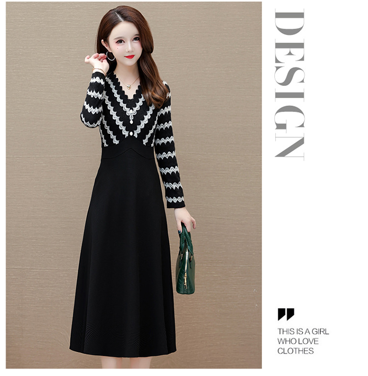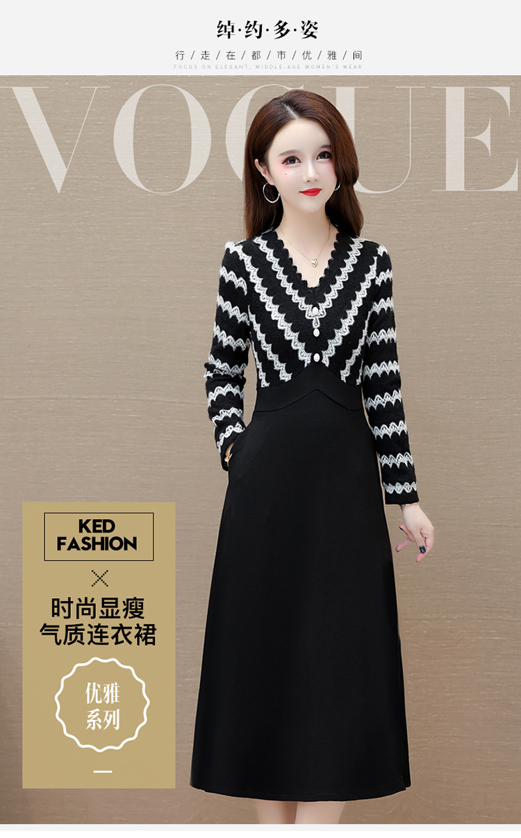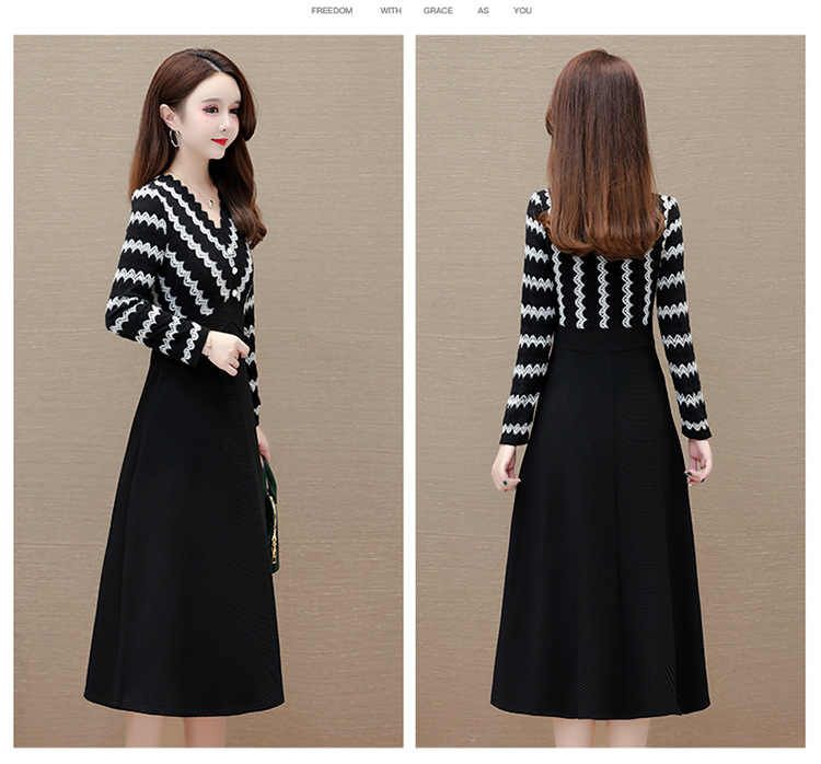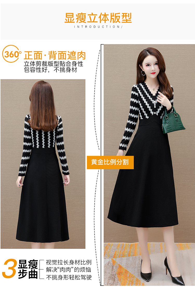 假两件高腰裙针织毛线拼结长款A字裙时尚连衣裙QYM-KED-63156-Y