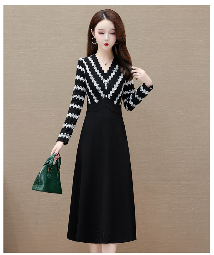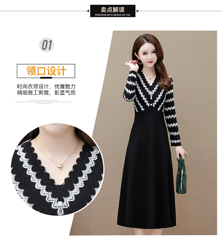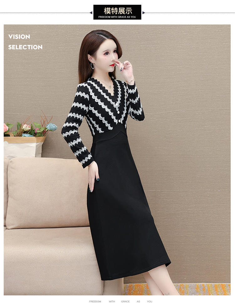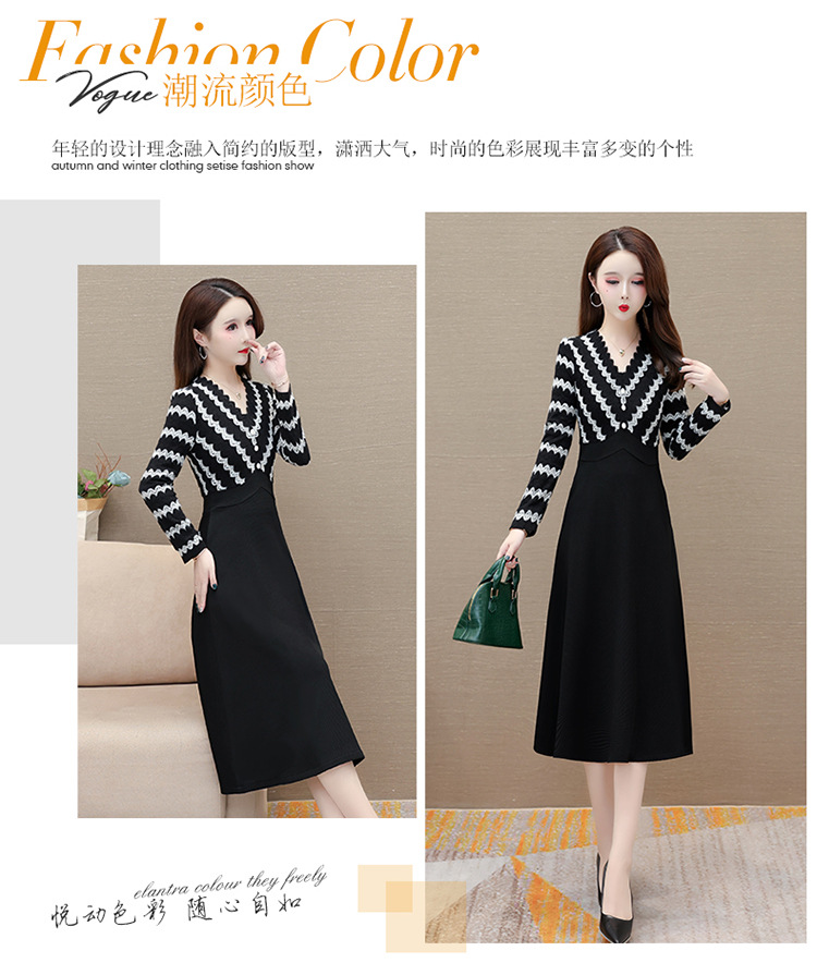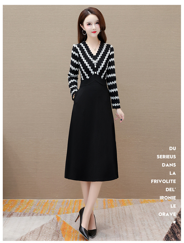 假两件高腰裙针织毛线拼结长款A字裙时尚连衣裙QYM-KED-63156-Y