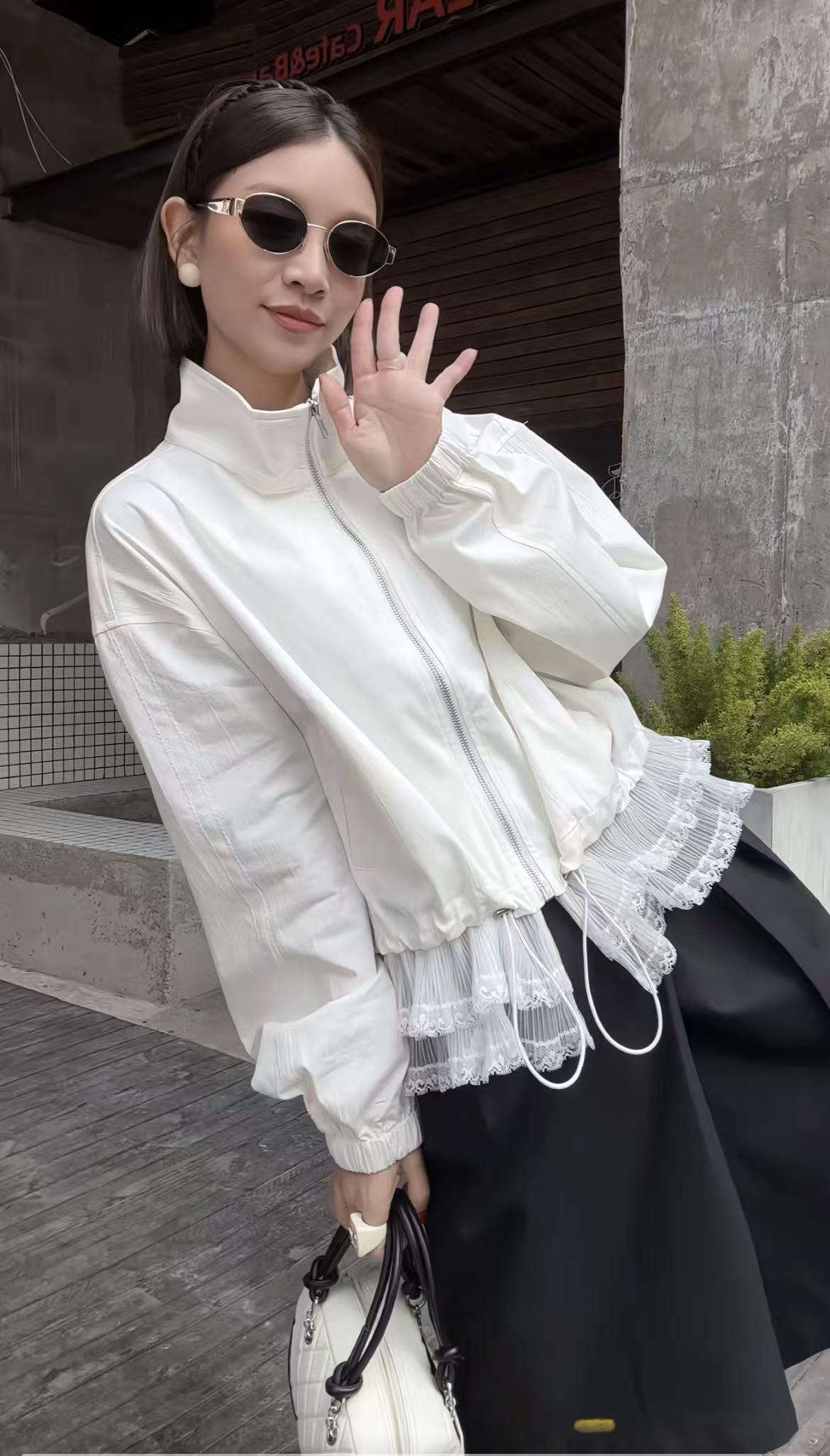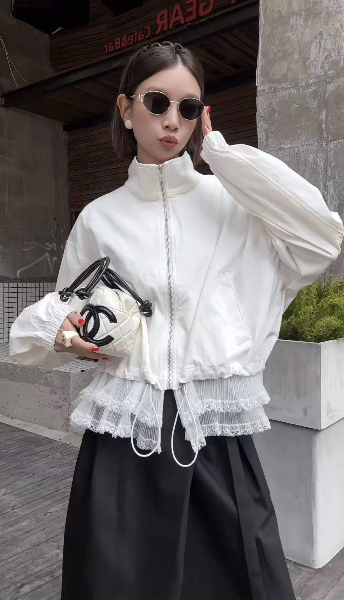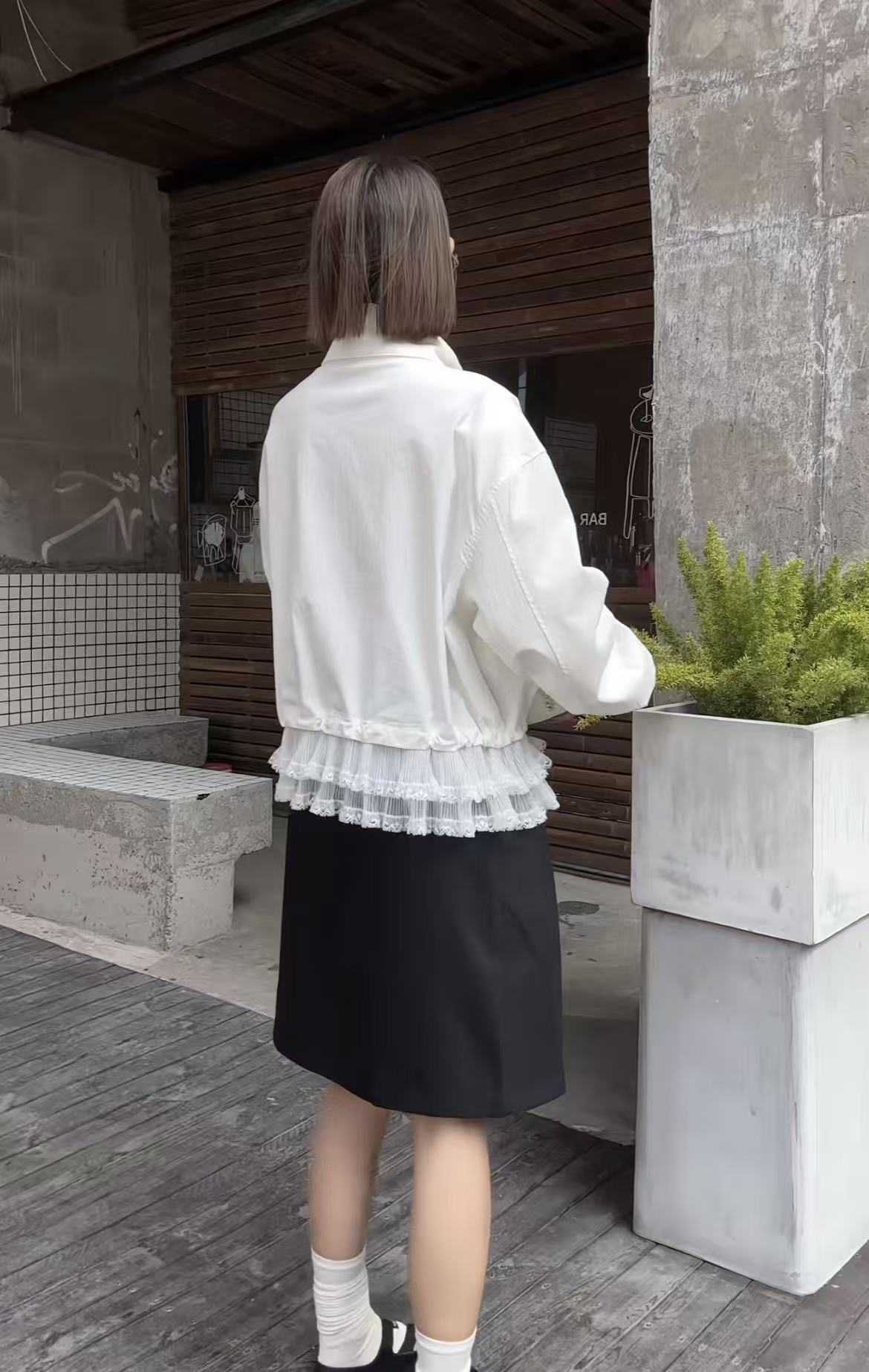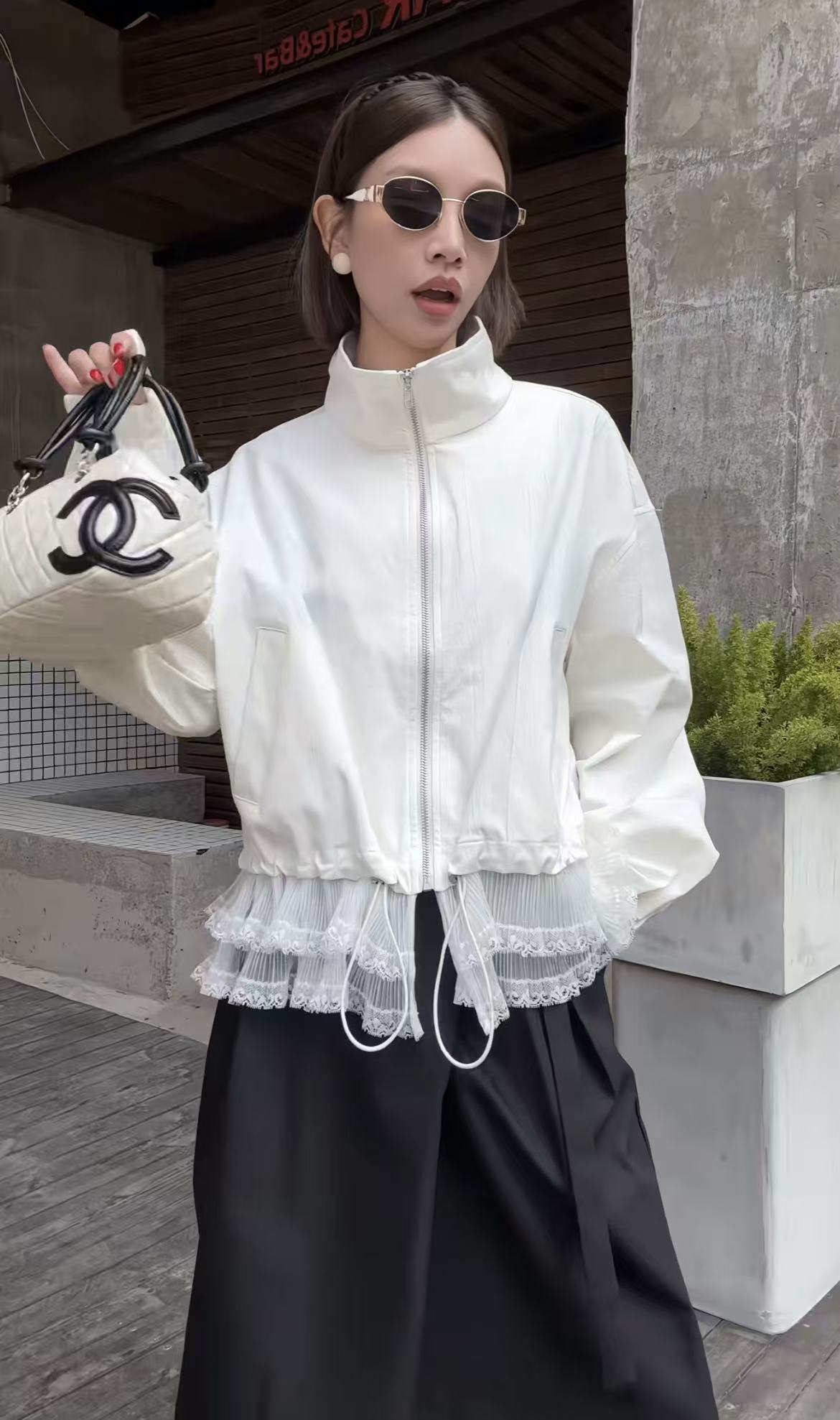 爆款推荐【秋上新】826简约法式蕾丝边休闲外套-喜出