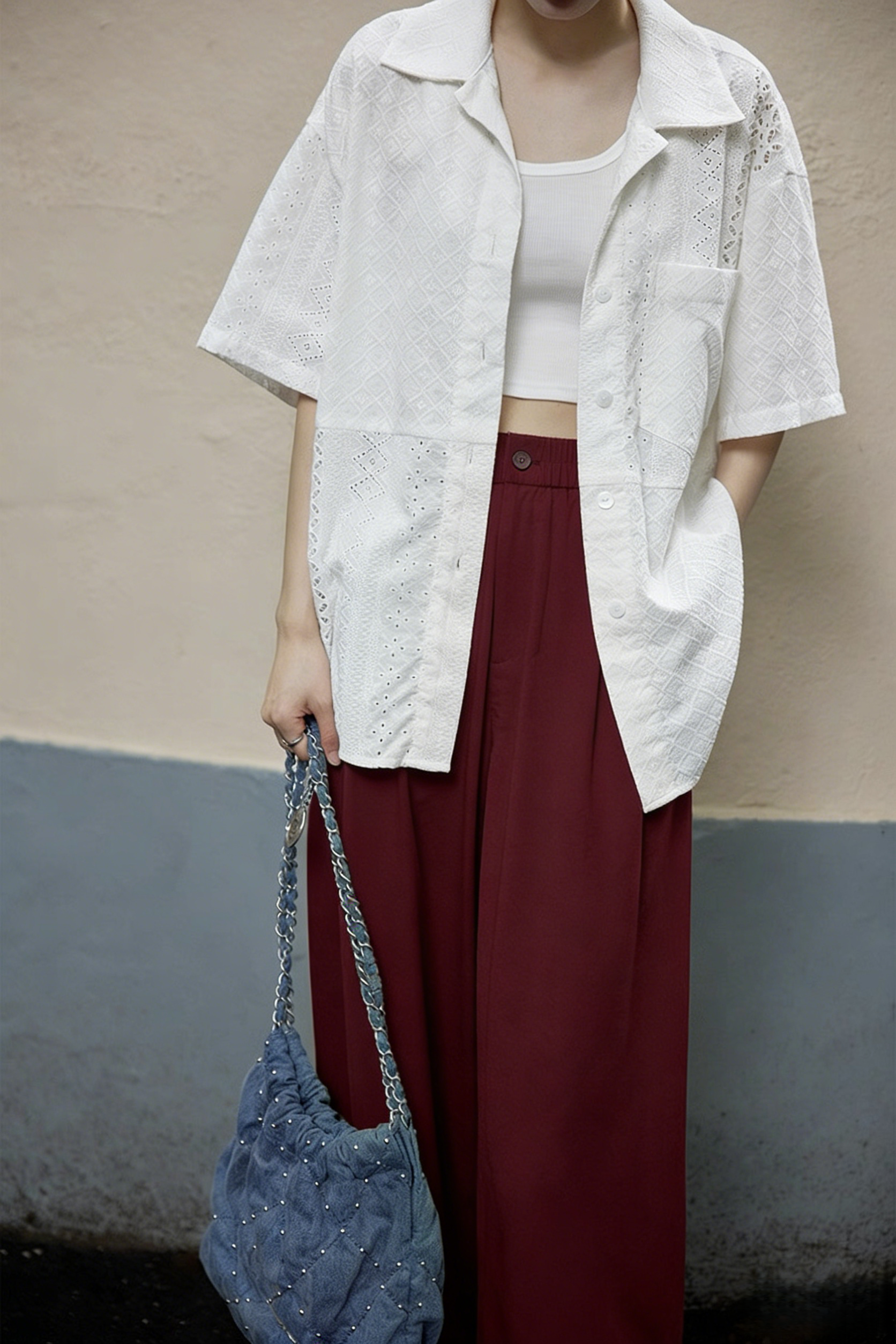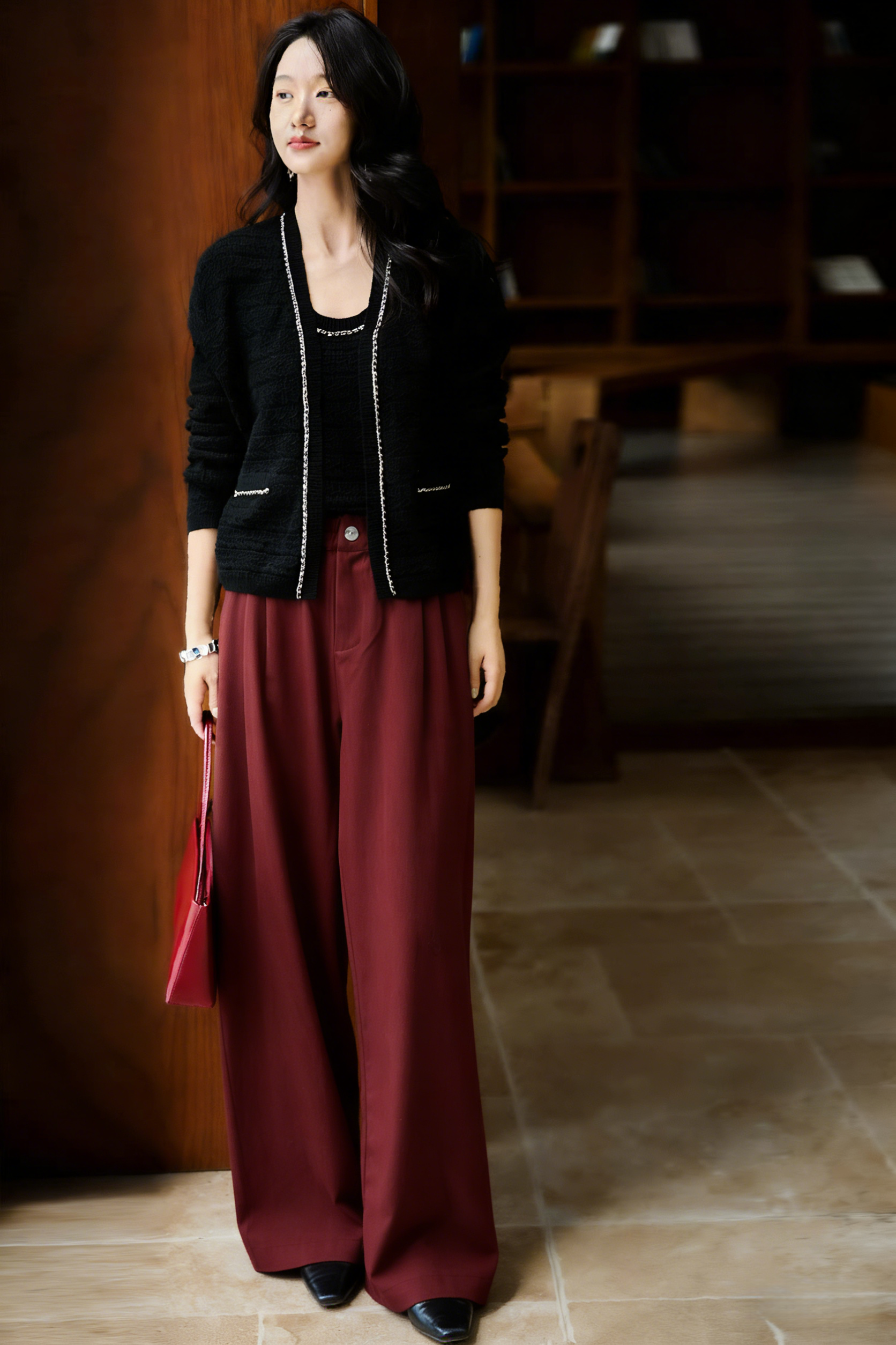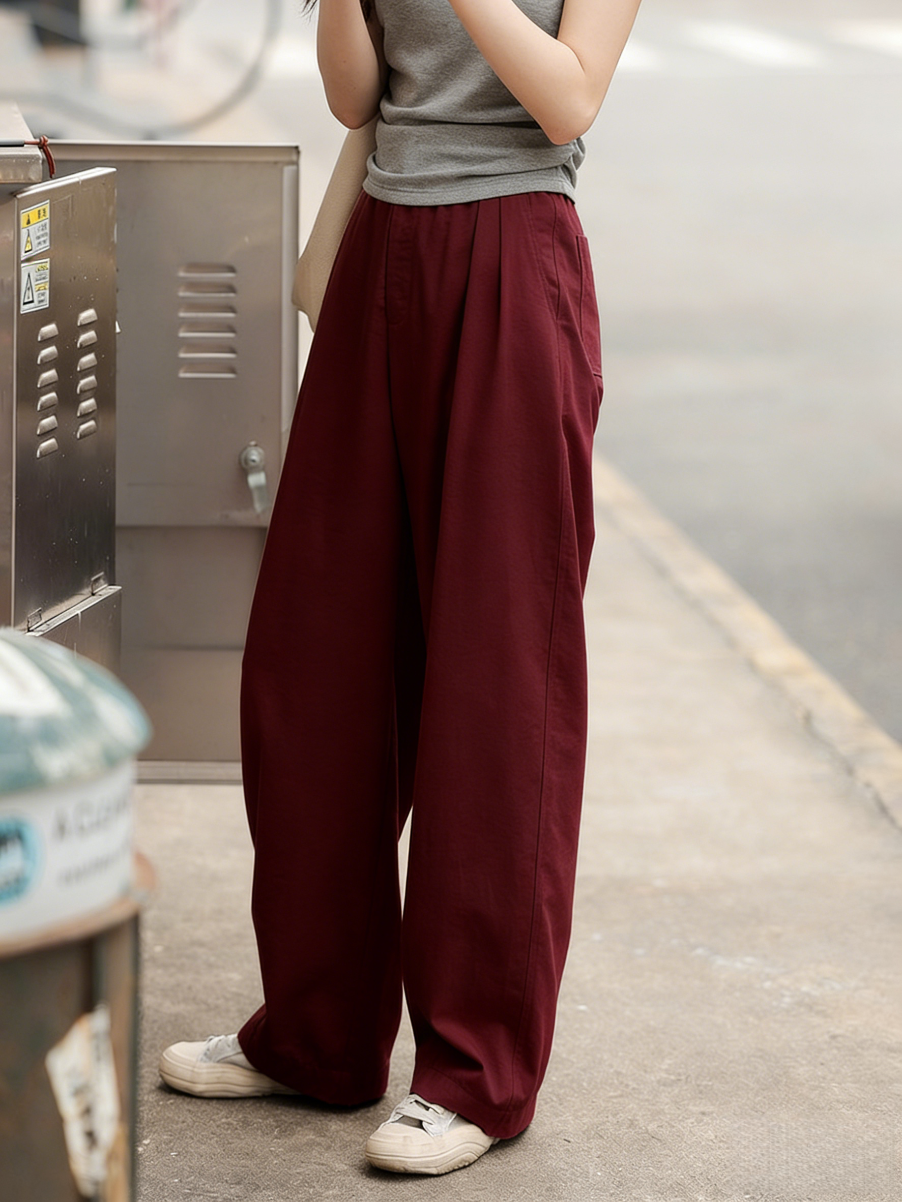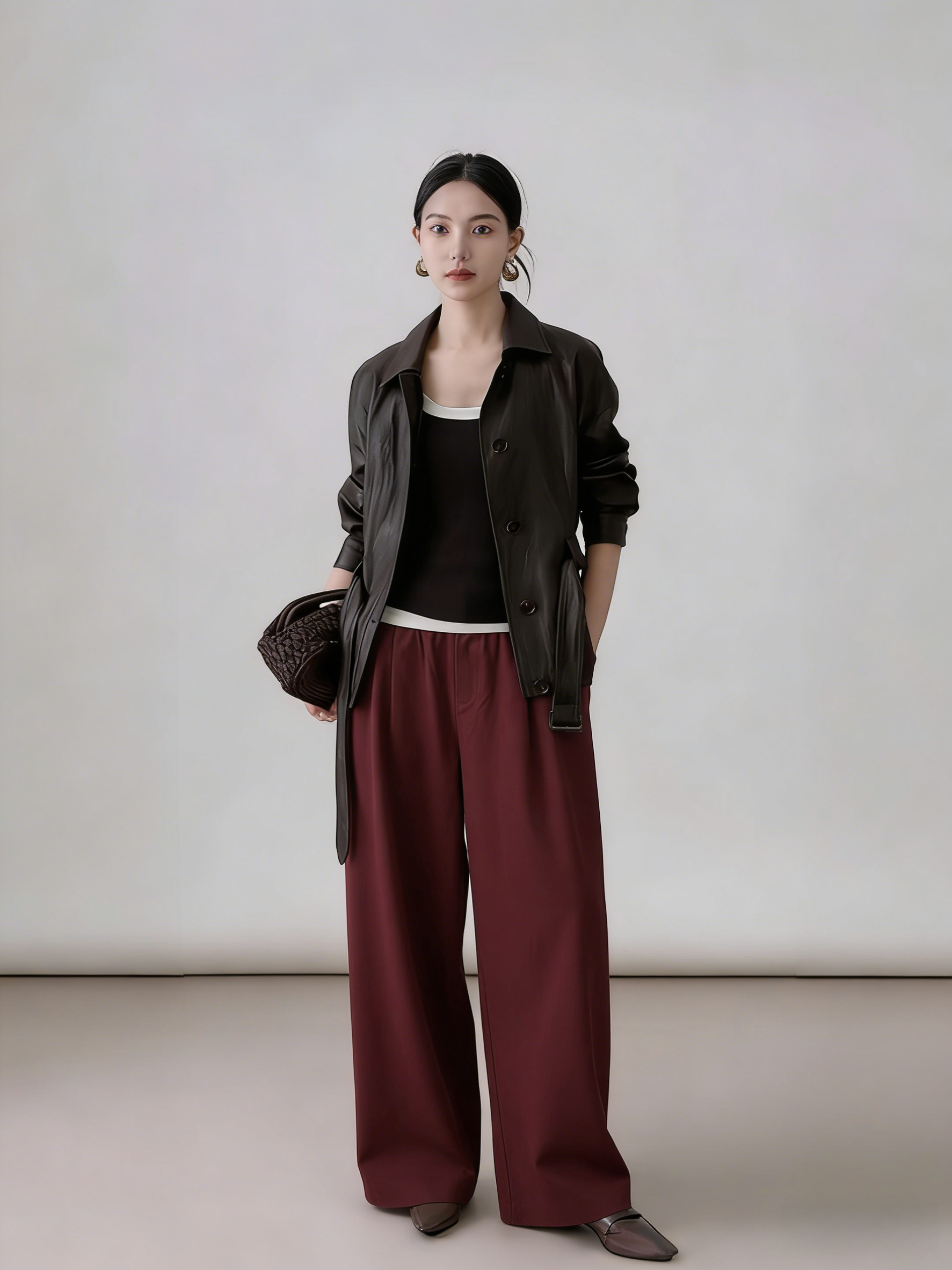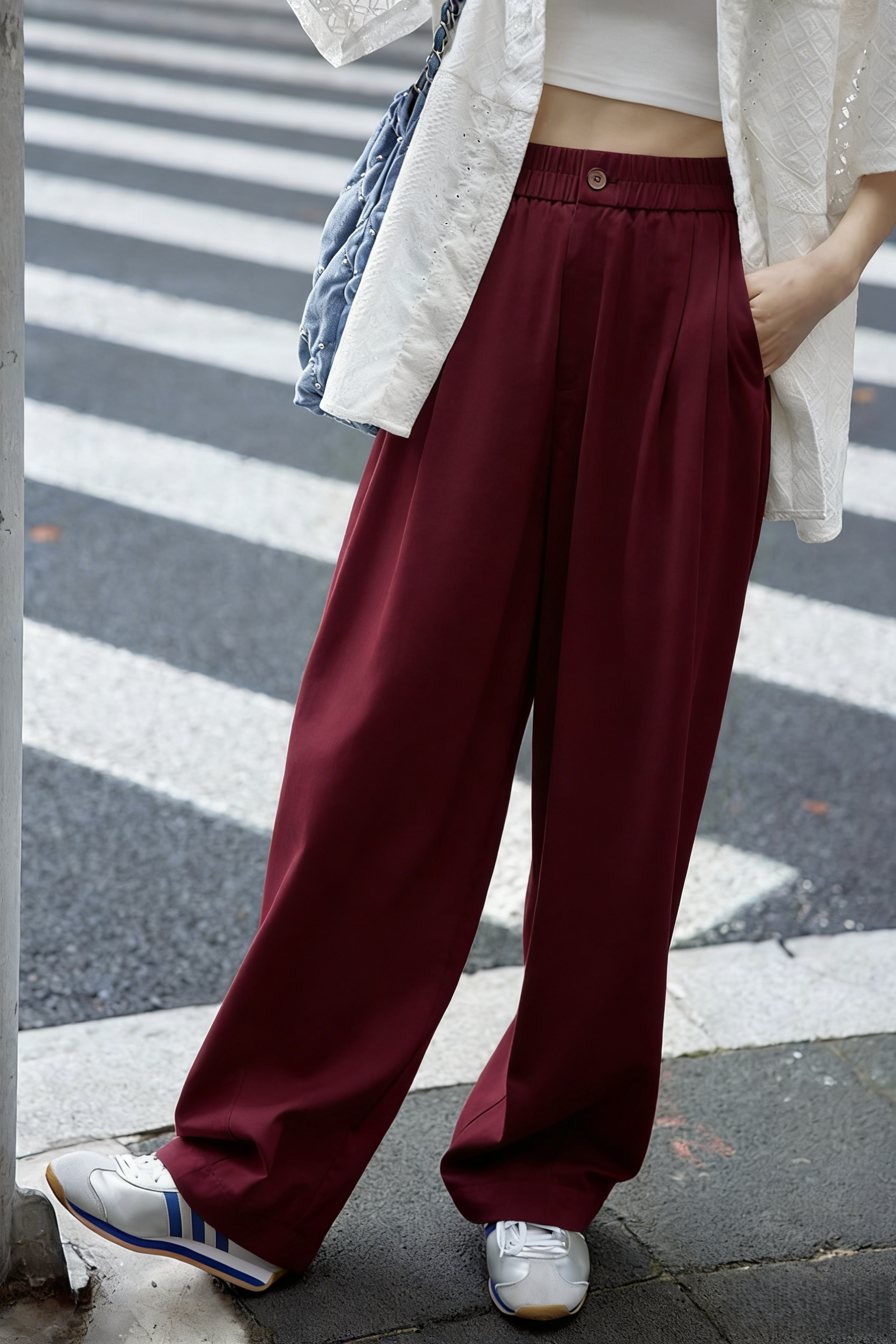 下单3-7天发货! LONGNVFAIR 牛仔天丝棉安可拉红阔腿裤 高腰阔腿版型 显瘦显高 材质软fufu 藏肉显腿长