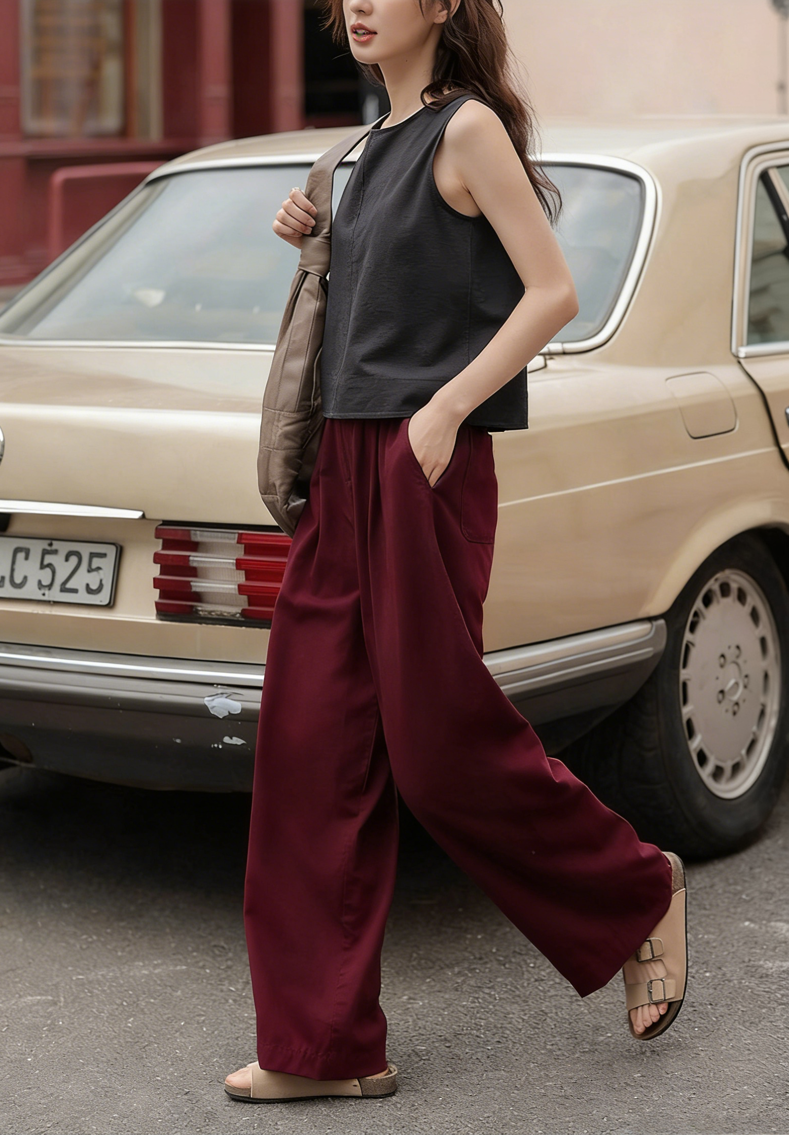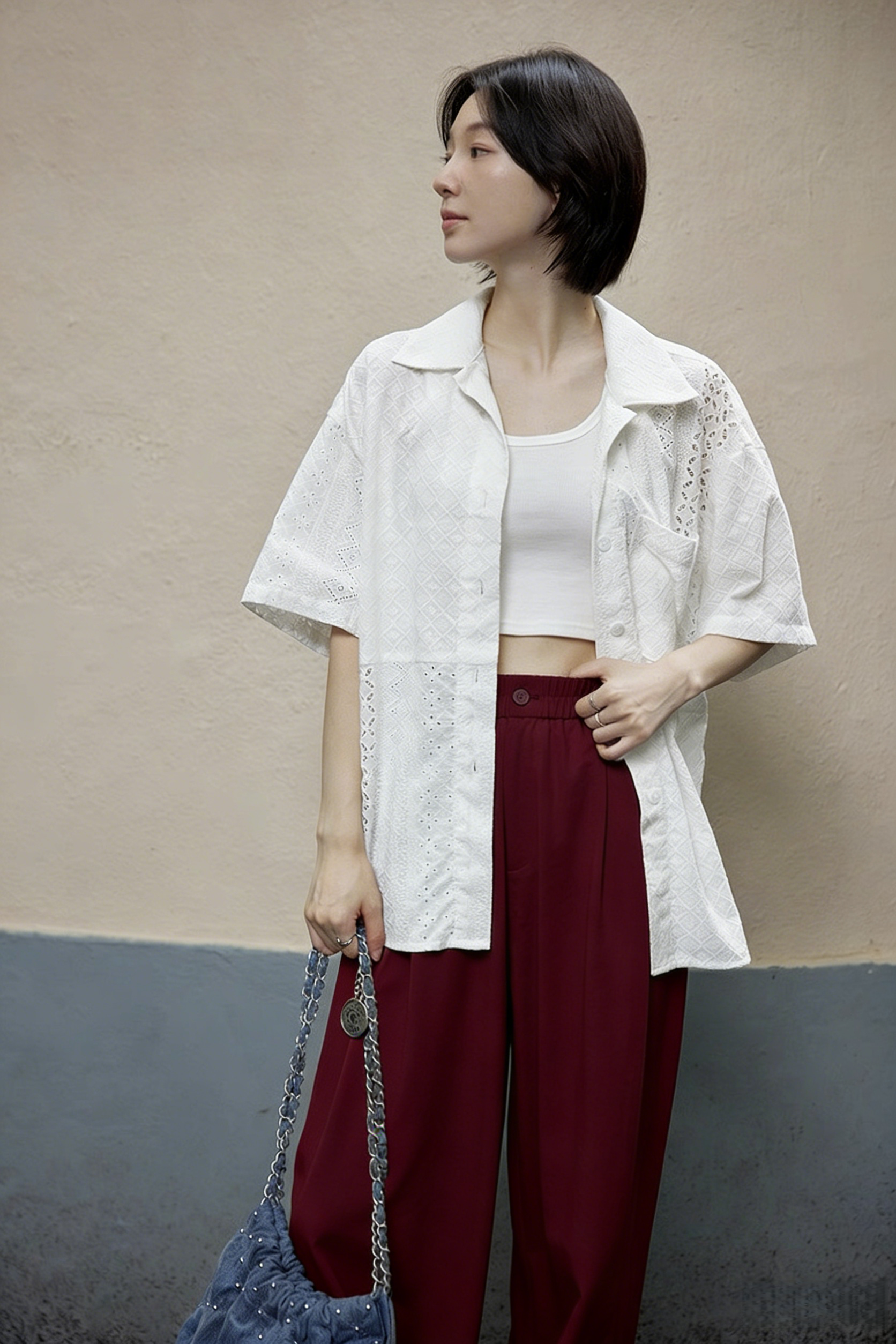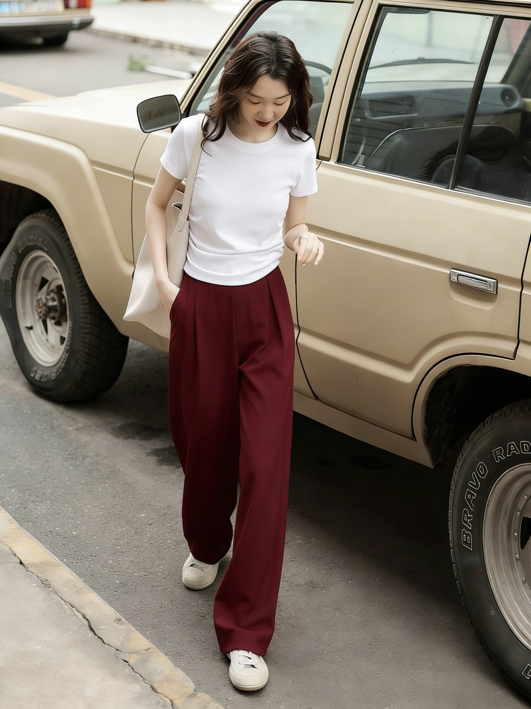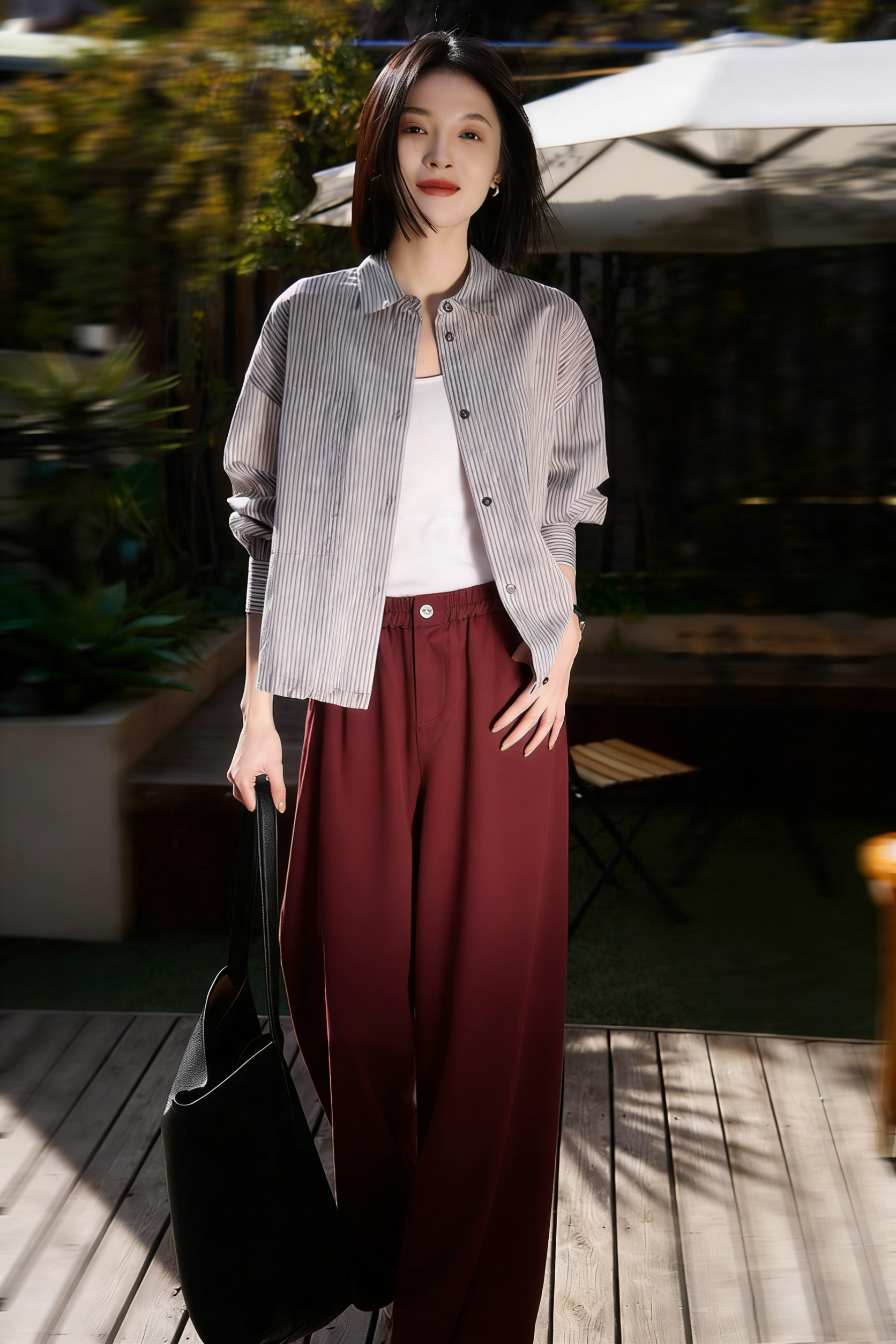 下单3-7天发货! LONGNVFAIR 牛仔天丝棉安可拉红阔腿裤 高腰阔腿版型 显瘦显高 材质软fufu 藏肉显腿长