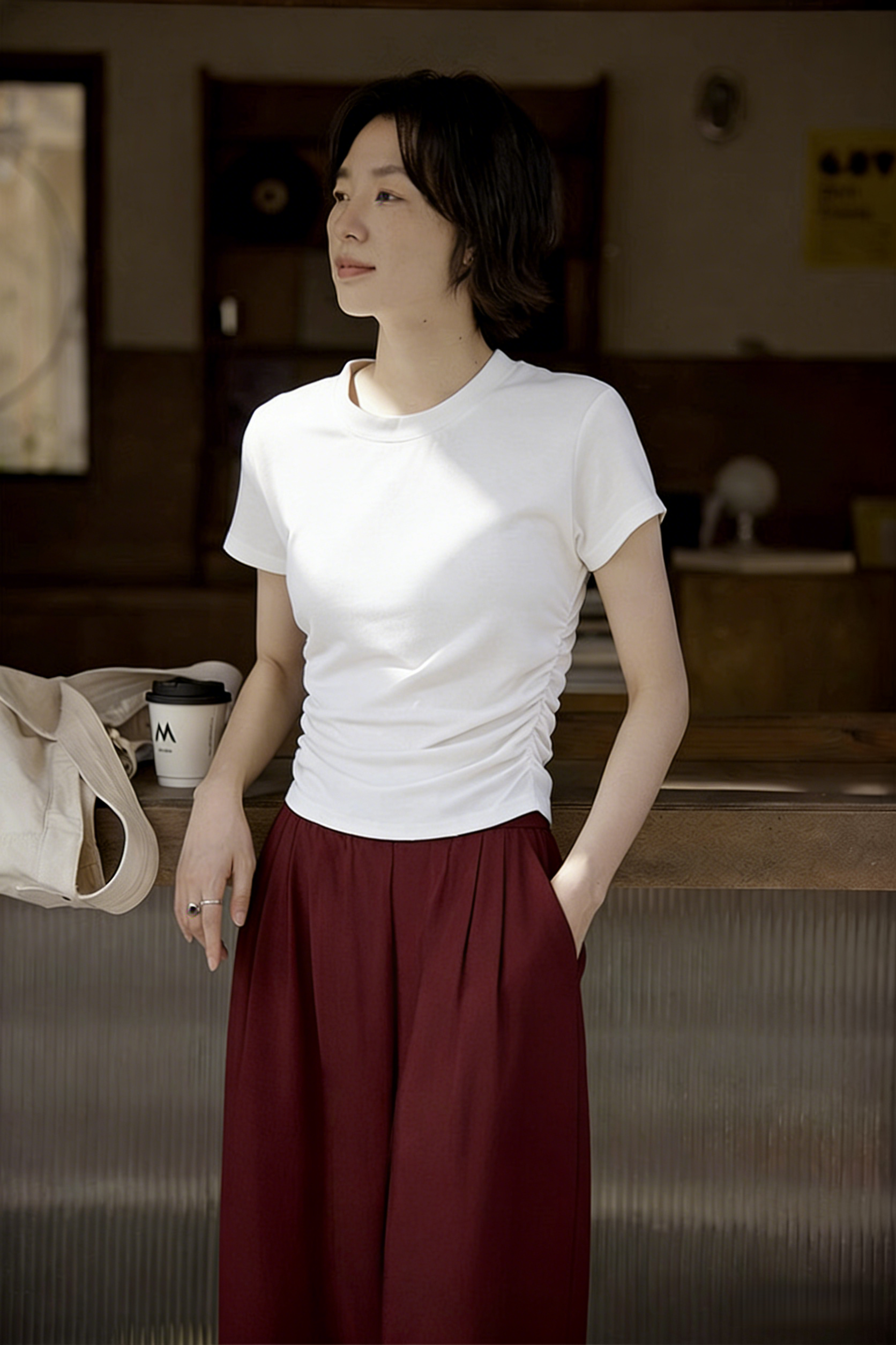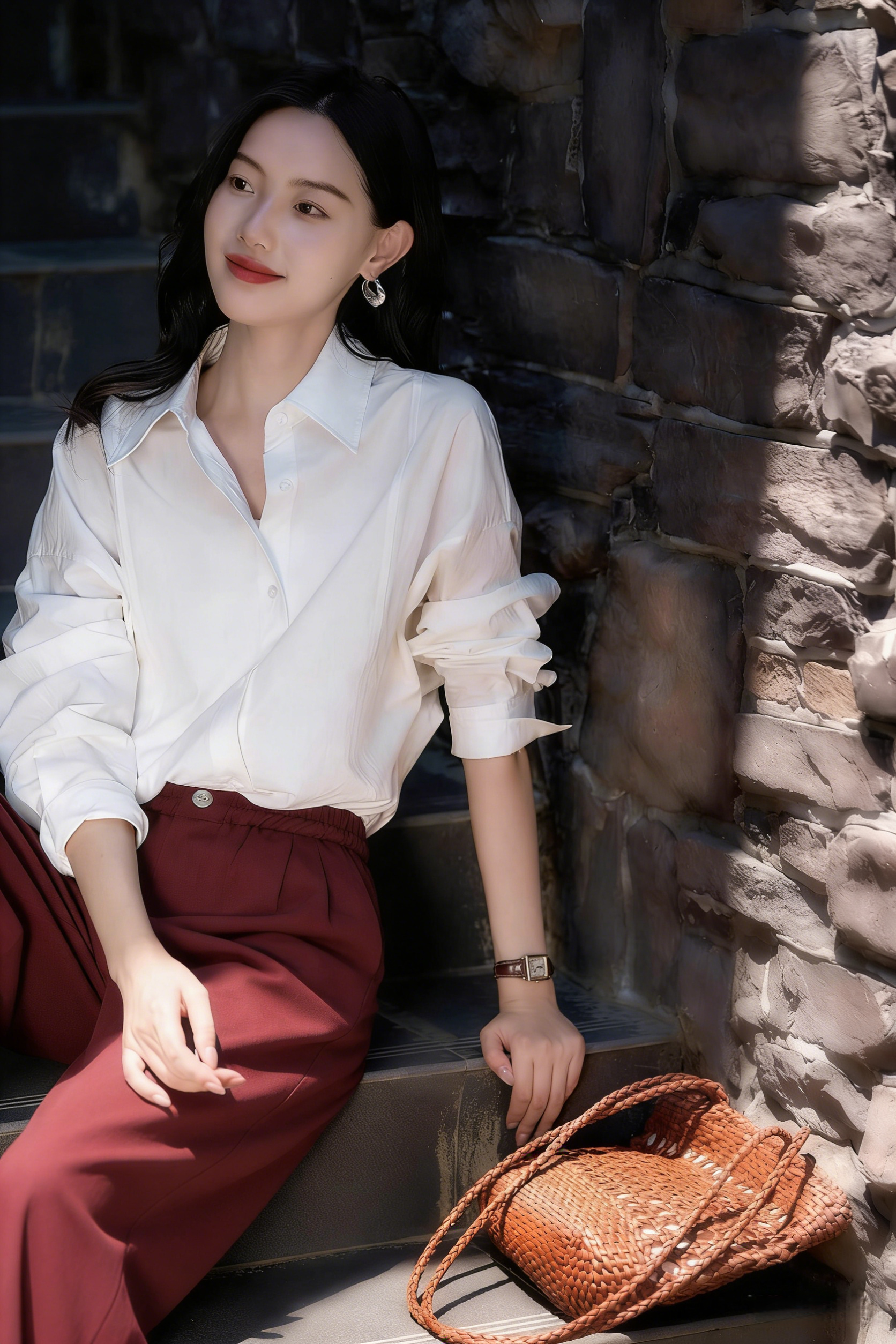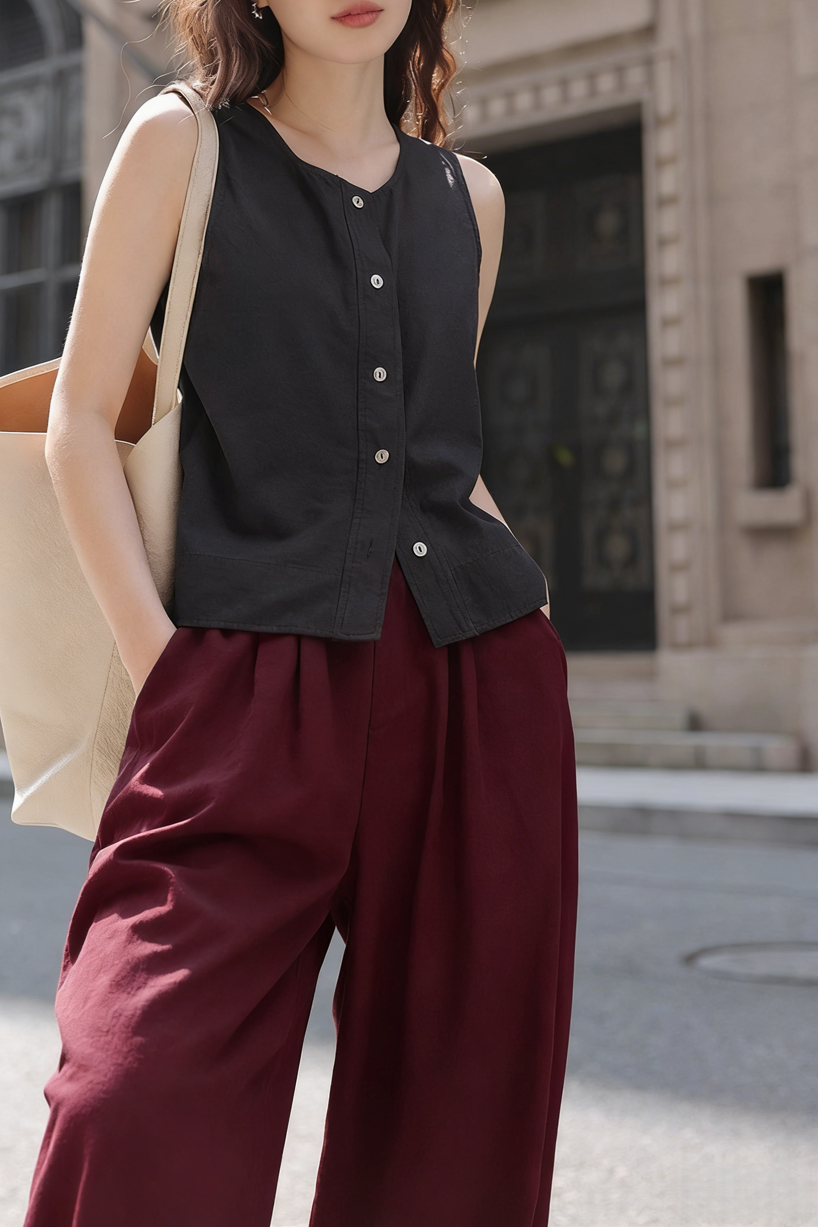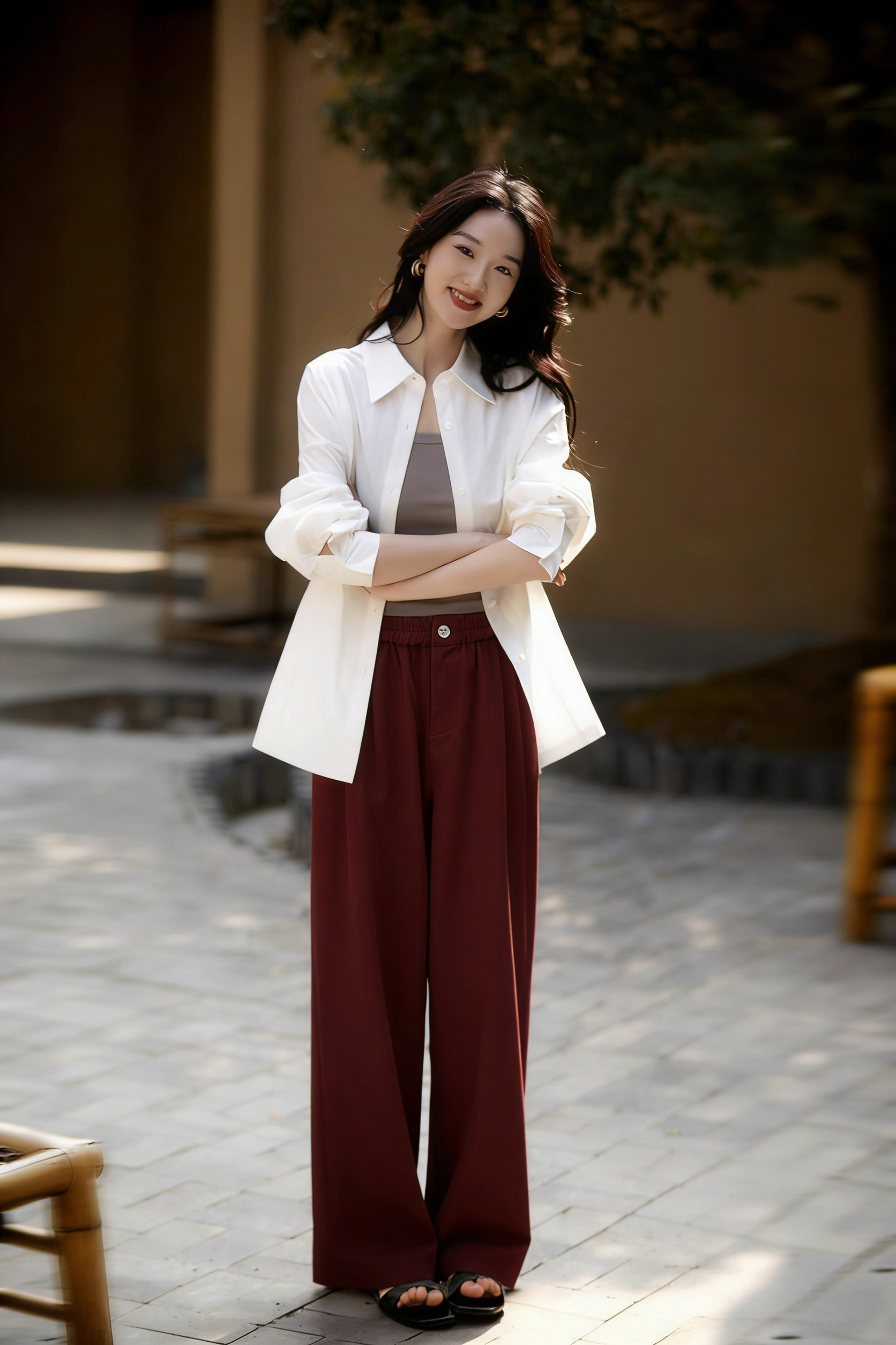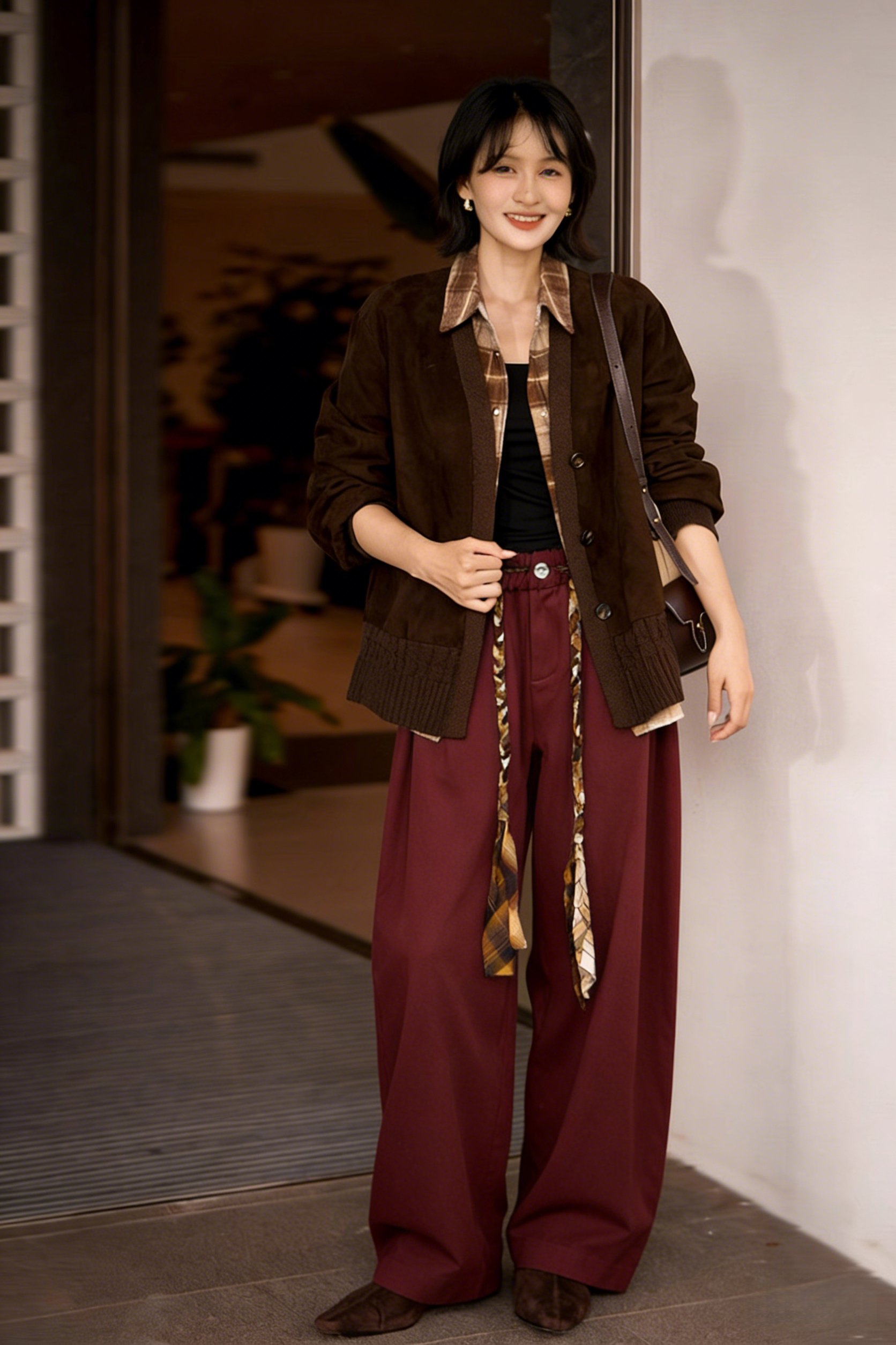 下单3-7天发货! LONGNVFAIR 牛仔天丝棉安可拉红阔腿裤 高腰阔腿版型 显瘦显高 材质软fufu 藏肉显腿长