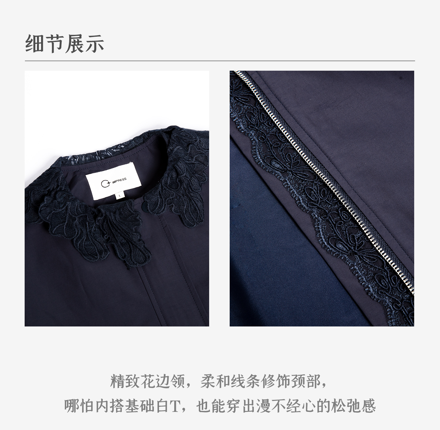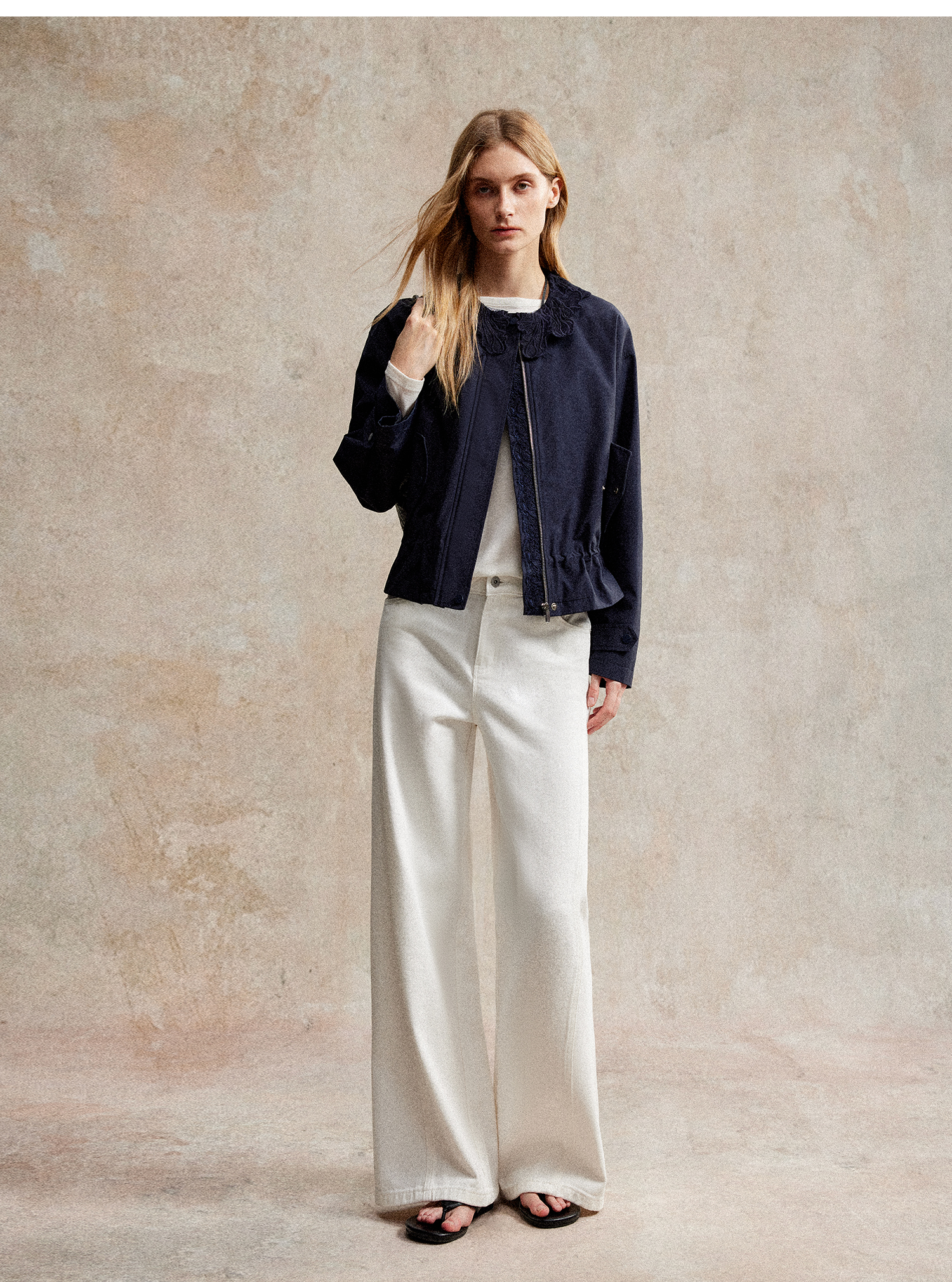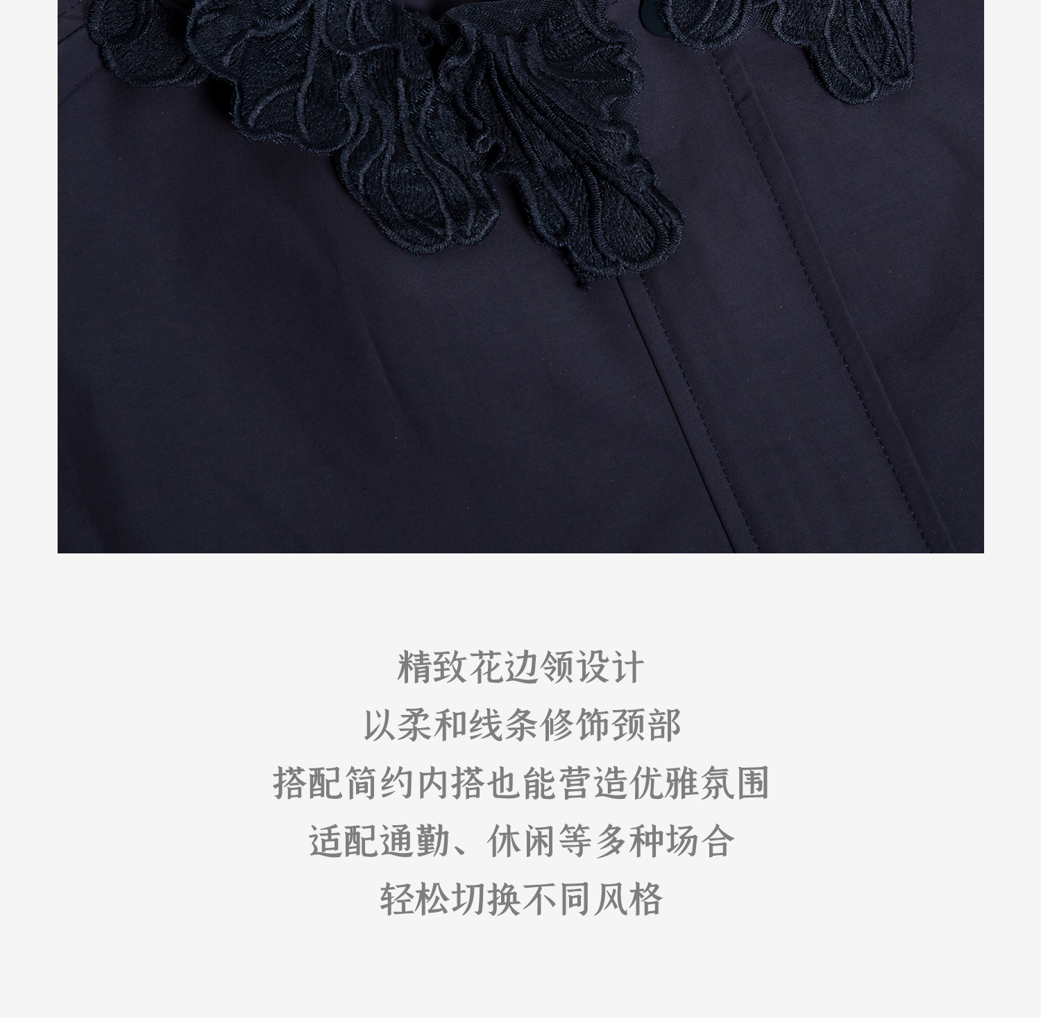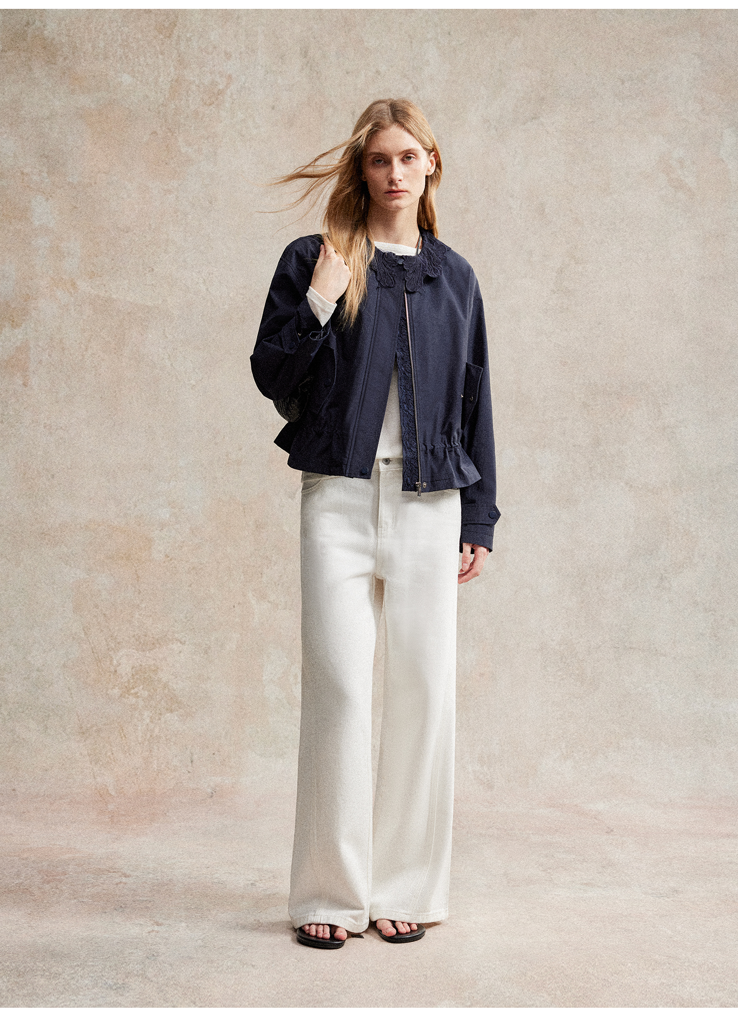 C+IMPRESS/西嘉|优质长绒棉 巴恩风花边领设计下摆抽绳廓形外套女WT2503056