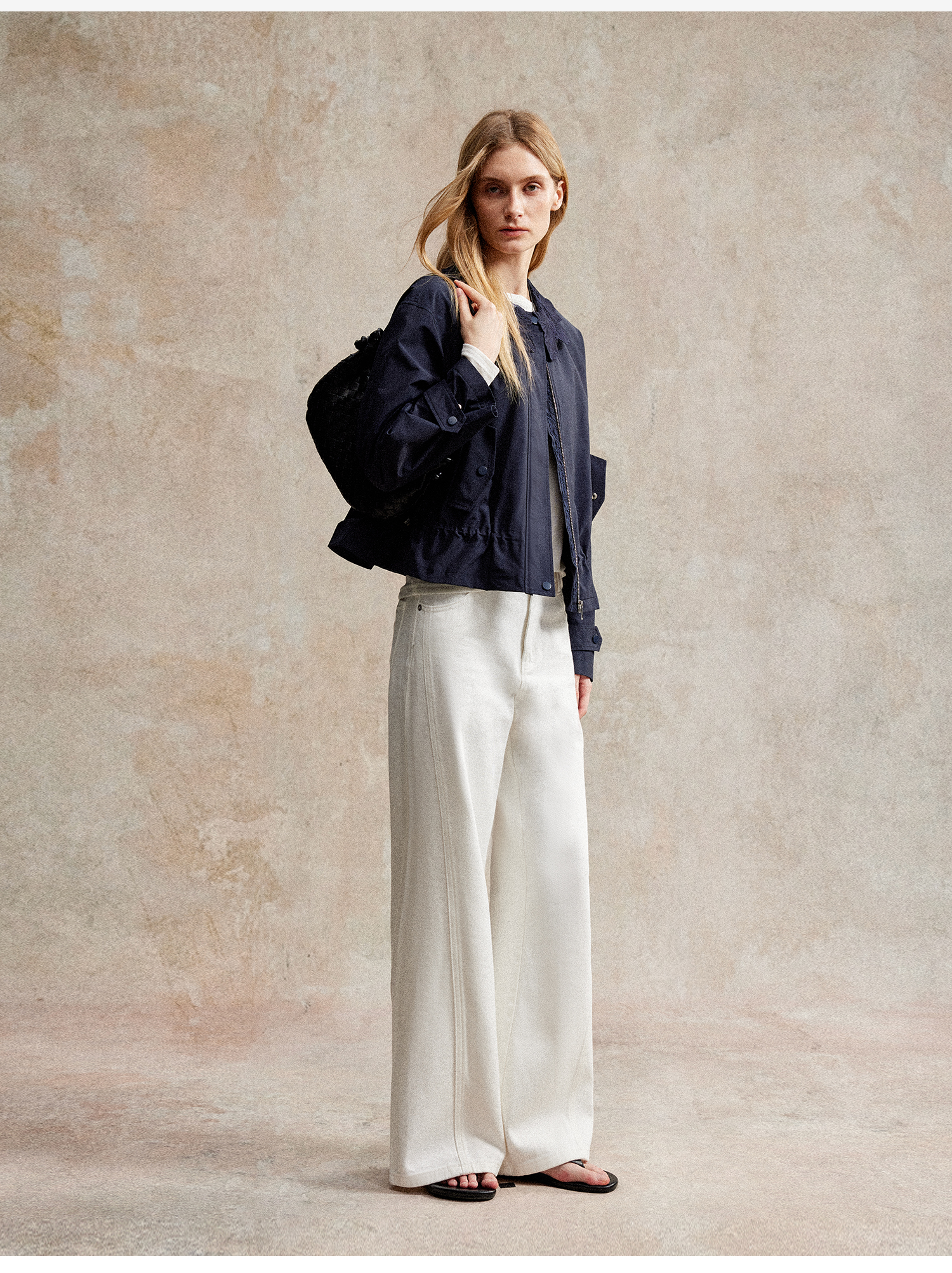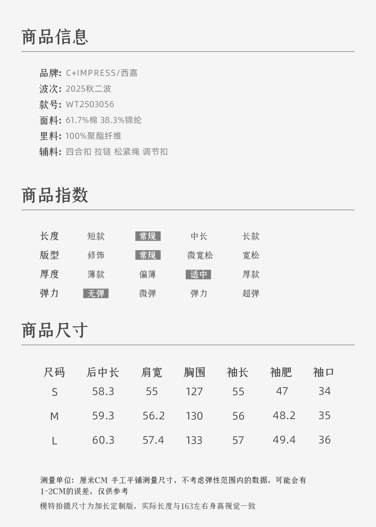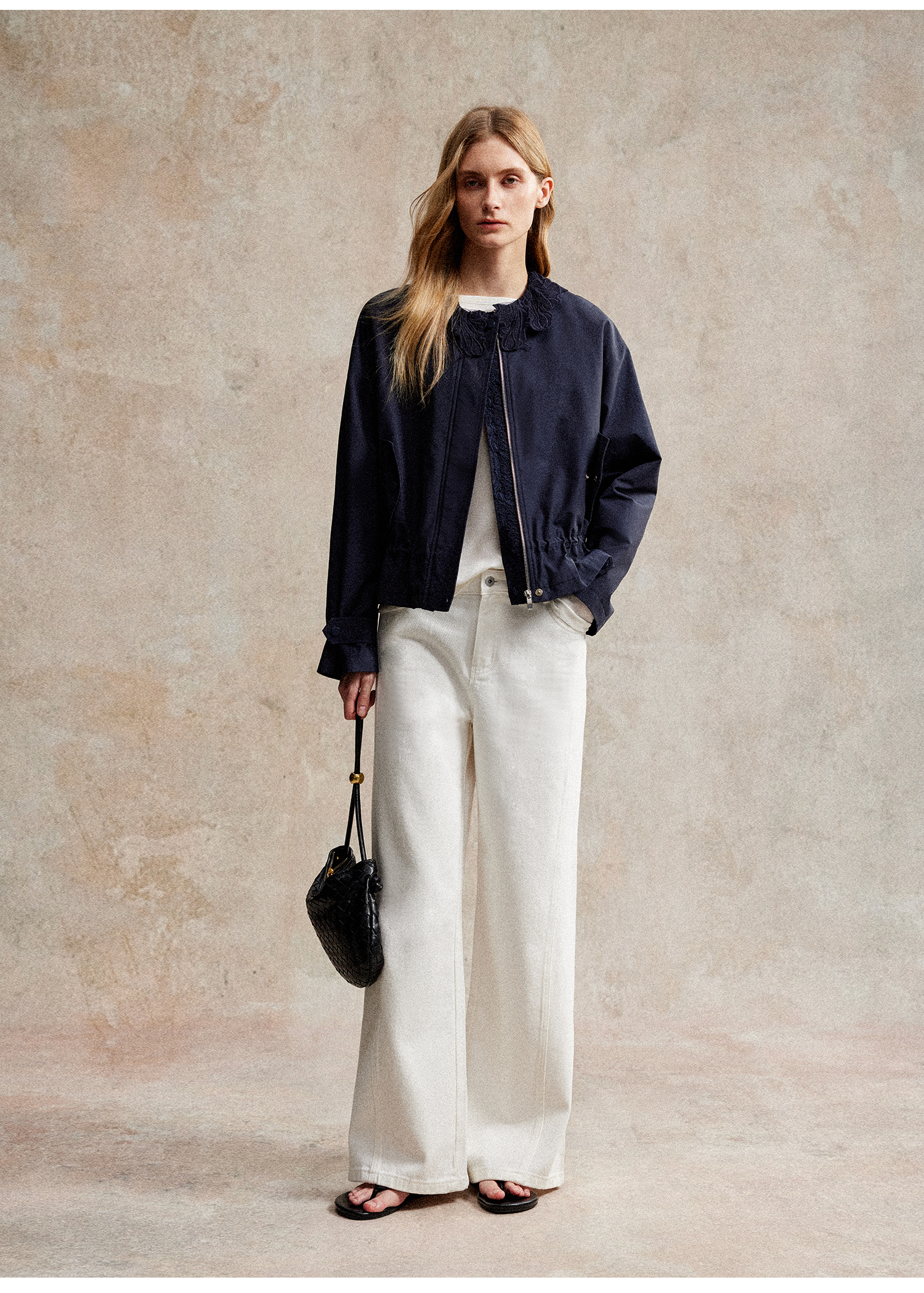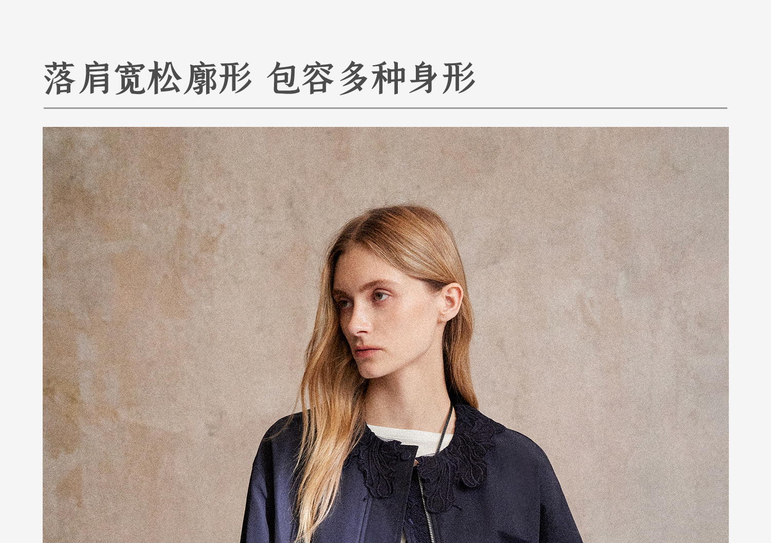 C+IMPRESS/西嘉|优质长绒棉 巴恩风花边领设计下摆抽绳廓形外套女WT2503056