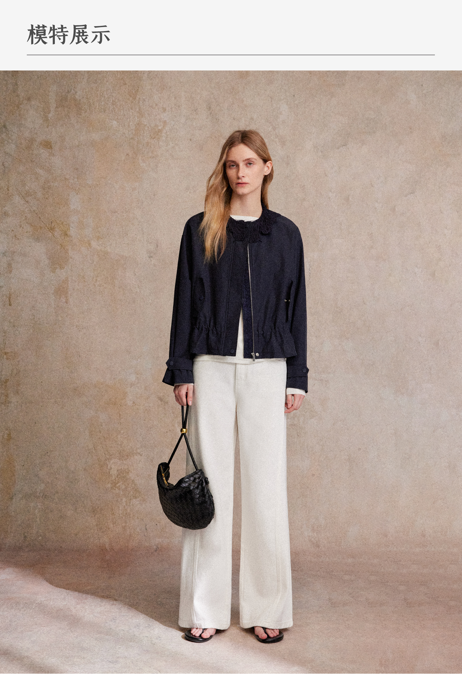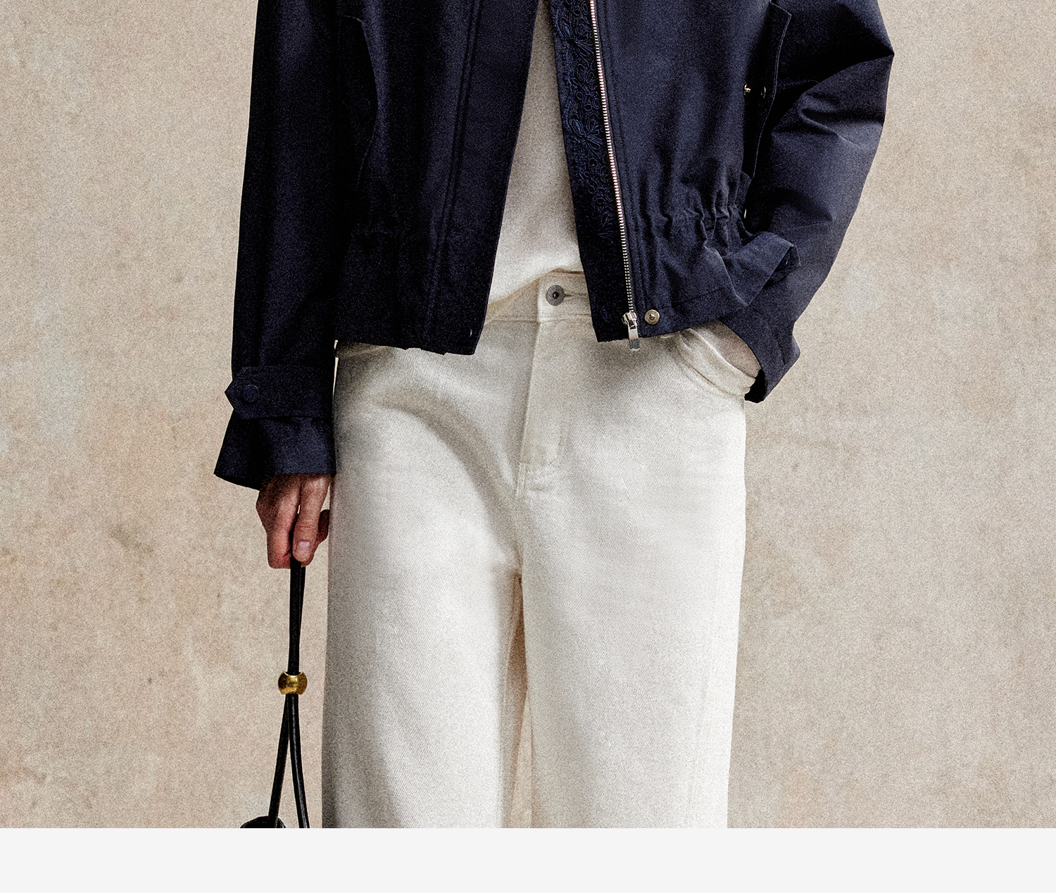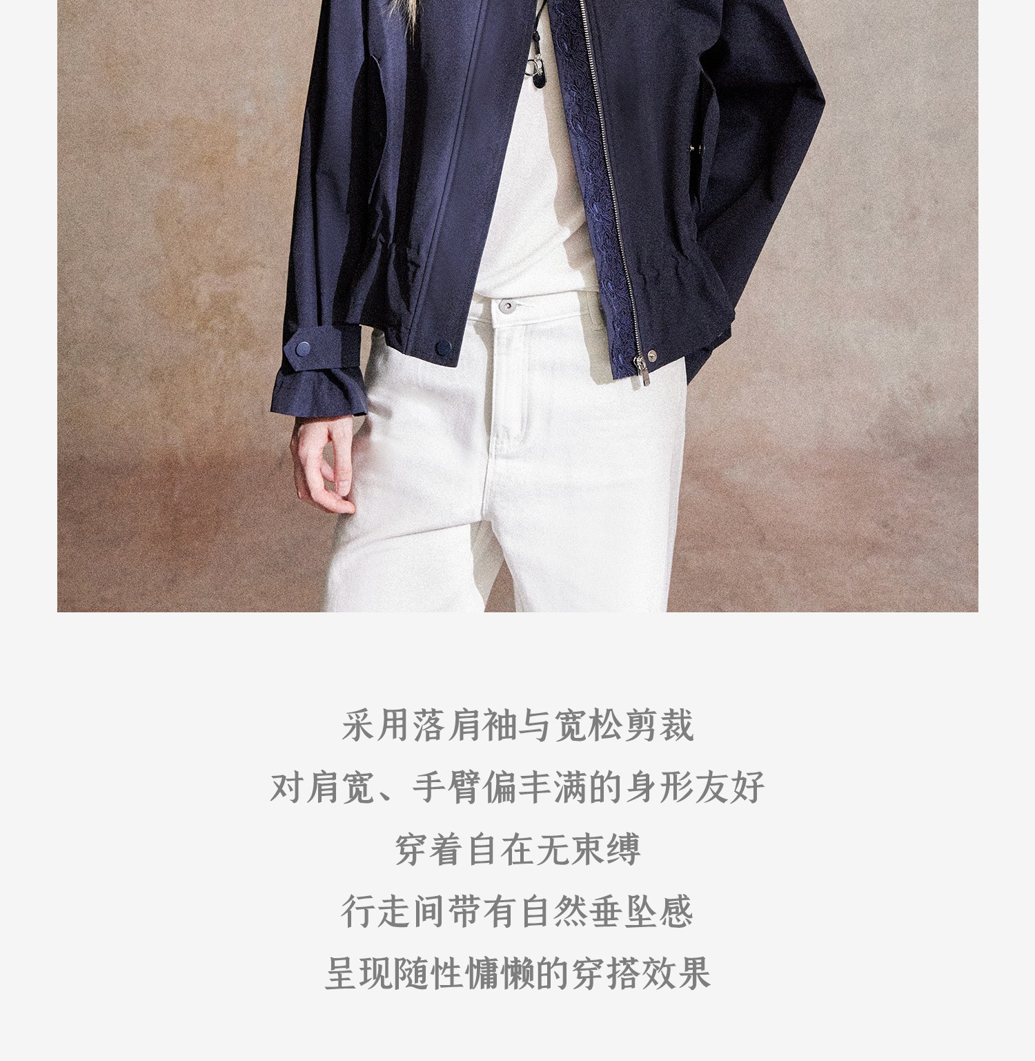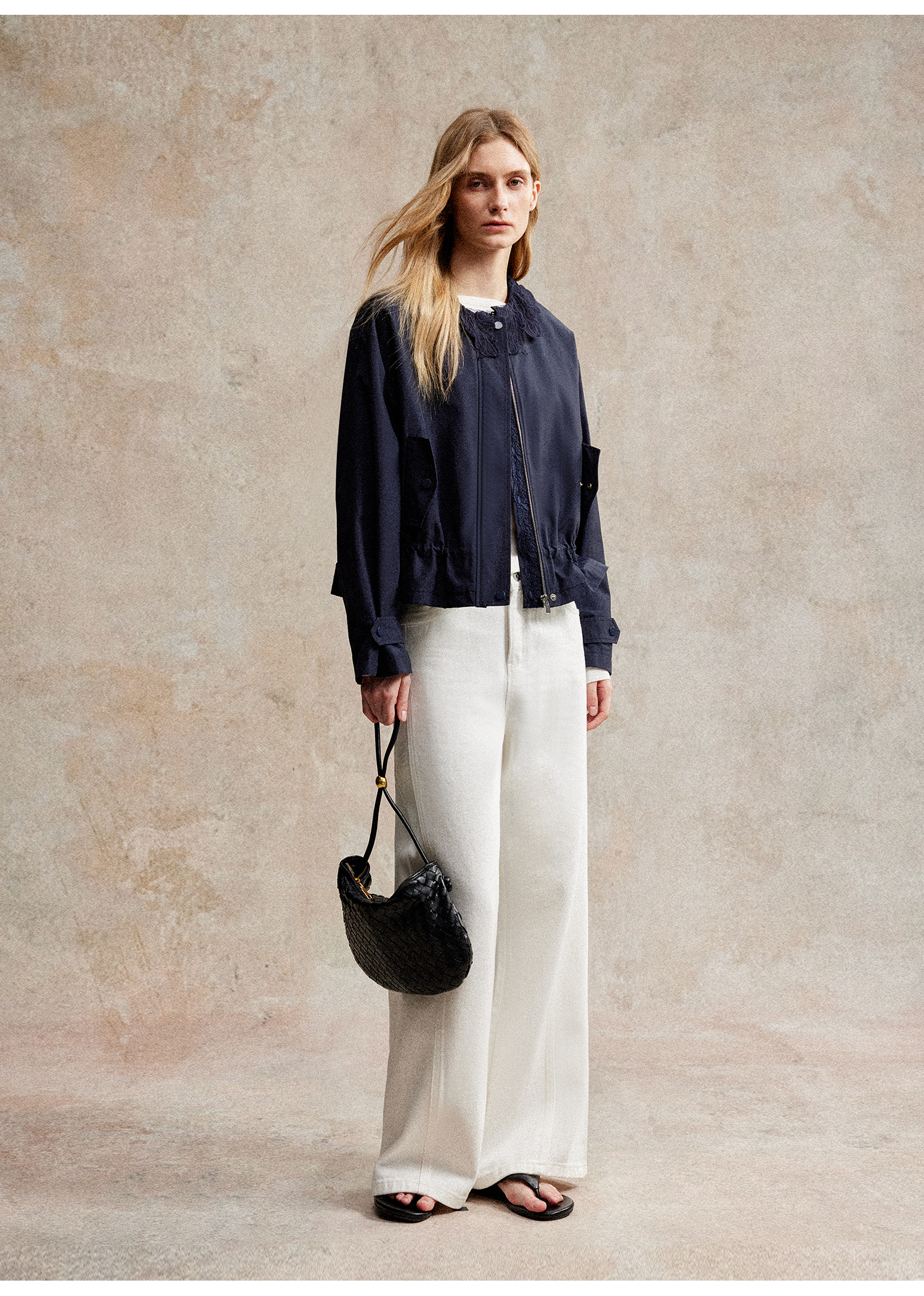 C+IMPRESS/西嘉|优质长绒棉 巴恩风花边领设计下摆抽绳廓形外套女WT2503056