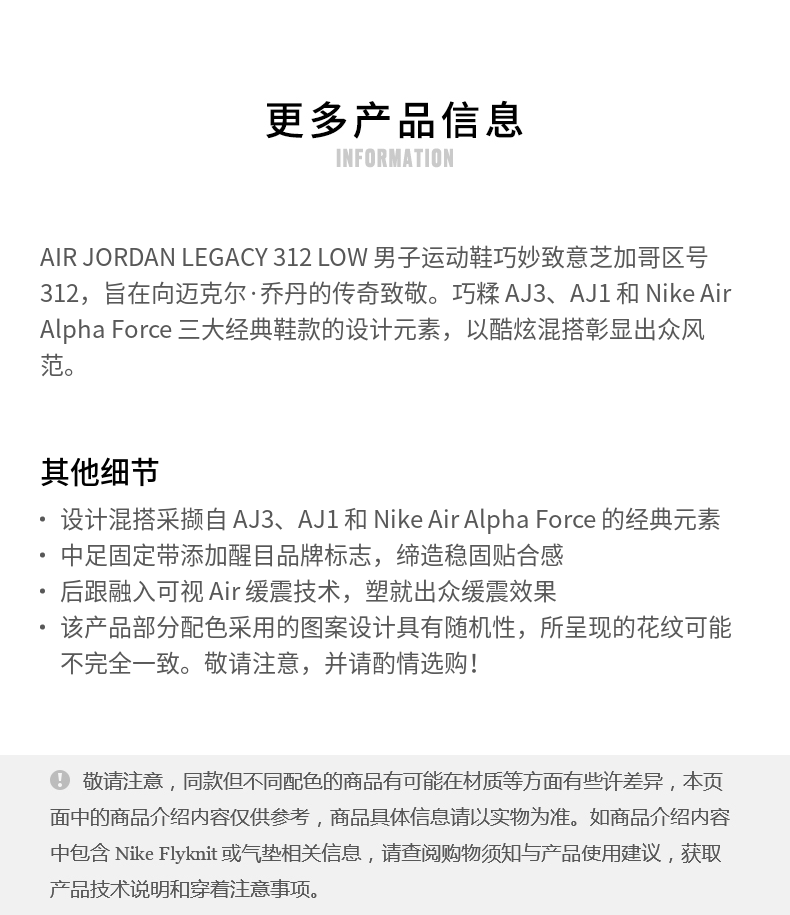 耐克乔丹男子低帮AJ312运动鞋冬季缓震JORDANLEGACY312CD7069-005