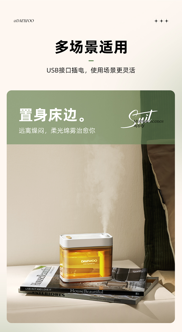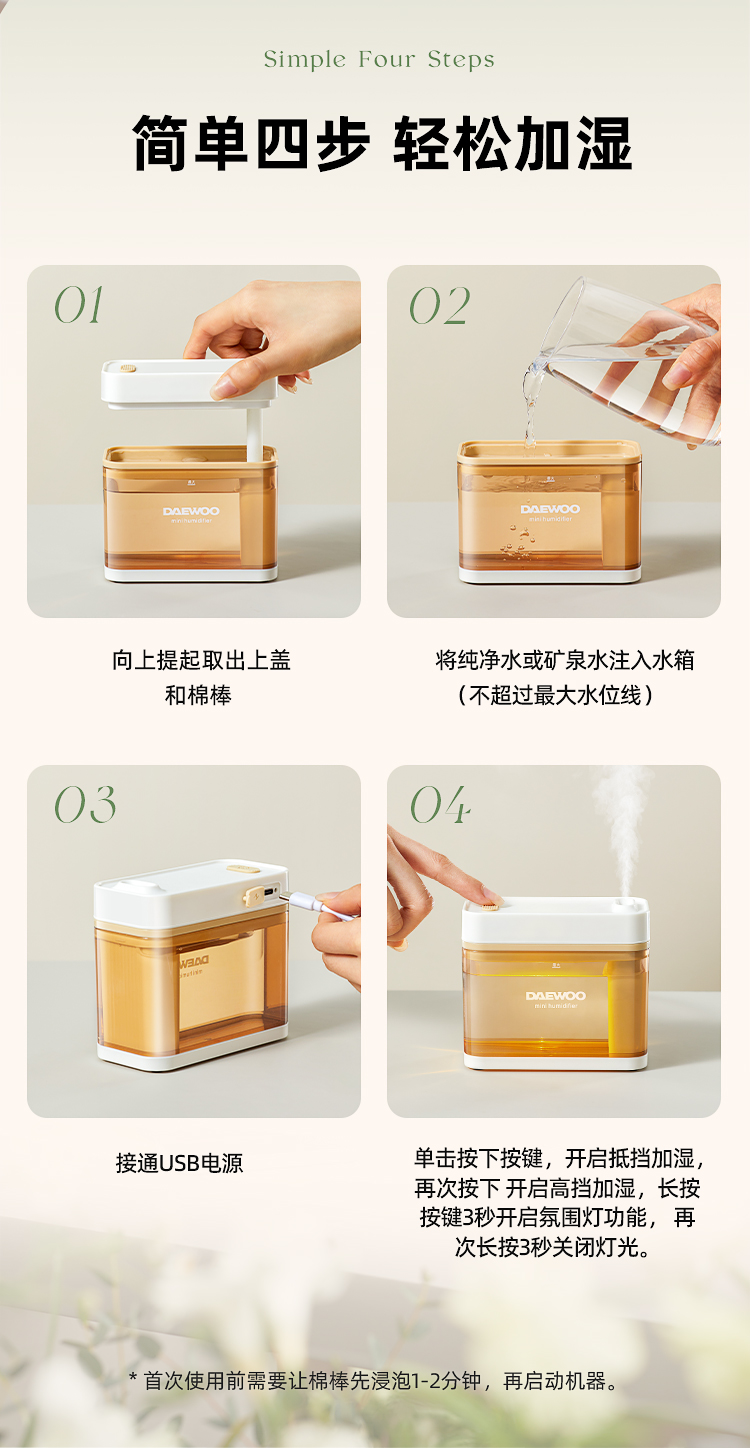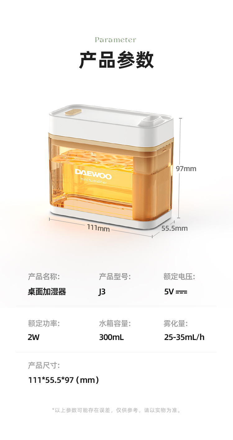 大宇加湿器J3小型办公室桌面卧室宿舍学生