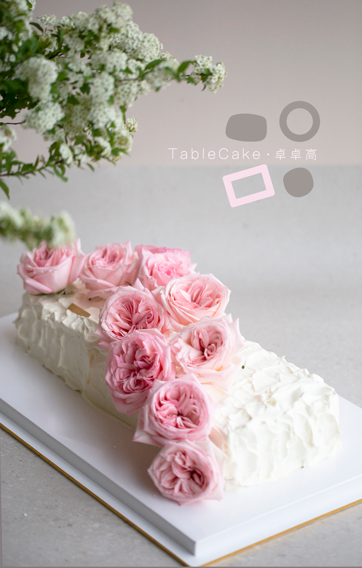「卓卓高」TableCake|「粉玫瑰之恋」玫瑰荔枝奶油长桌糕