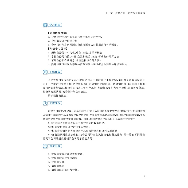 本书为高职十三五国家规划教材,根据高职专业人才培养目标,结合学生的专业课程体系和学生的数学认知基础,以工作岗位任务引领,生活化情境设置和案例驱动形式,主要针对高职各类专业学生的专业学习需要和未来的工作需要而编写。主要内容涵盖一元函数微积分、矩阵代数、概率统计。共分五章:diyi章数据的统计分析与预测方法(统计、函数、极限和连续);第二章 边际分析与zy决策中的数学方法(导数及应用);第三章 总量的数学分析与计算(积分及应用、微分方程);第四章 生产安排中的决策方法(矩阵、解线性方程组);第五章 品质管理分析中的概率思想方法(概率与统计)。教材使用“立方书”数字化平台配套视频、知识链接、在线测试等数字资源共118个。