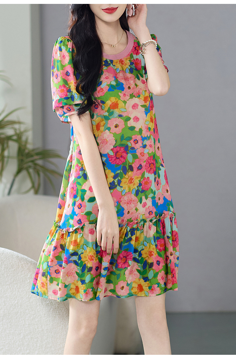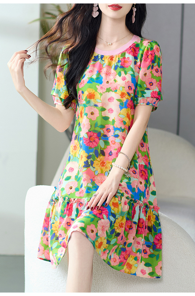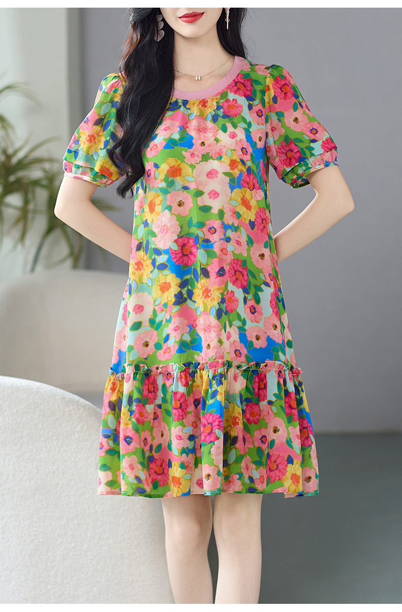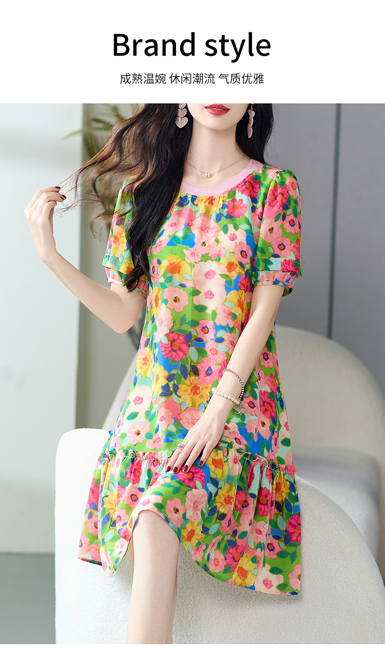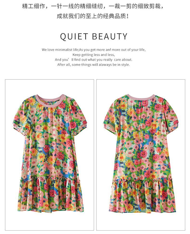 WWM69469小个子宽松A版娃娃印花真丝连衣裙子女度假风约会小裙