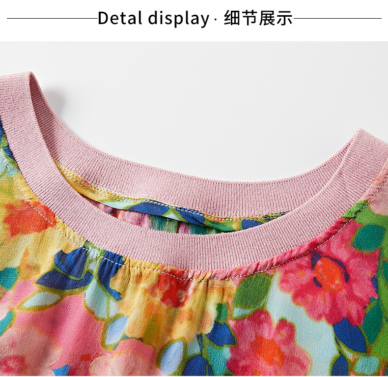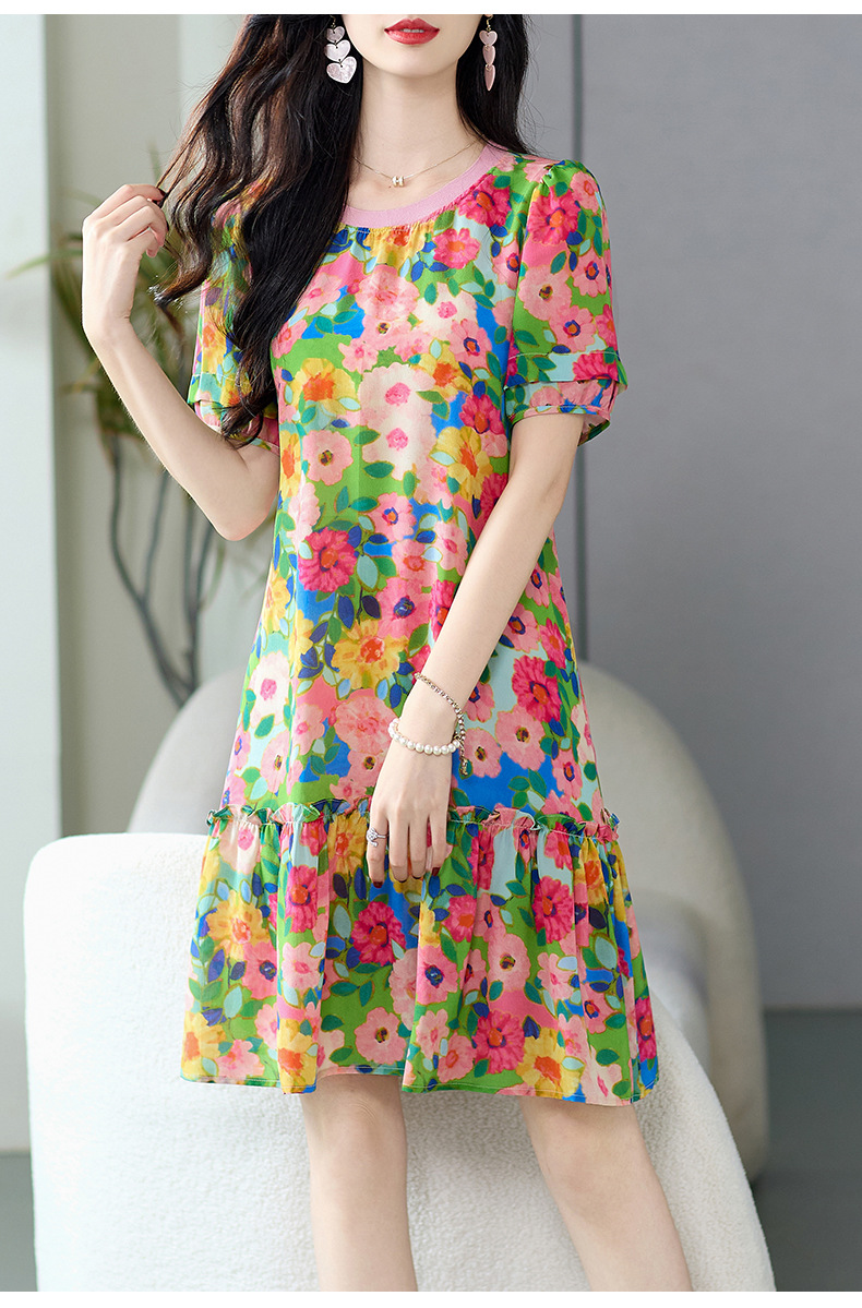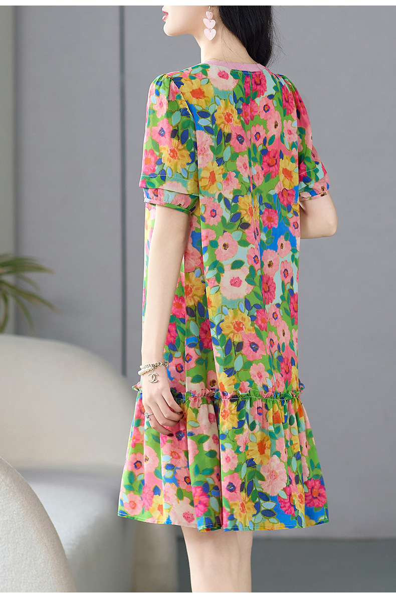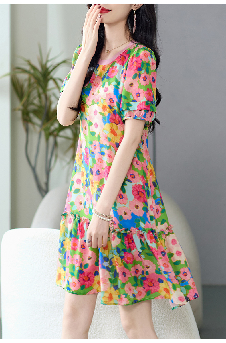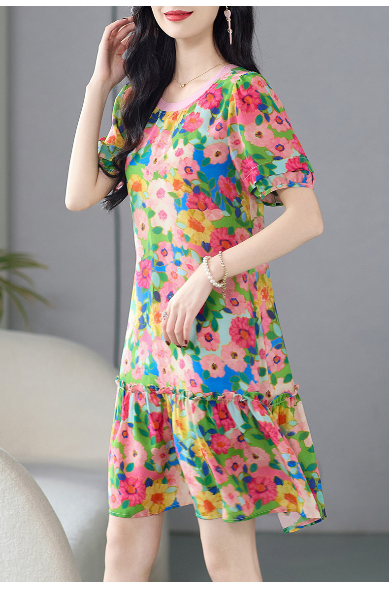WWM69469小个子宽松A版娃娃印花真丝连衣裙子女度假风约会小裙