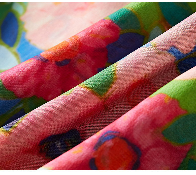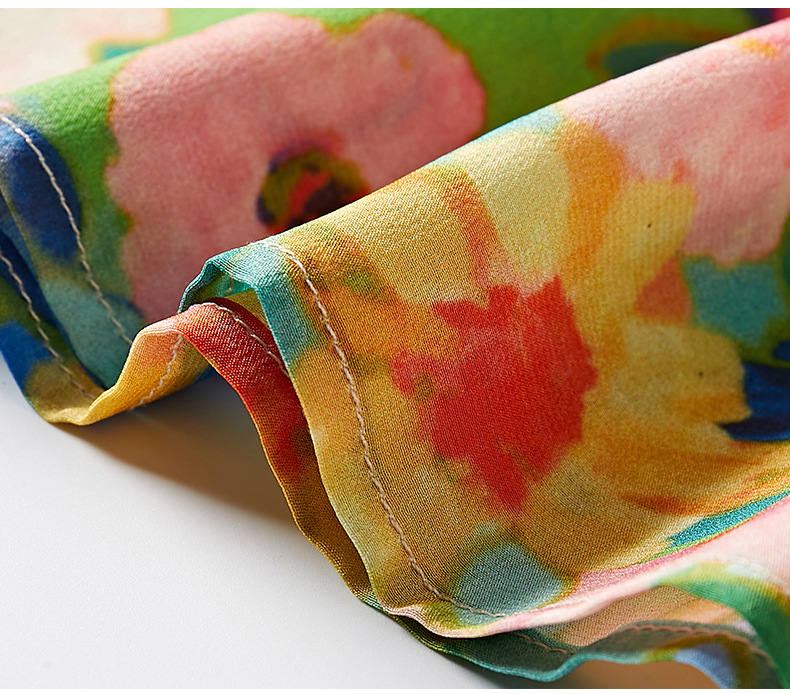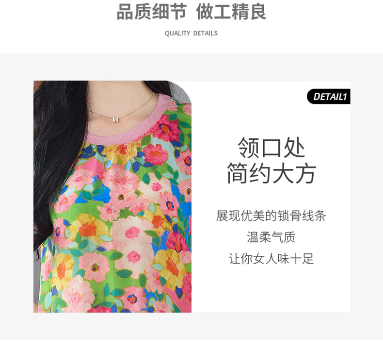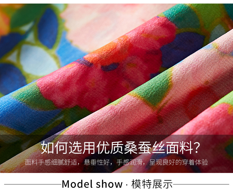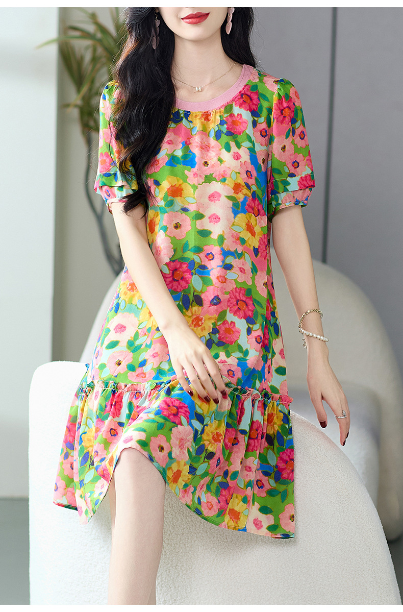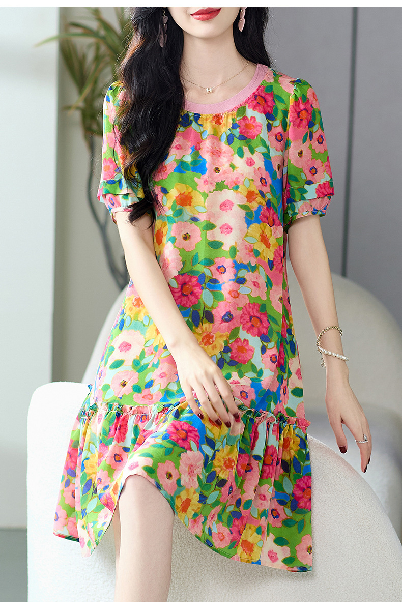 WWM69469小个子宽松A版娃娃印花真丝连衣裙子女度假风约会小裙