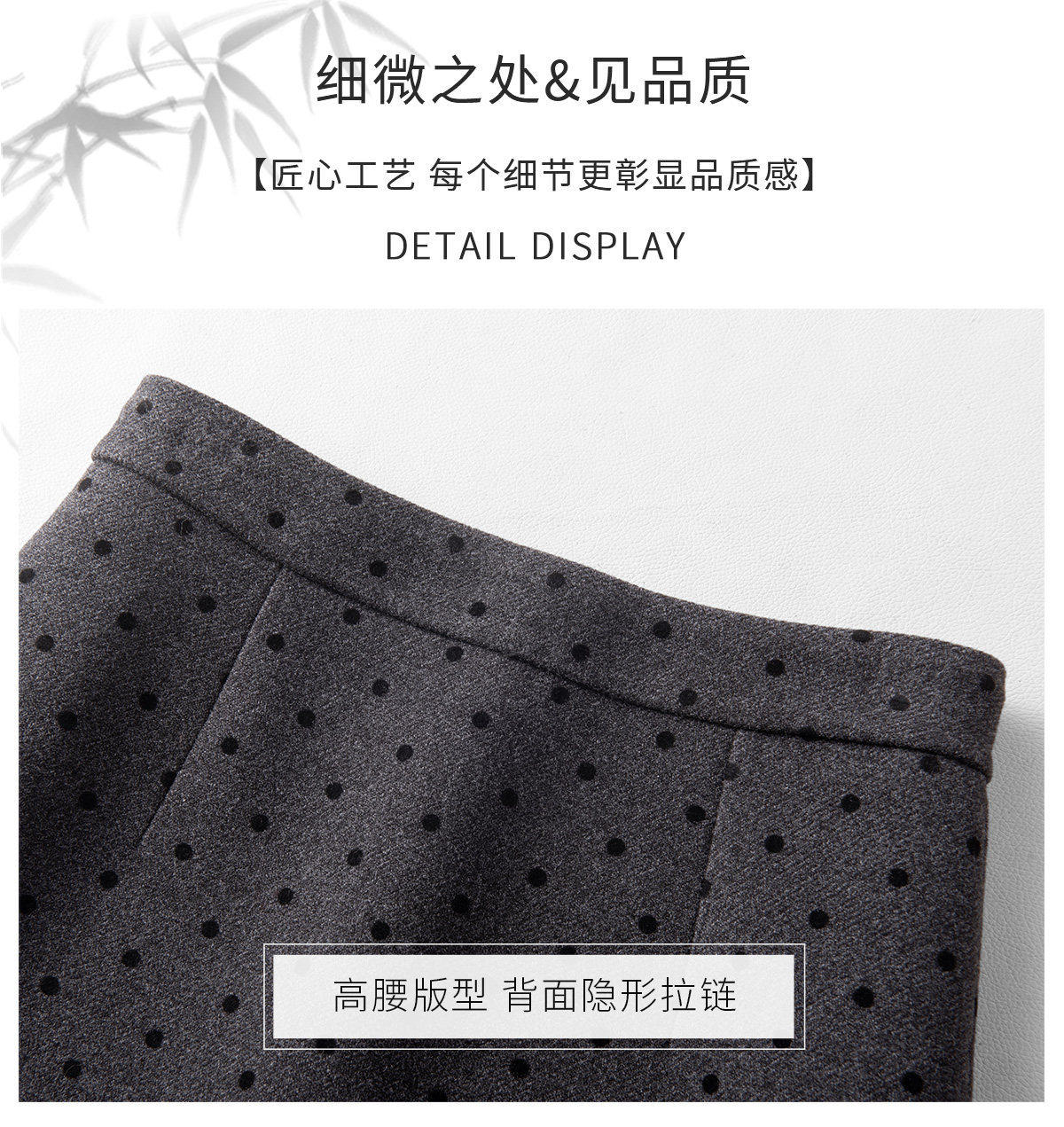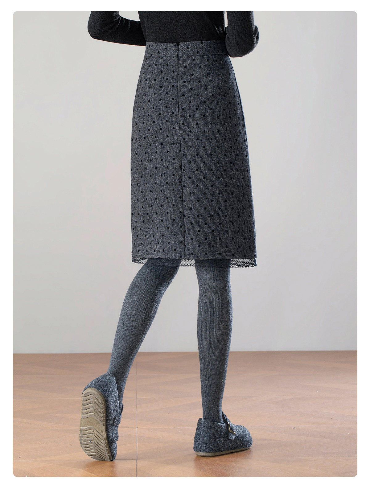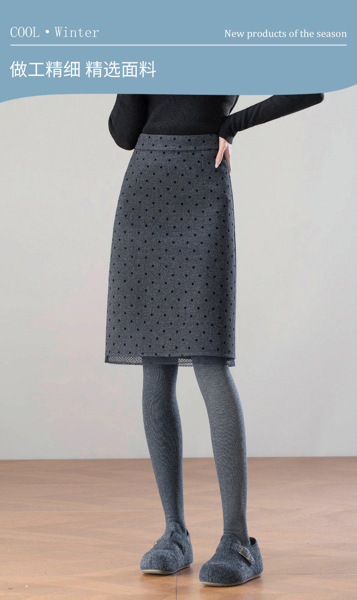 「自」全新升级【铂金会员146/天猫199/差价53】(14025)洛诗琳气质波点毛呢半身裙2025冬季高腰显瘦花边拼接包臀裙