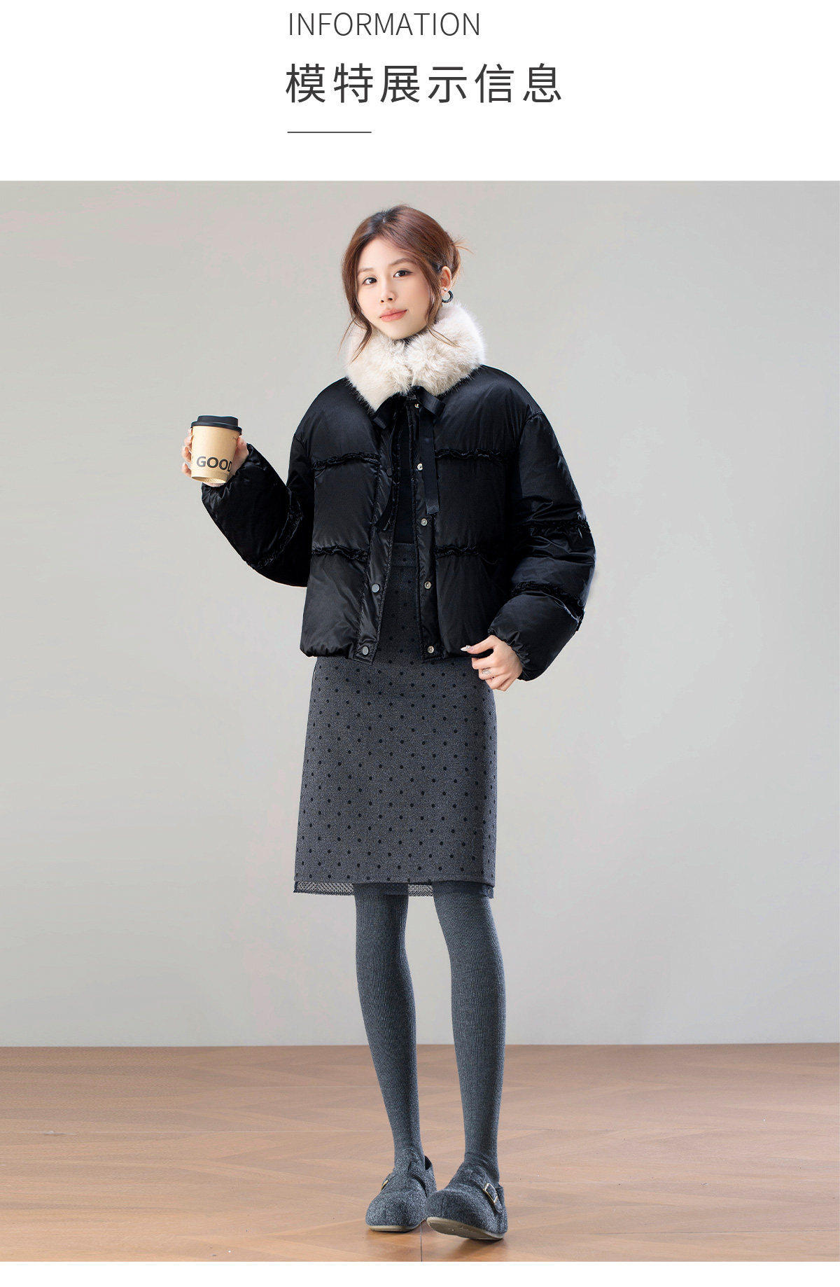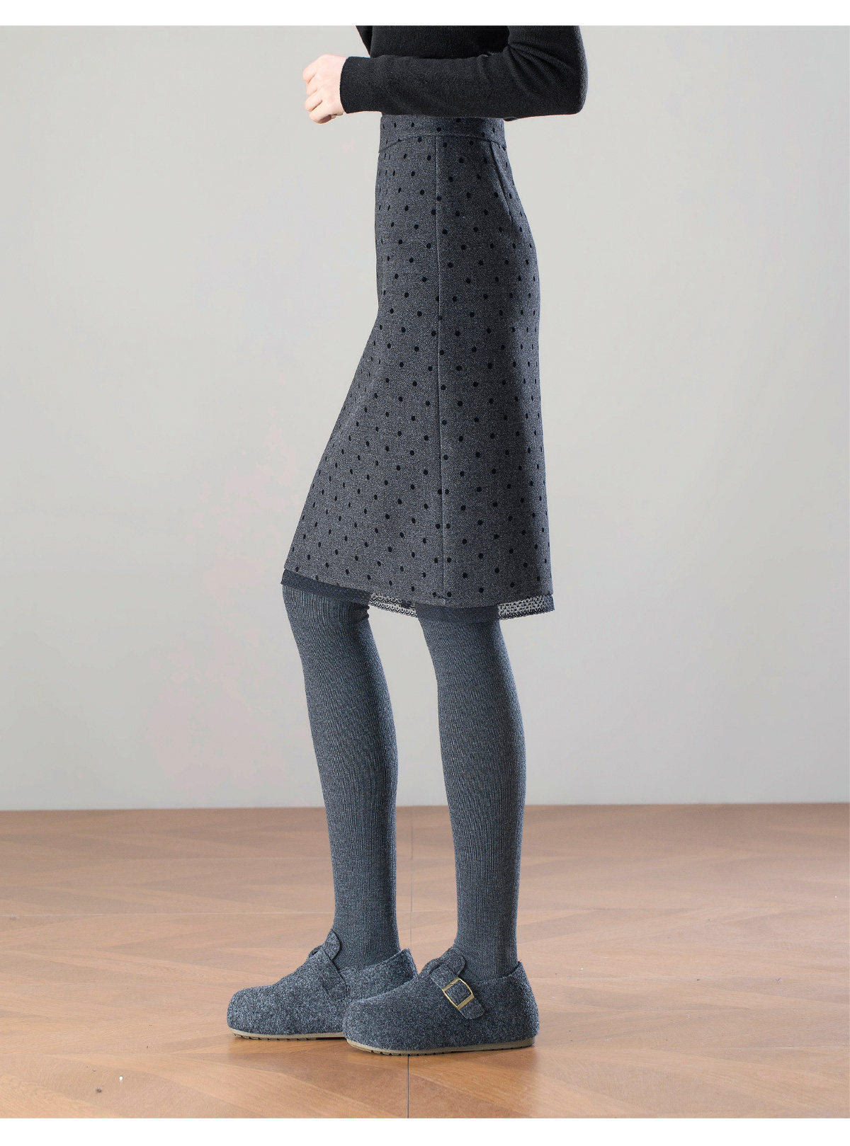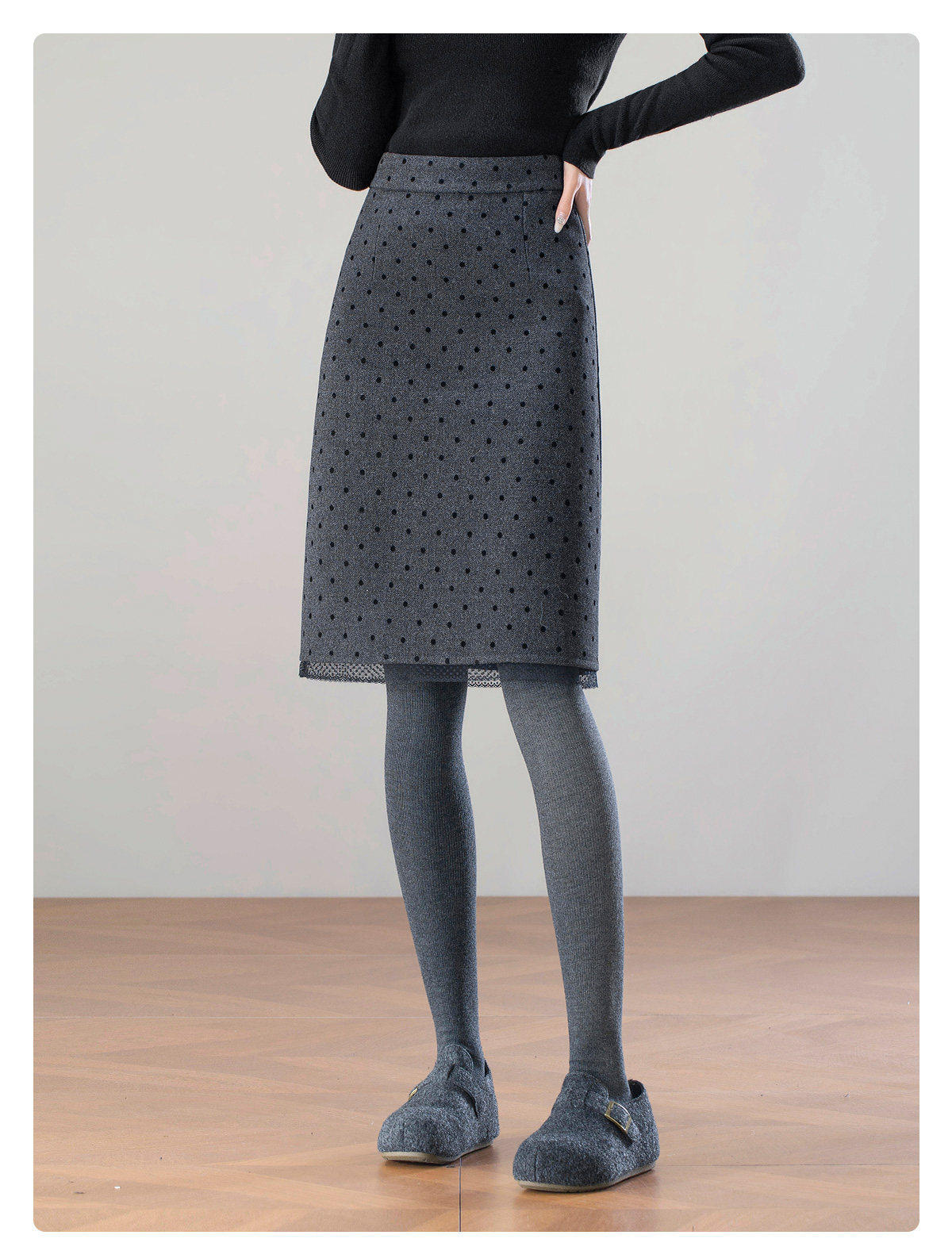 「自」全新升级【铂金会员146/天猫199/差价53】(14025)洛诗琳气质波点毛呢半身裙2025冬季高腰显瘦花边拼接包臀裙