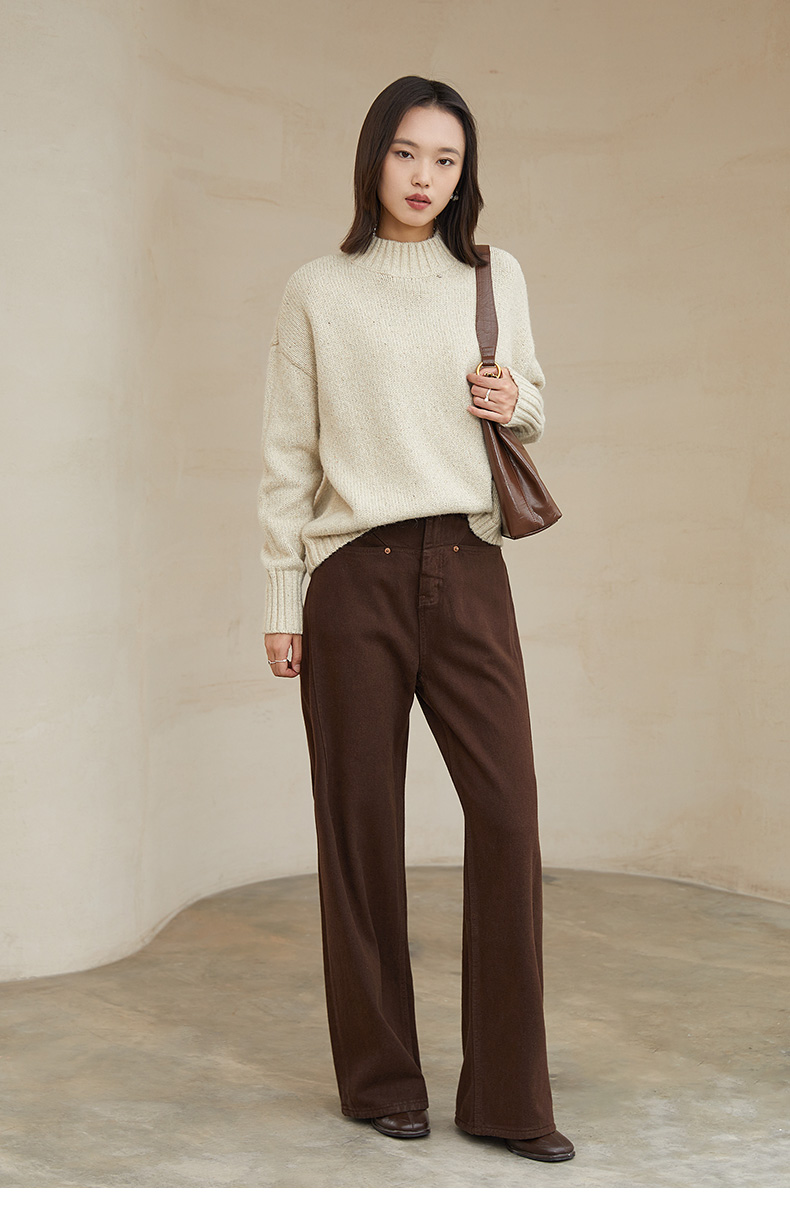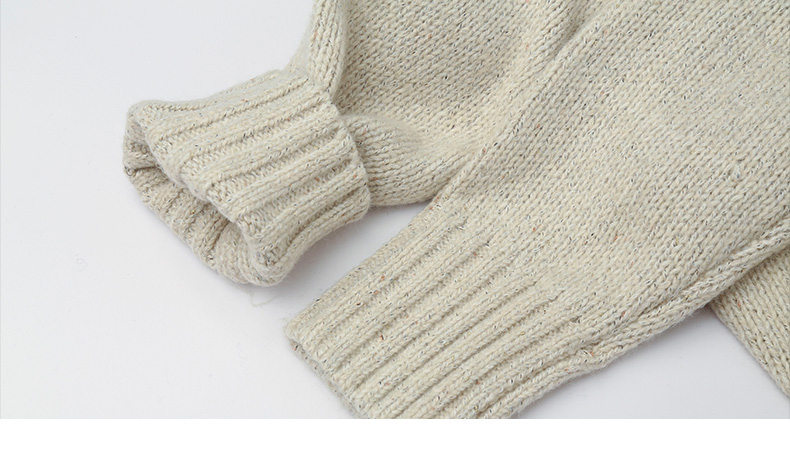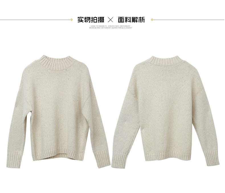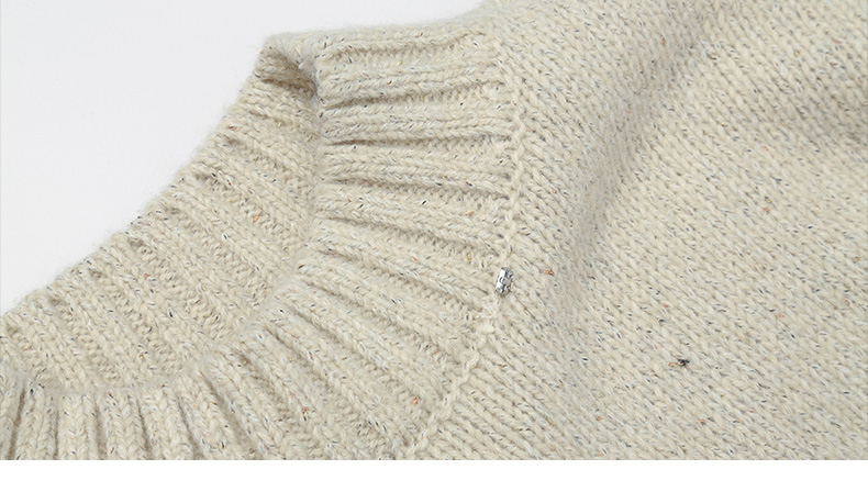 冬新款米白色花纱半高领毛衣 宽松慵懒风针织衫 复古质感百搭打底上衣