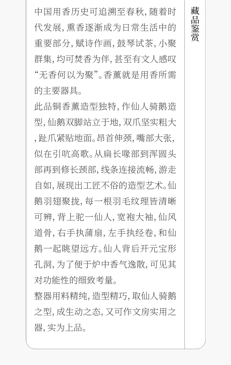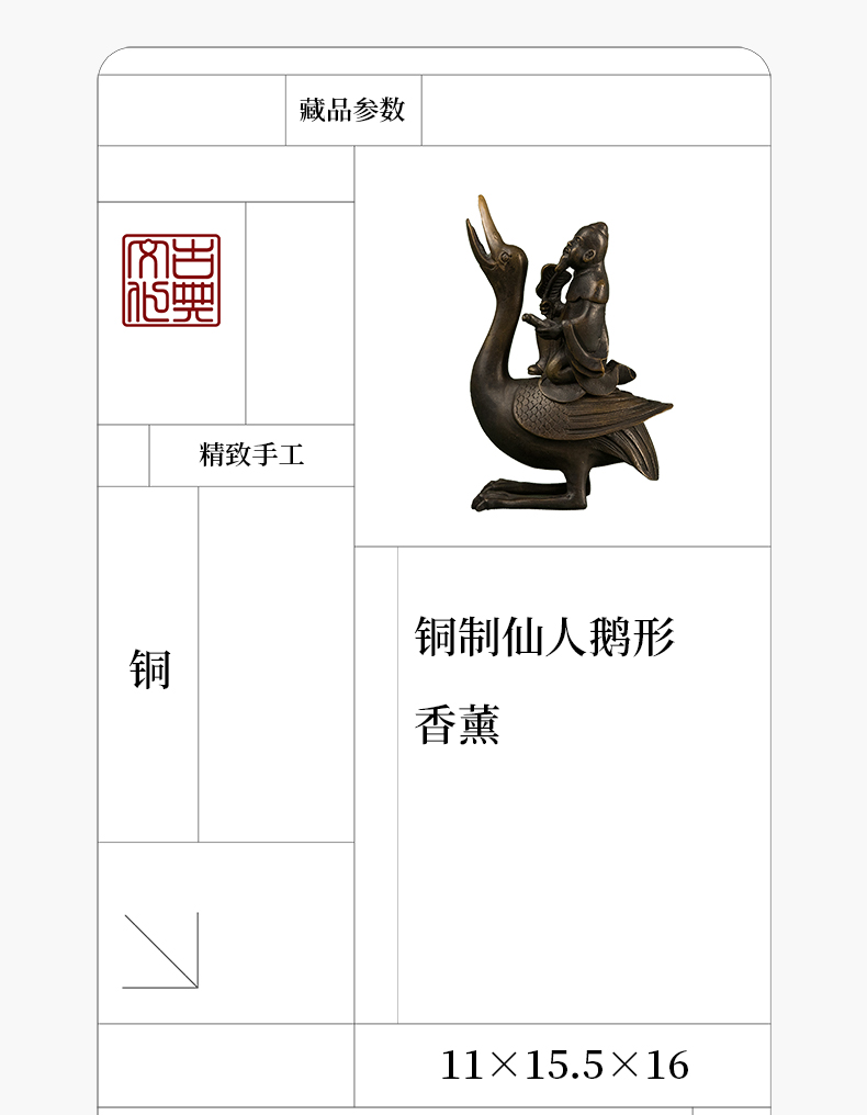 铜制仙人鹅形香薰