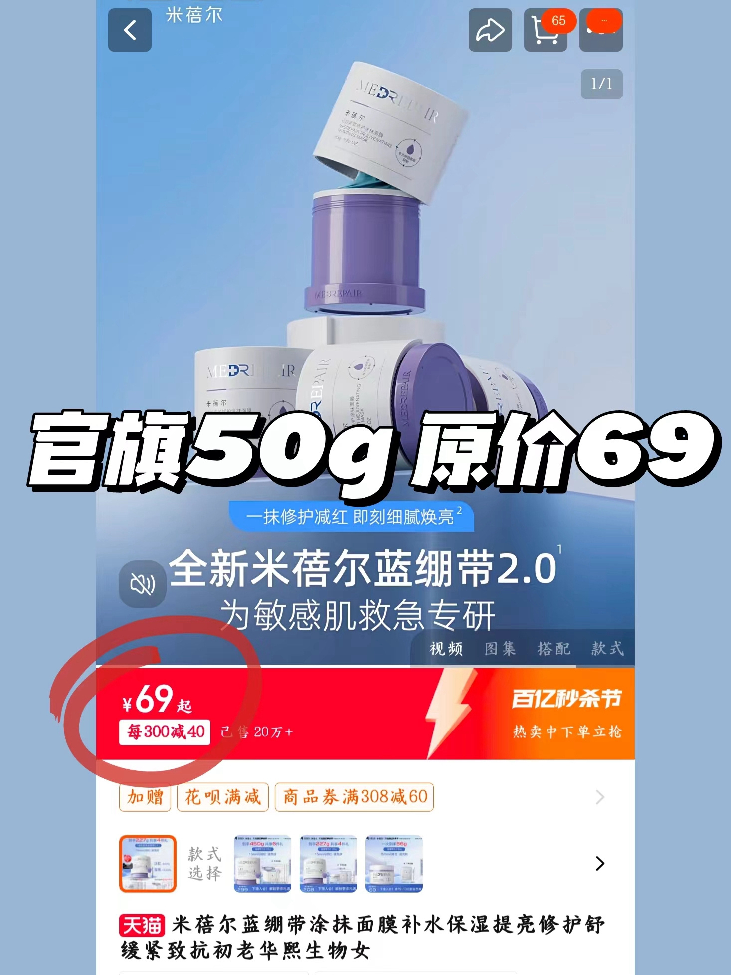 华熙生物旗下 米蓓尔蓝绷带面膜2.0 一罐搞定急救褪红修复抗氧 带品牌防伪 50g