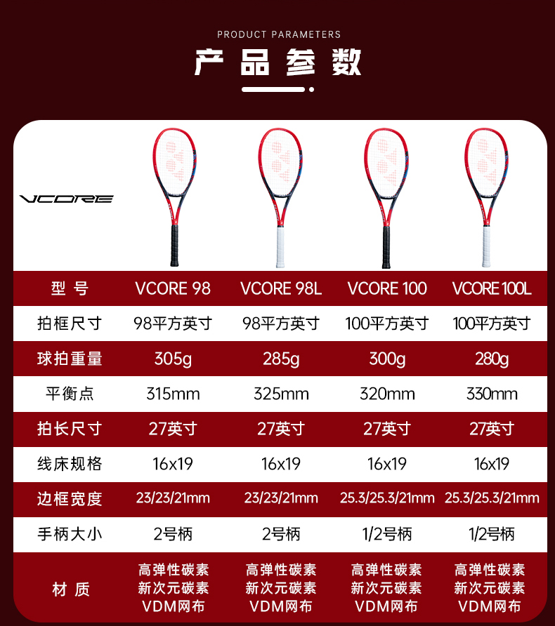 第七代 2023新款 Yonex VCORE 95/98/100 网球拍