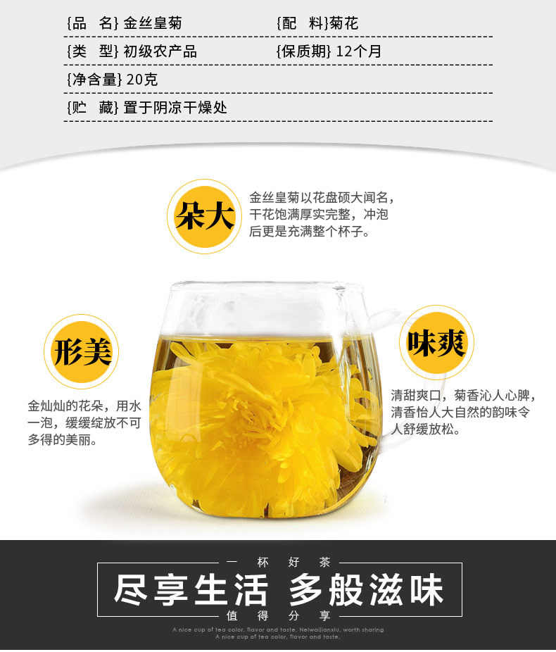 【四季适宜,时尚茶饮~】菊花茶金丝皇菊 黄菊一朵一杯 大朵菊花茶叶 搭枸杞胎菊金银花贡菊-QA