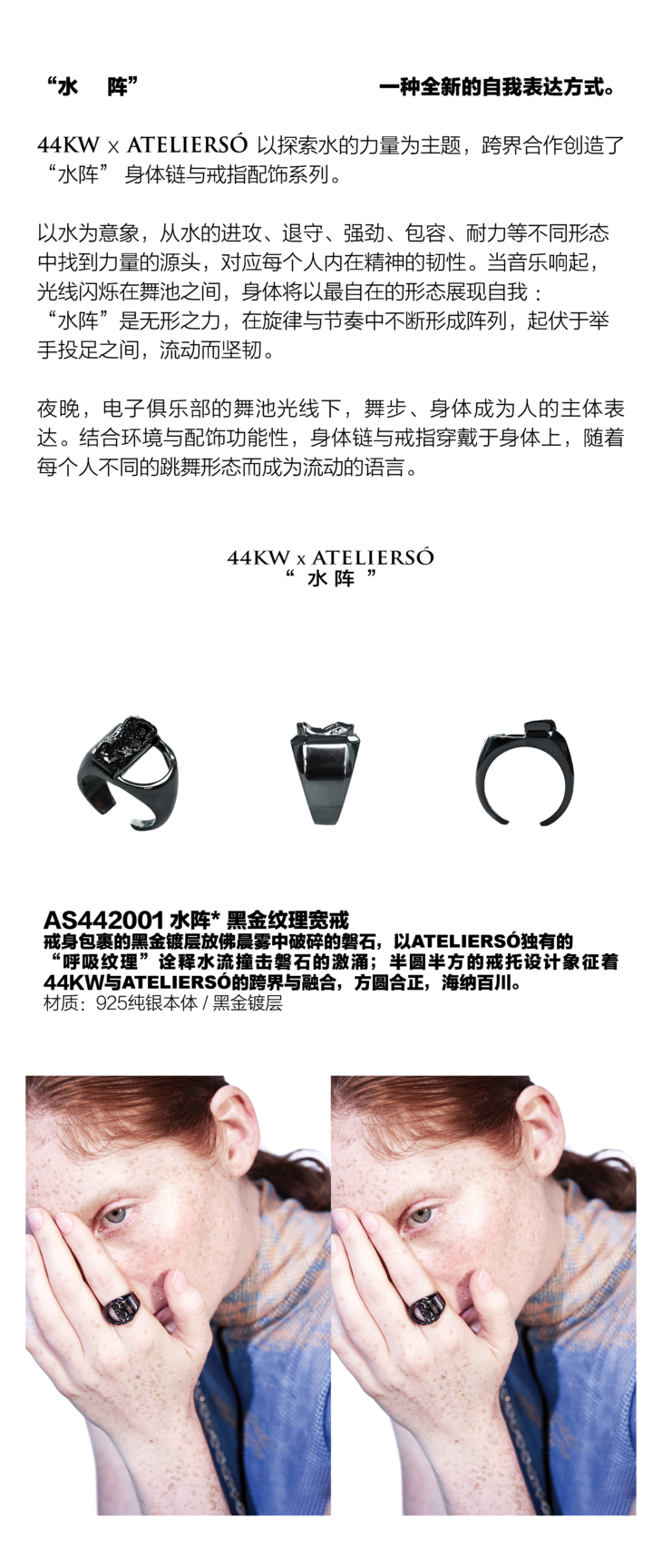 44KW × ATELIERSÓ “水 阵” - 黑金纹理宽戒