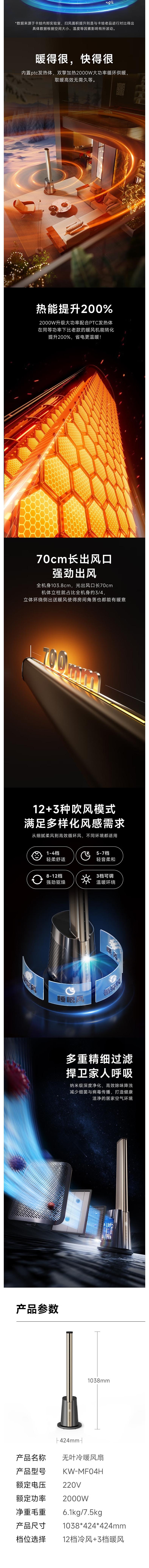 SmartFrog卡蛙 2000W冷暖无叶风扇 KW-MF04H