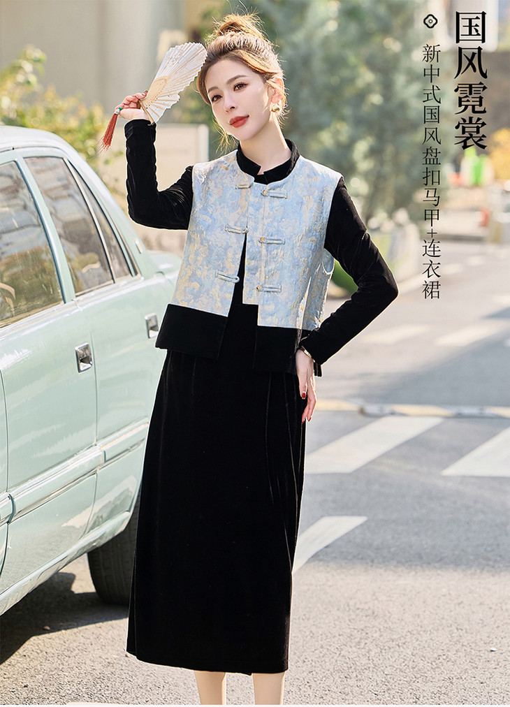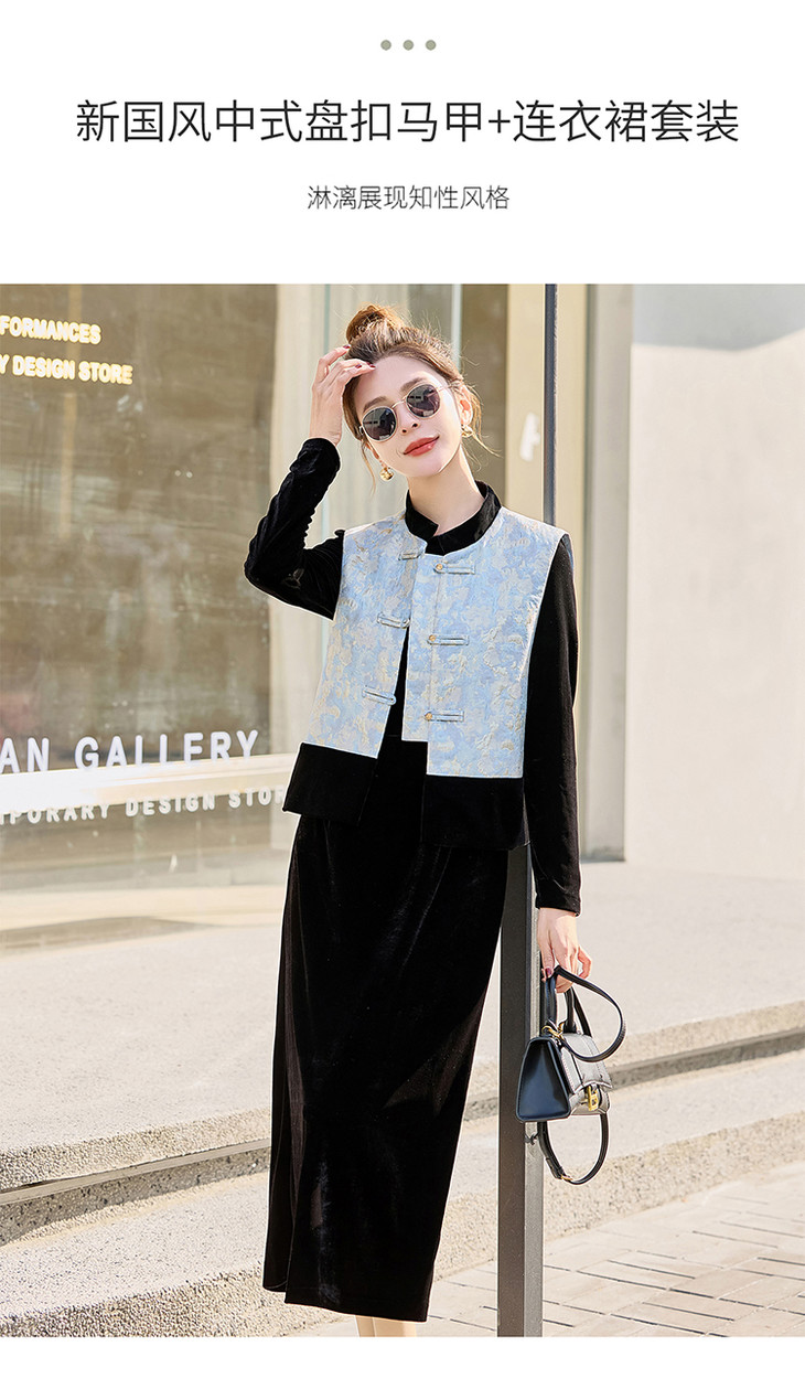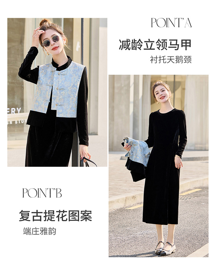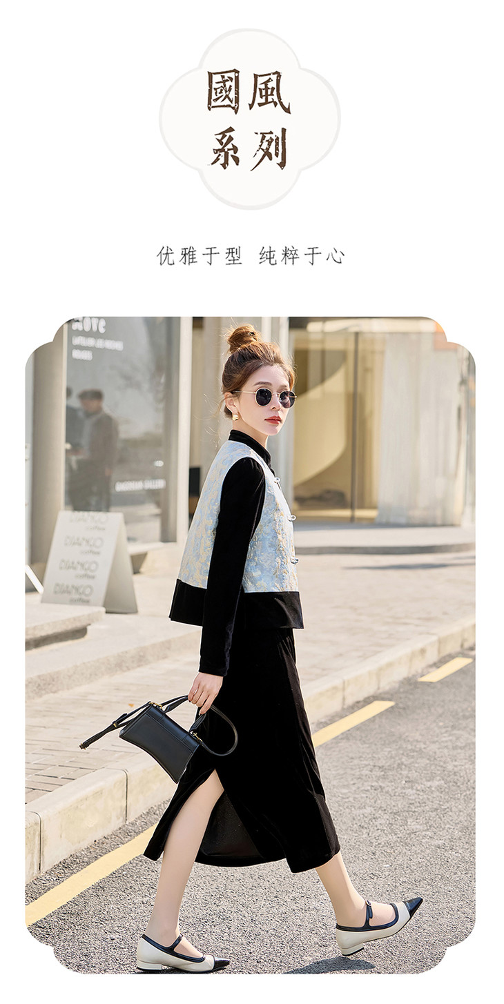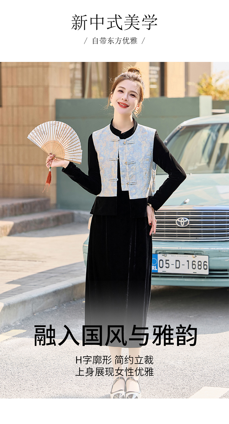 新中式连衣裙气质马甲,黑色内搭打底丝绒套装裙HR-EBDU952
