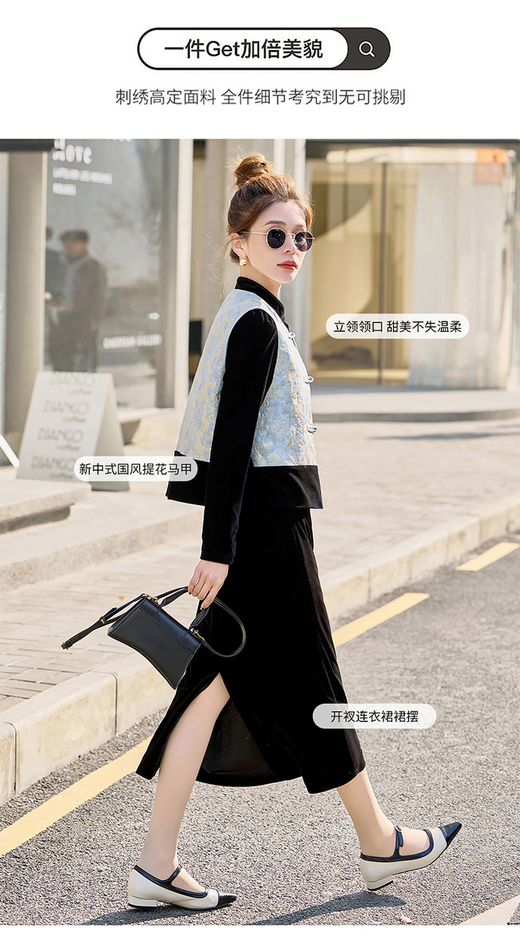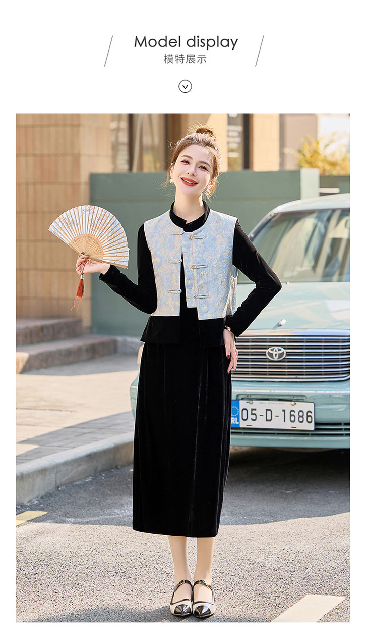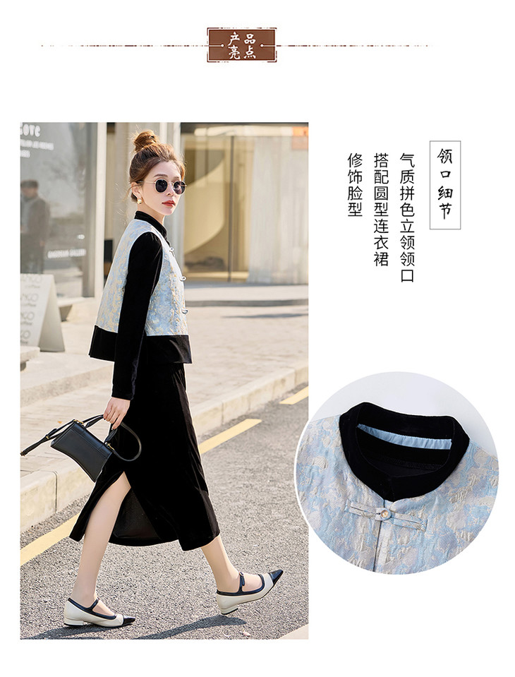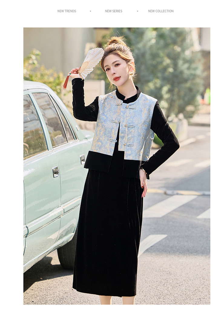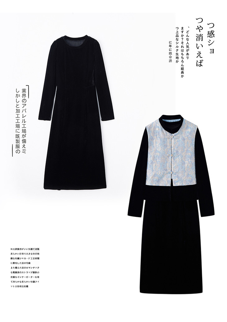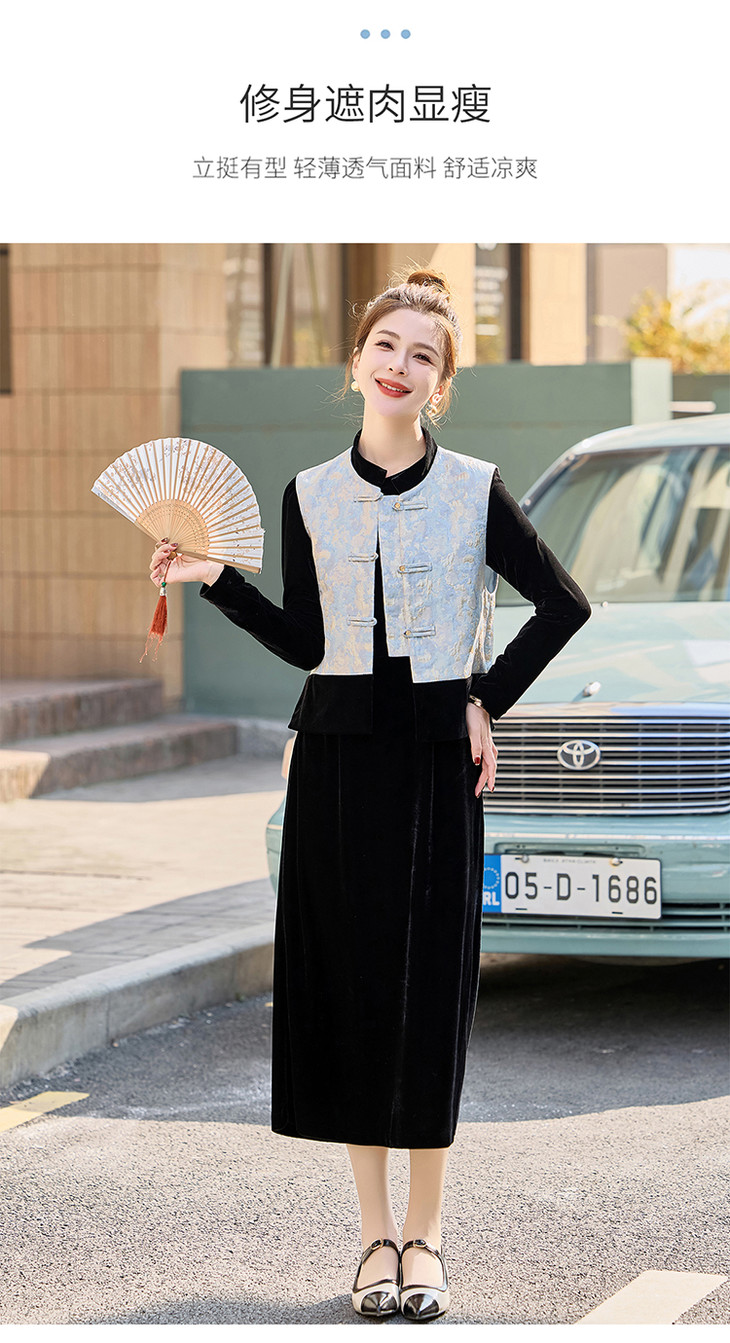 新中式连衣裙气质马甲,黑色内搭打底丝绒套装裙HR-EBDU952