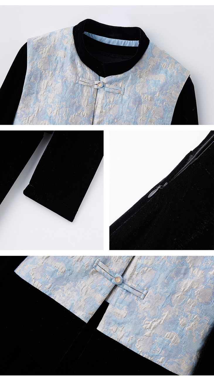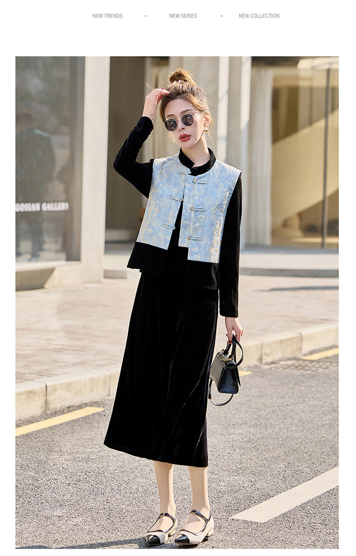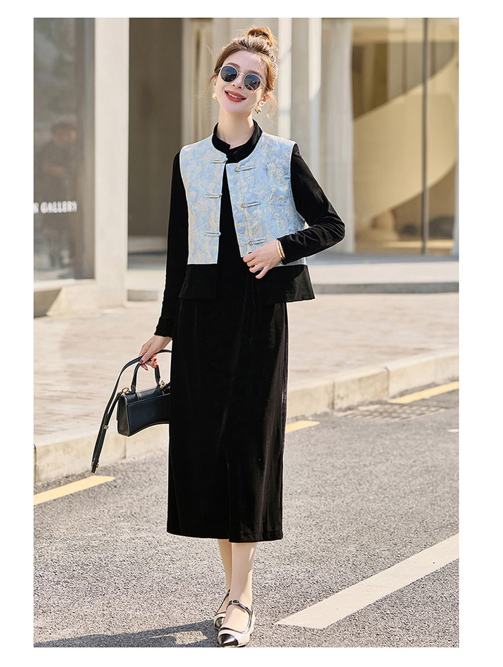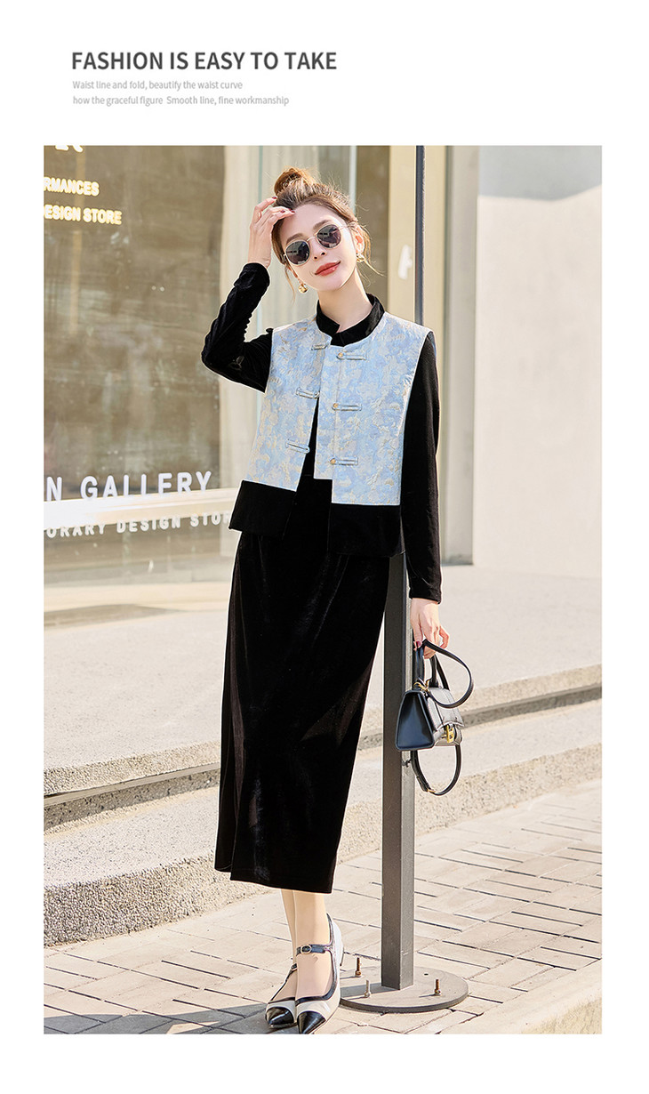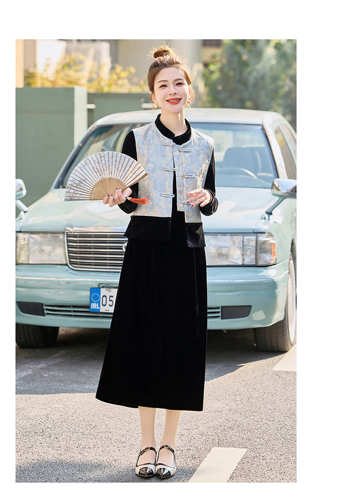 新中式连衣裙气质马甲,黑色内搭打底丝绒套装裙HR-EBDU952