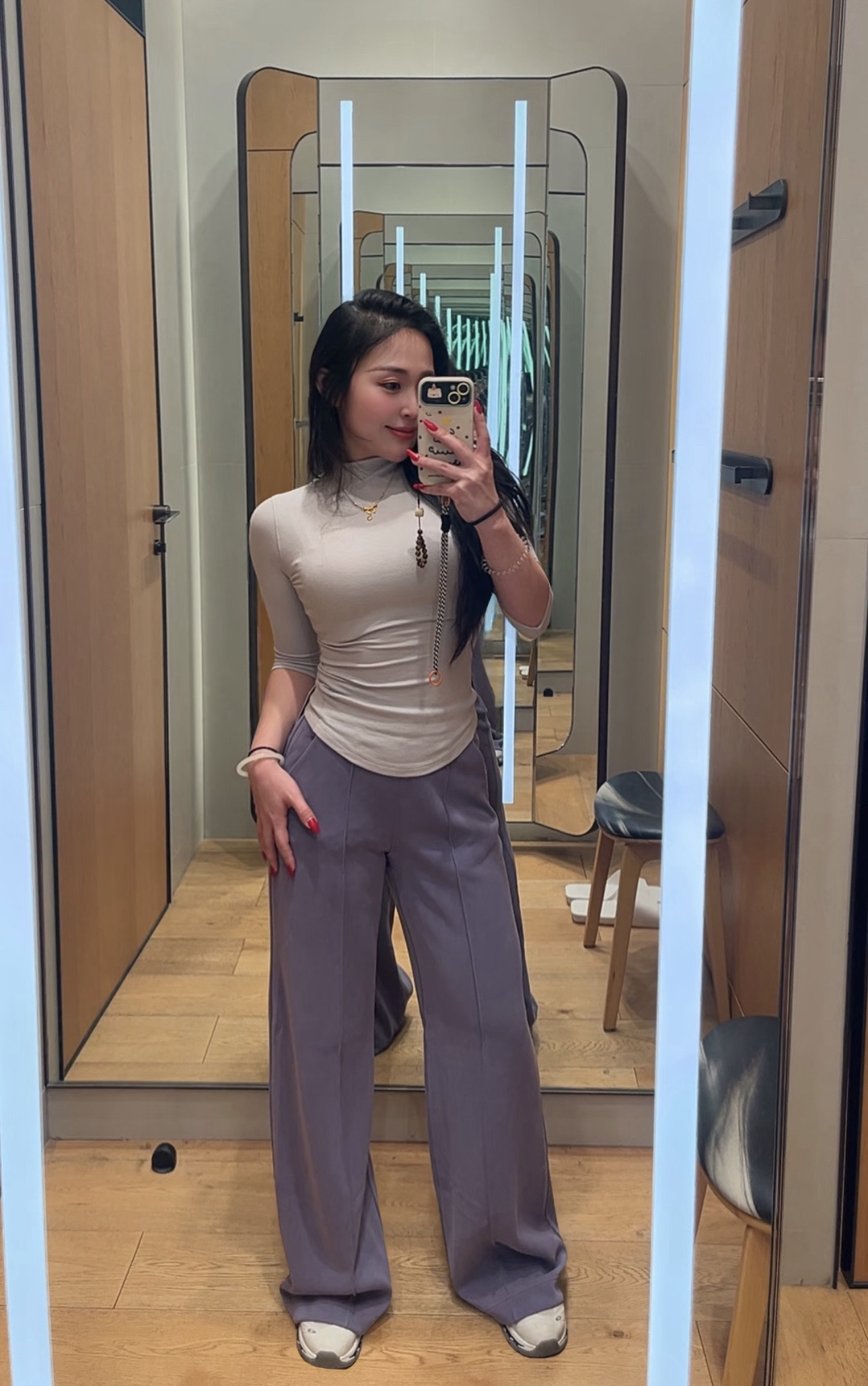 阔腿版型裁剪 超强的包容力完全不挑身形 能很好地修饰大腿和臀部的线条 遮肉显瘦的效果非常绝,裤身中间的褶皱设计 不仅增加了裤子的层次感和精致度,视觉上更显腿直!