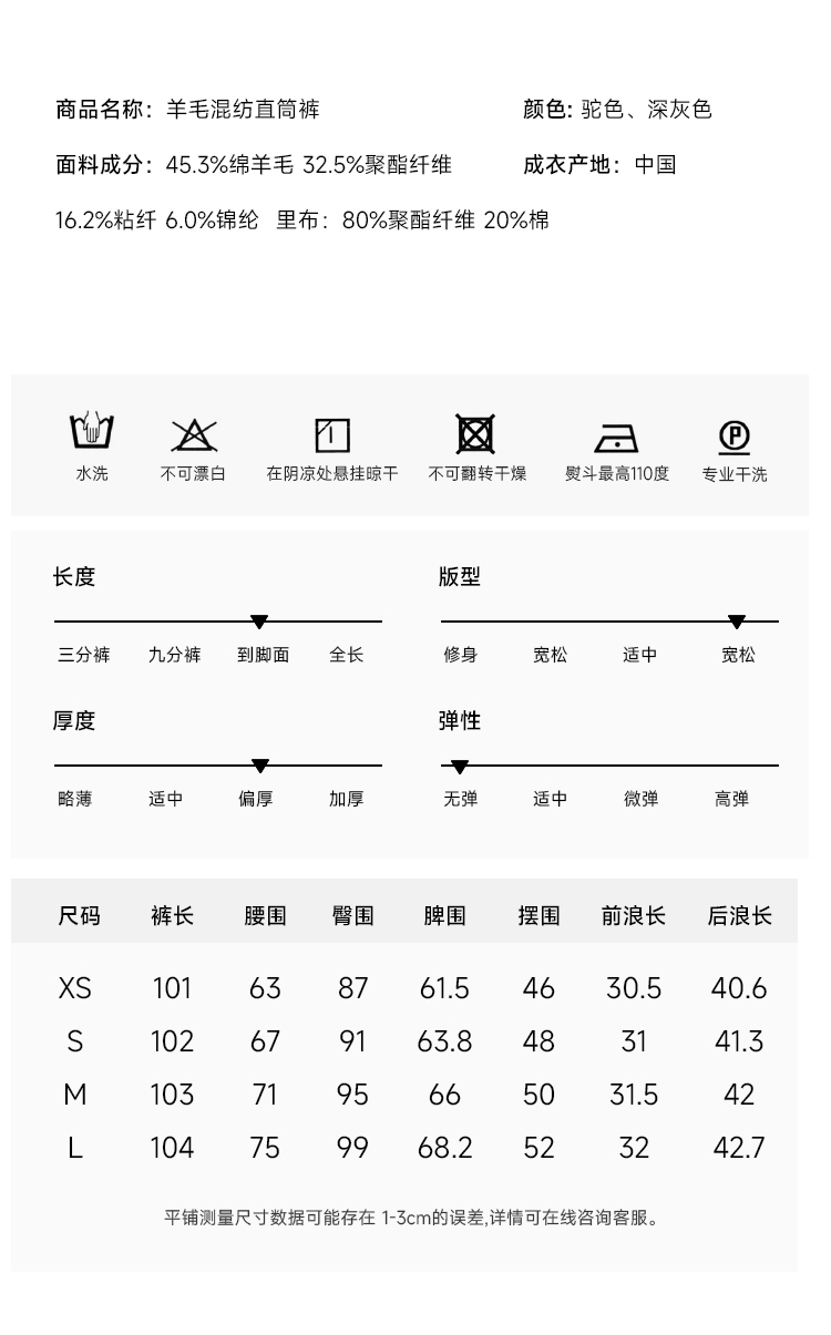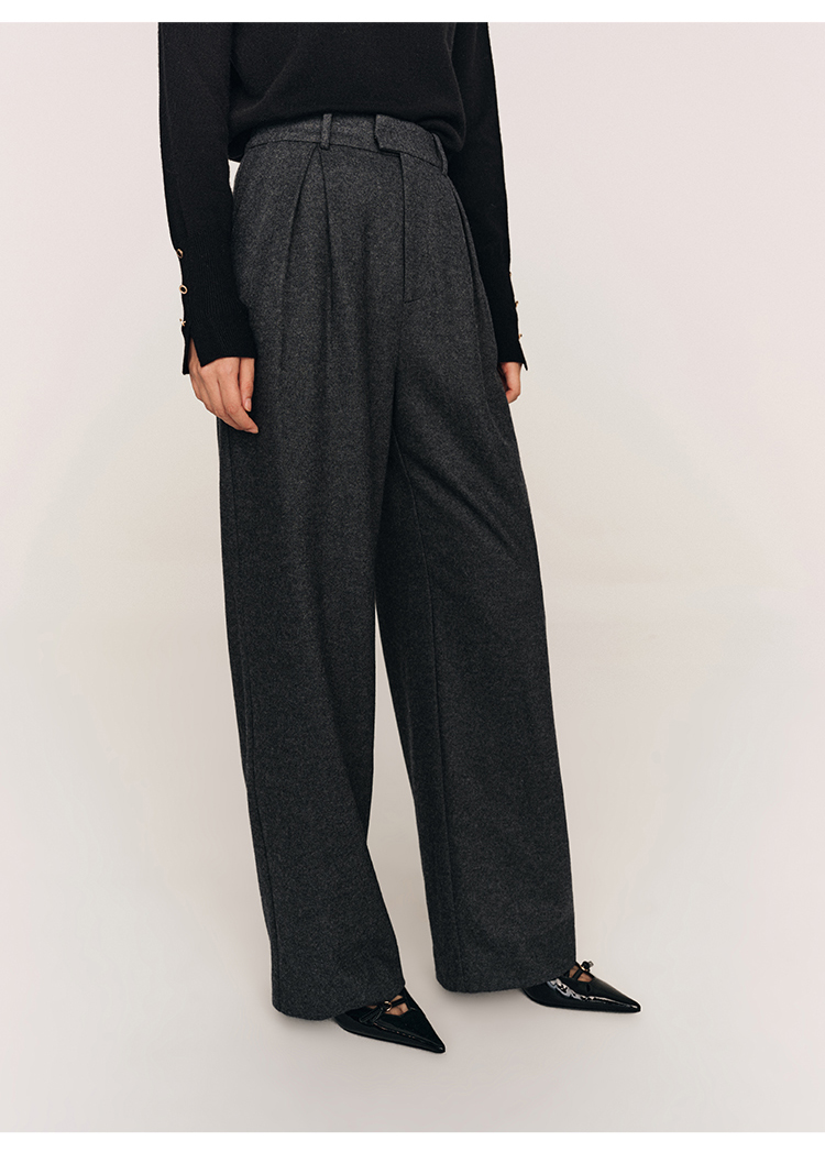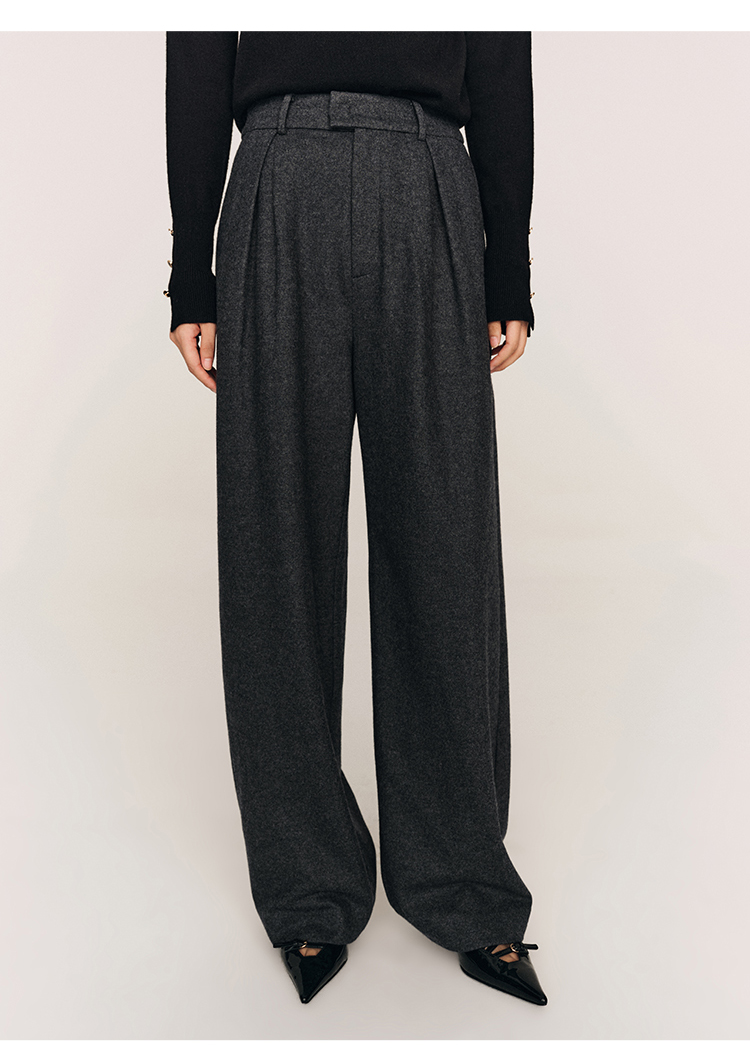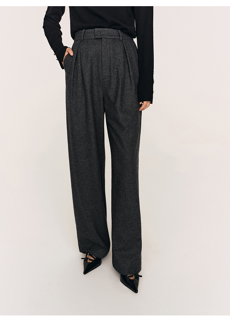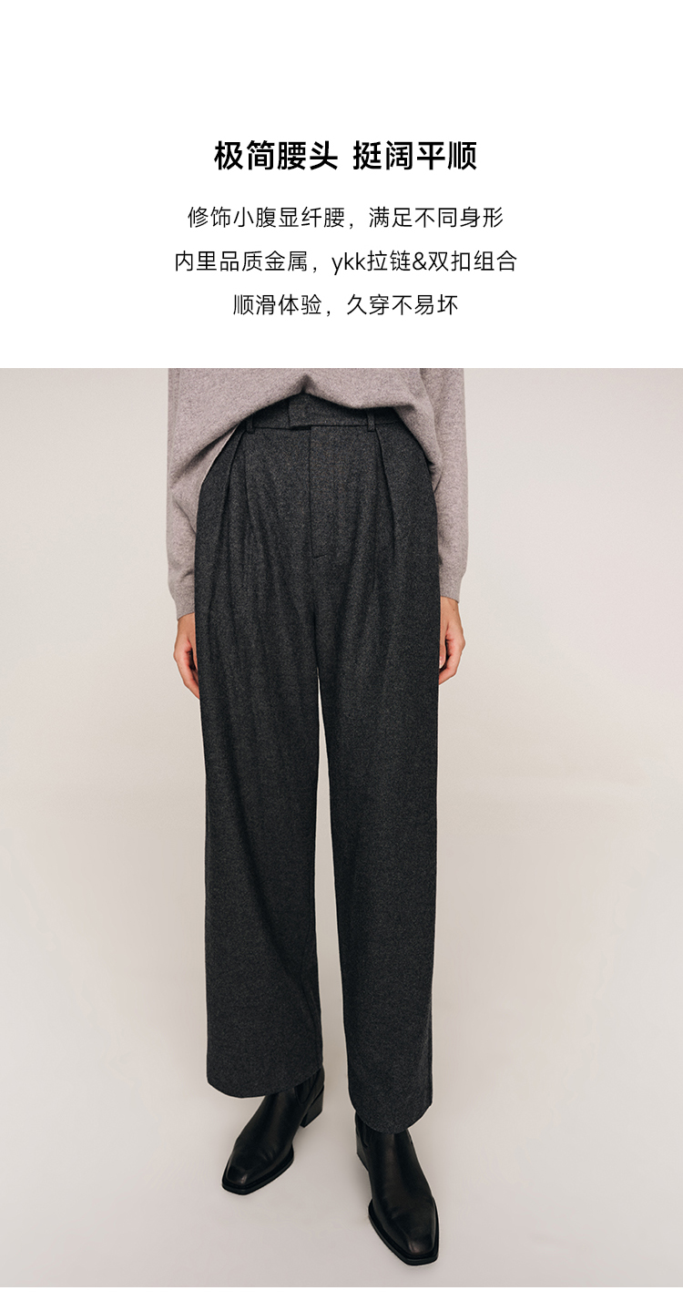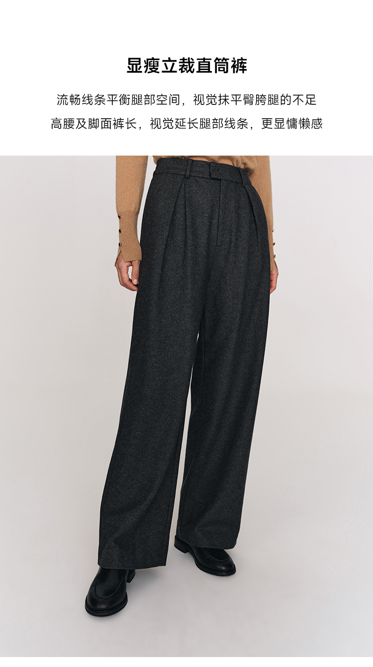 绒感柔软 精纺羊毛混纺直筒裤(两色)FB470323N