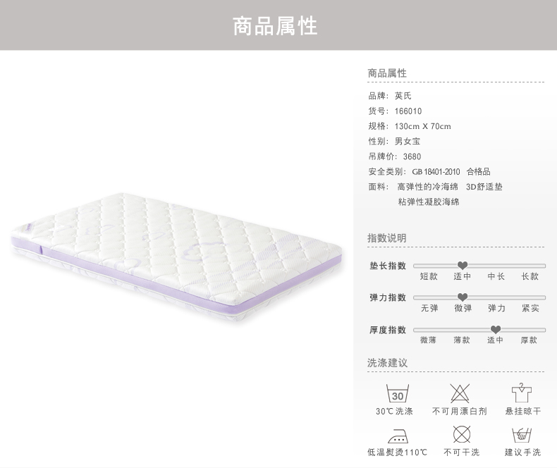 英氏婴儿床垫冷海绵3D垫宝宝双面可睡儿童床垫70*130 166010