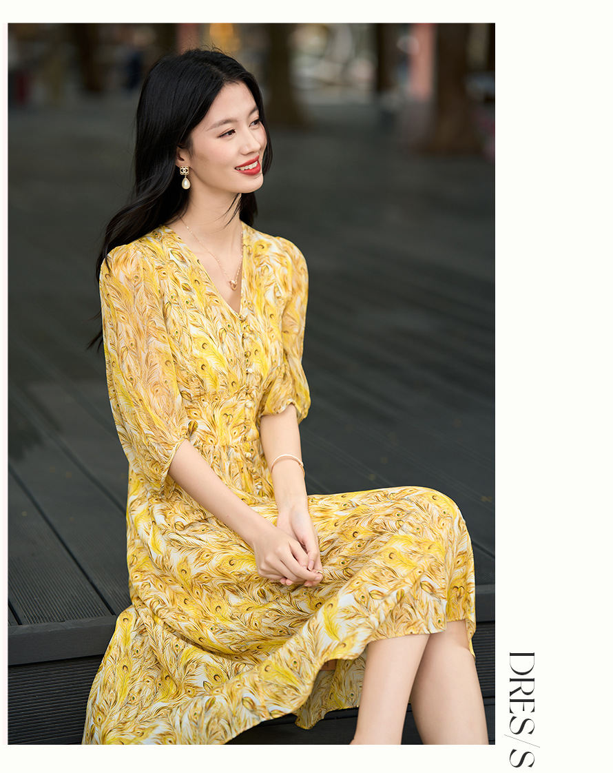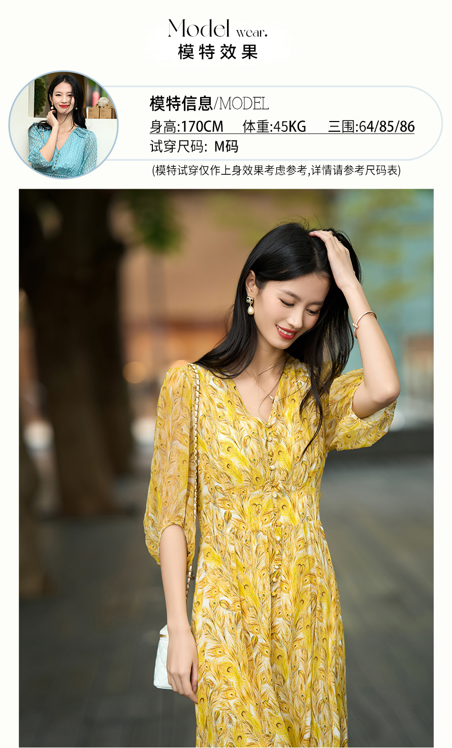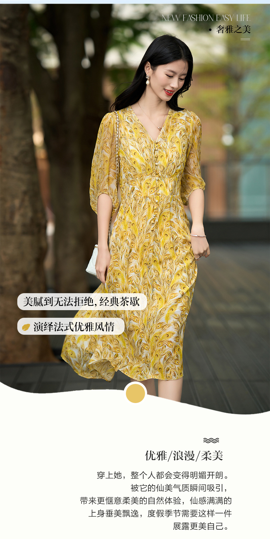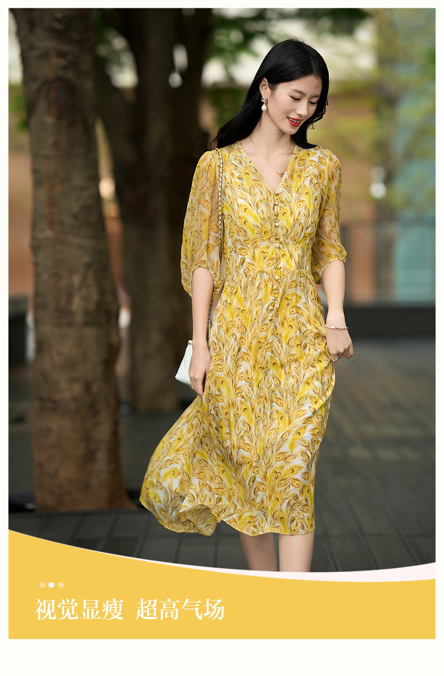 丁摩 真丝连衣裙中长裙春夏新品女装气质显瘦显高桑蚕丝裙5ZF-90482