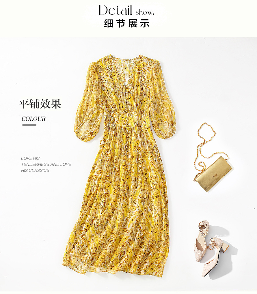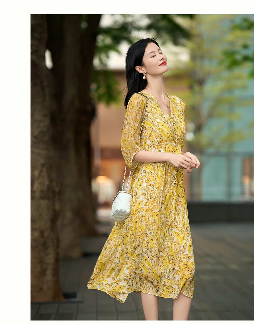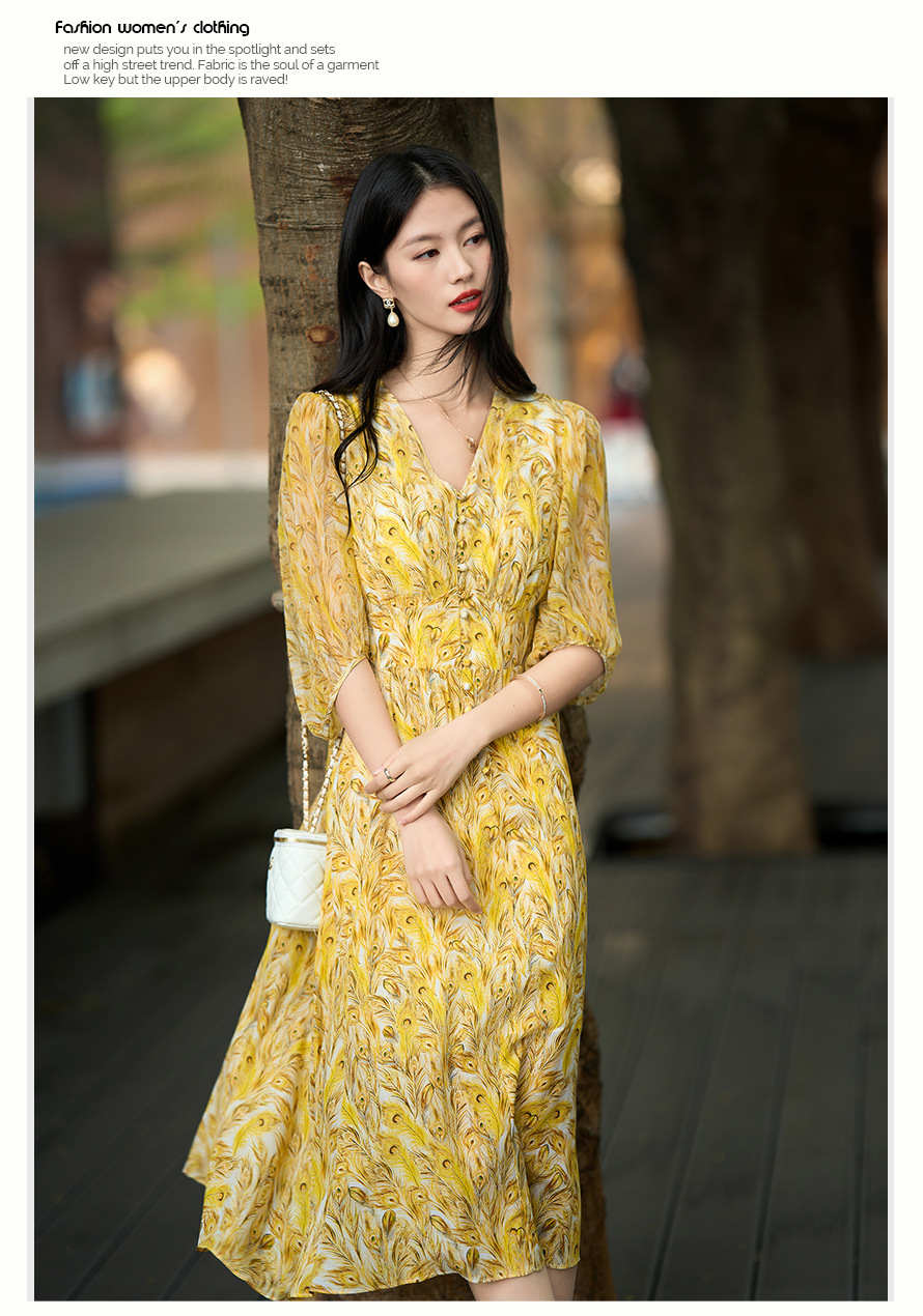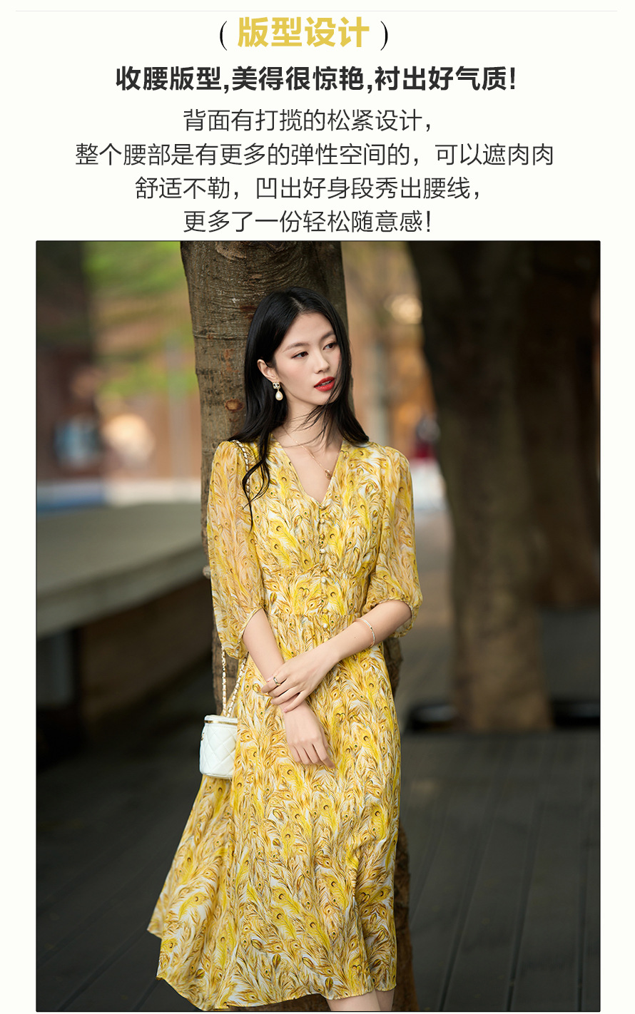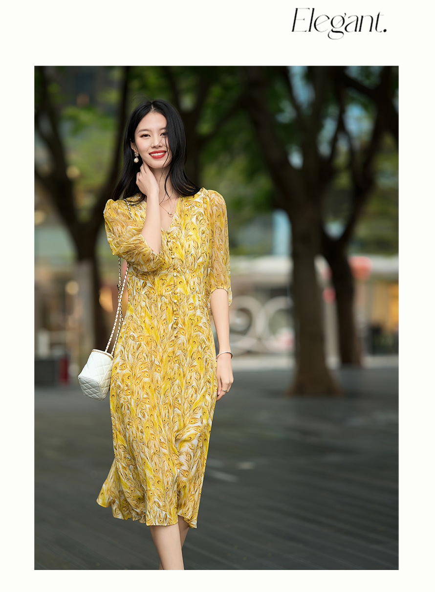 丁摩 真丝连衣裙中长裙春夏新品女装气质显瘦显高桑蚕丝裙5ZF-90482