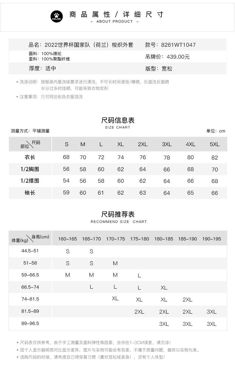 卡尔美世界杯国家队主题(荷兰)训练梭织外套