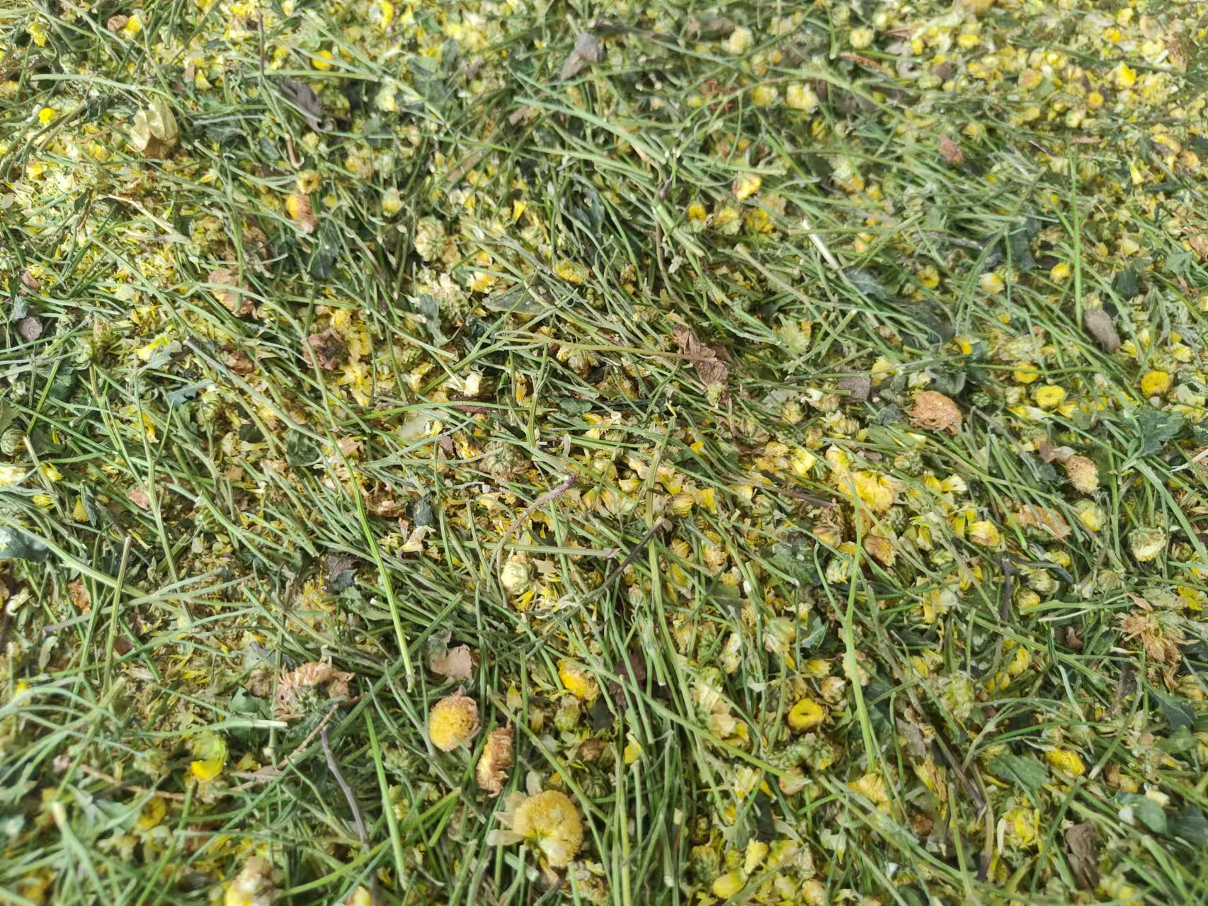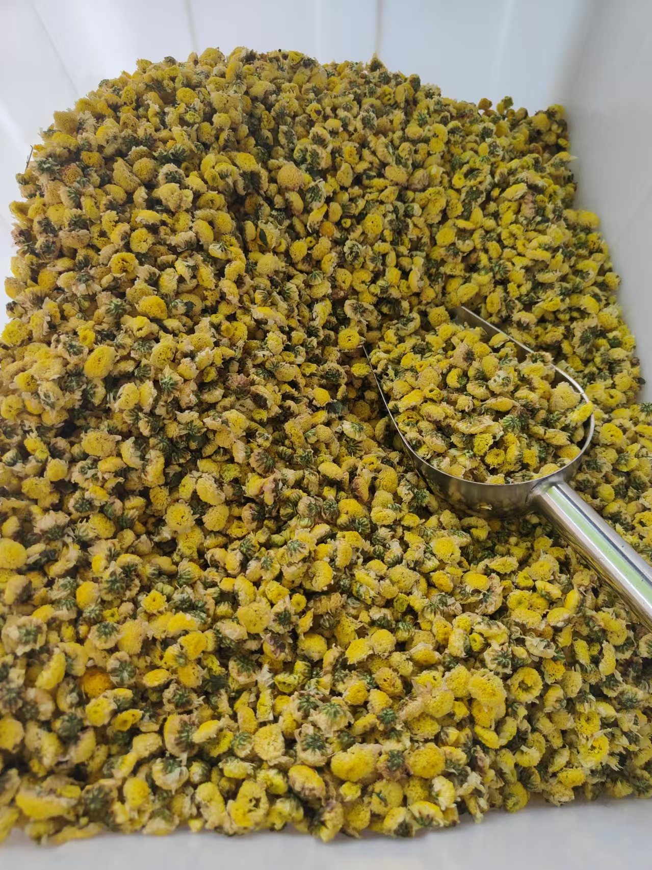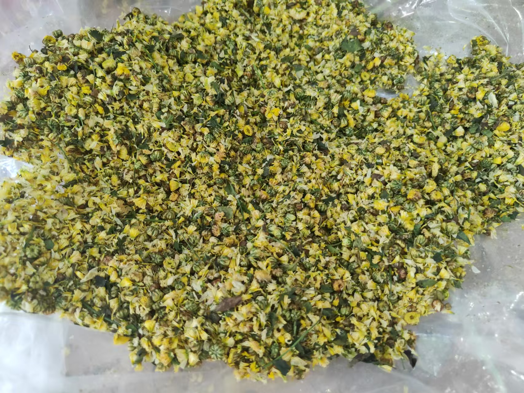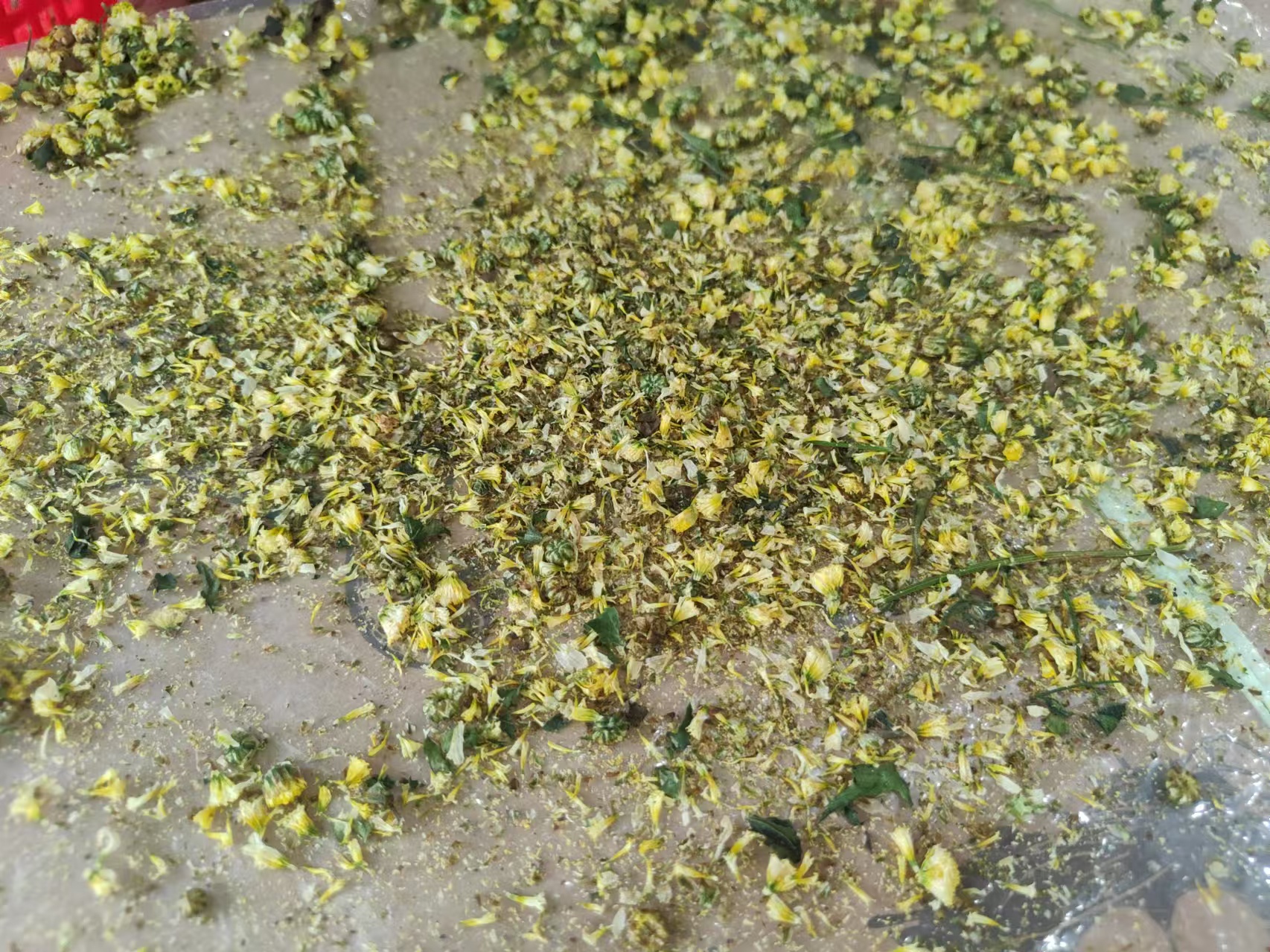 野生菊花茶特别费人工挑选,一个人一天只能挑十斤。挑选完后,还要过二道筛后,再来装小袋。以下这些梗是一根一根挑出来的,筛都筛不出来。