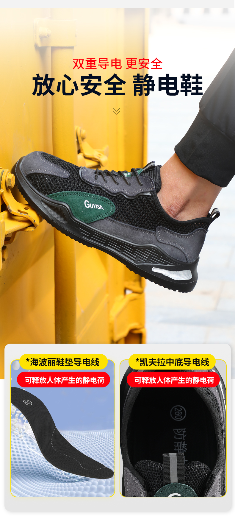 夏季劳保鞋防静电男新品透气安全工作鞋钢包头防砸防刺穿实心底耐磨舒适