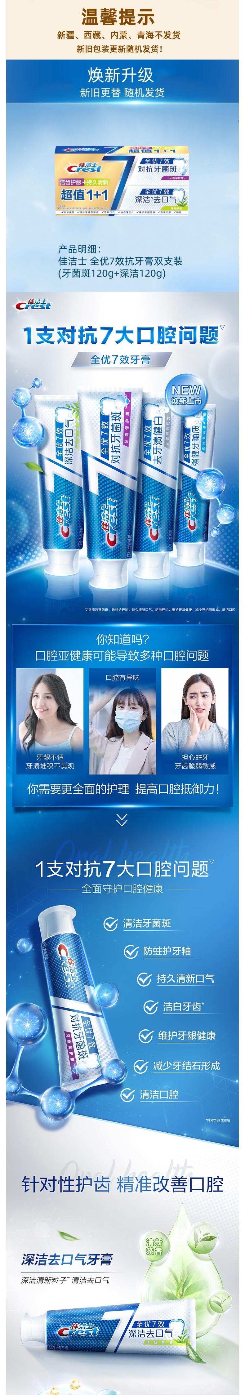 佳洁士 全优7效抗牙膏双支装(牙菌斑120g+深洁120g) jsy2zsd