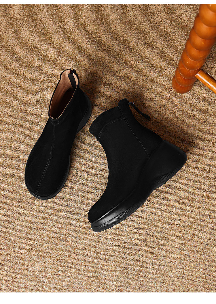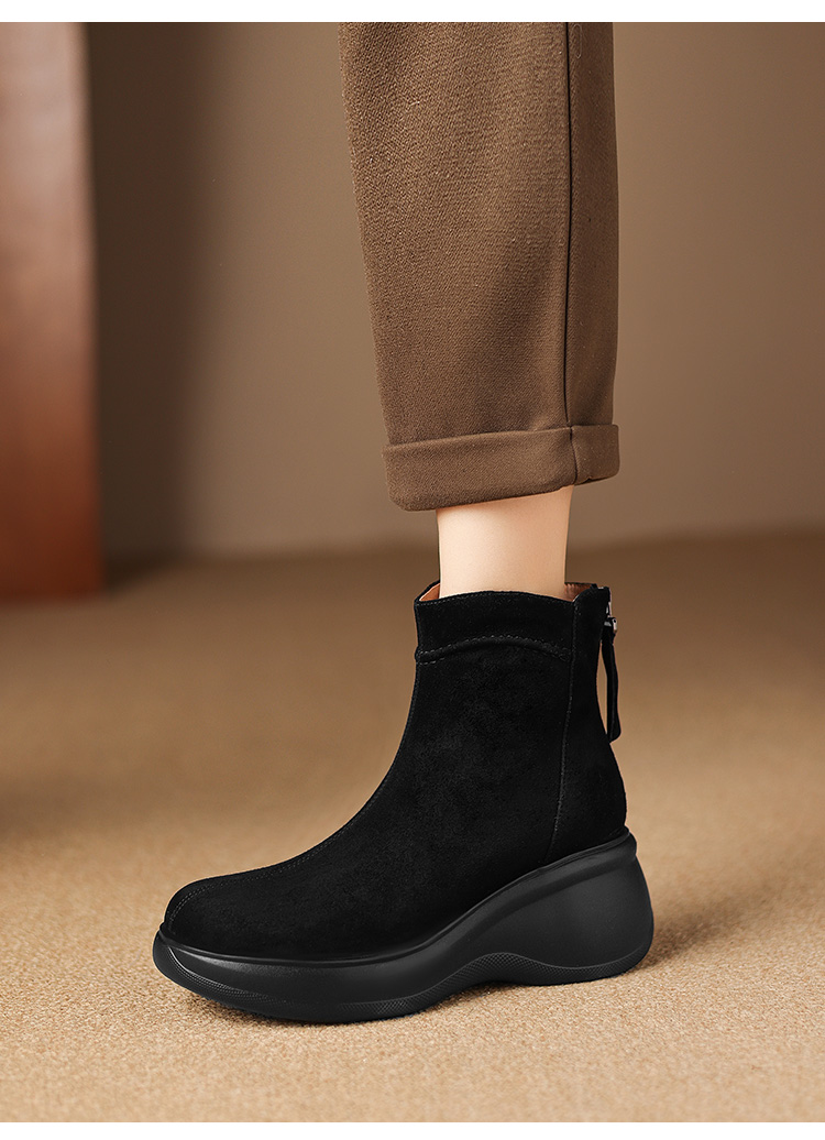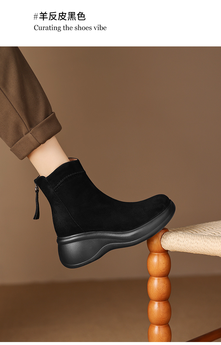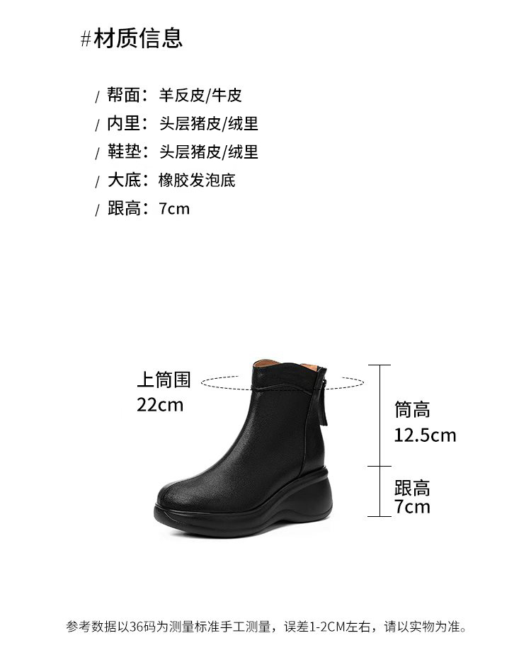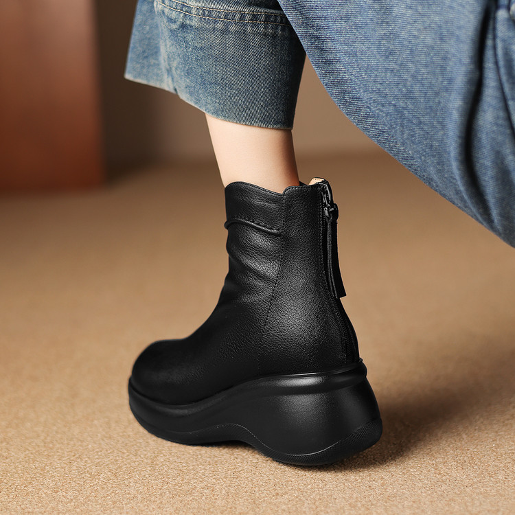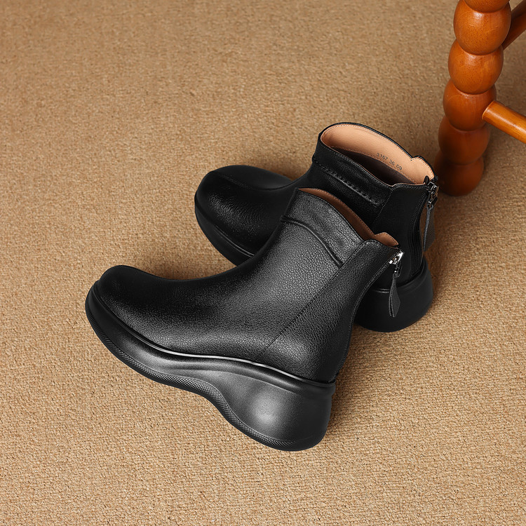 【预售5天】复古风真皮圆头厚底松糕短靴女新款百搭增高休闲马丁靴ASN&3167